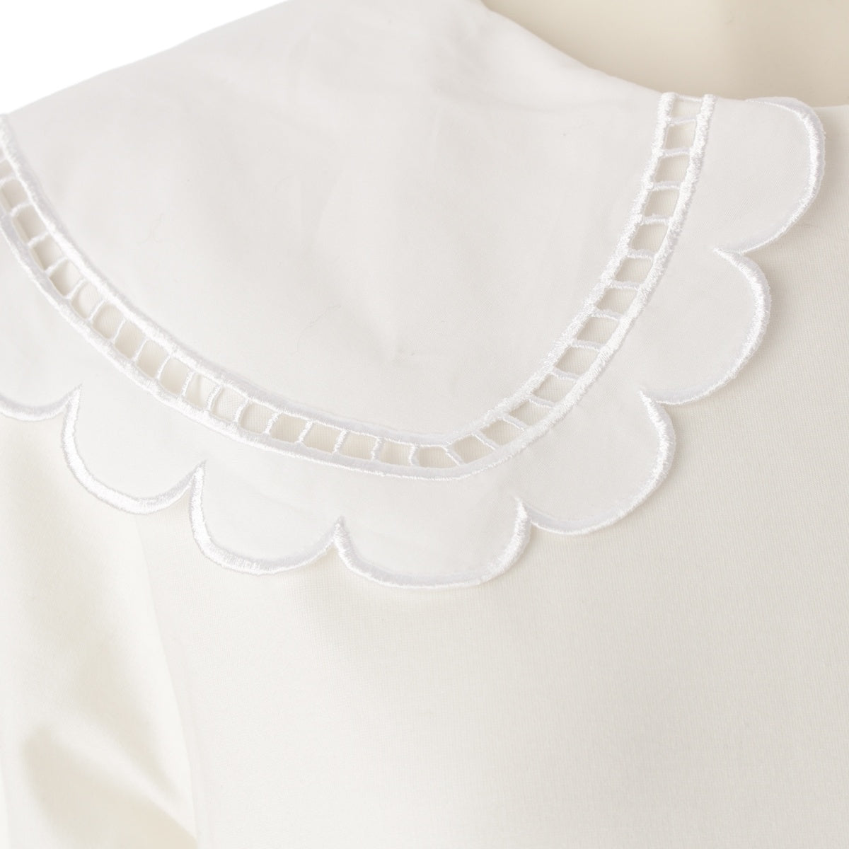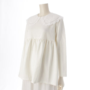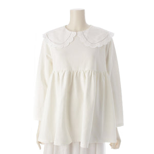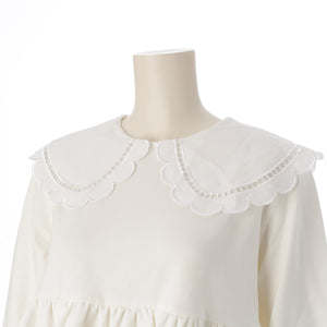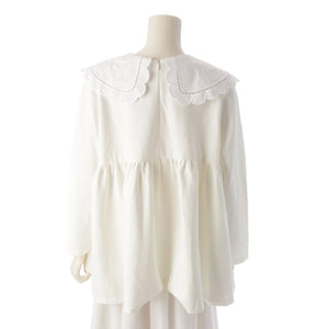 yori Rayon Nylon Cotton Scallop collar Ruffles Long sleeves blouse tops YR11-2416K white F