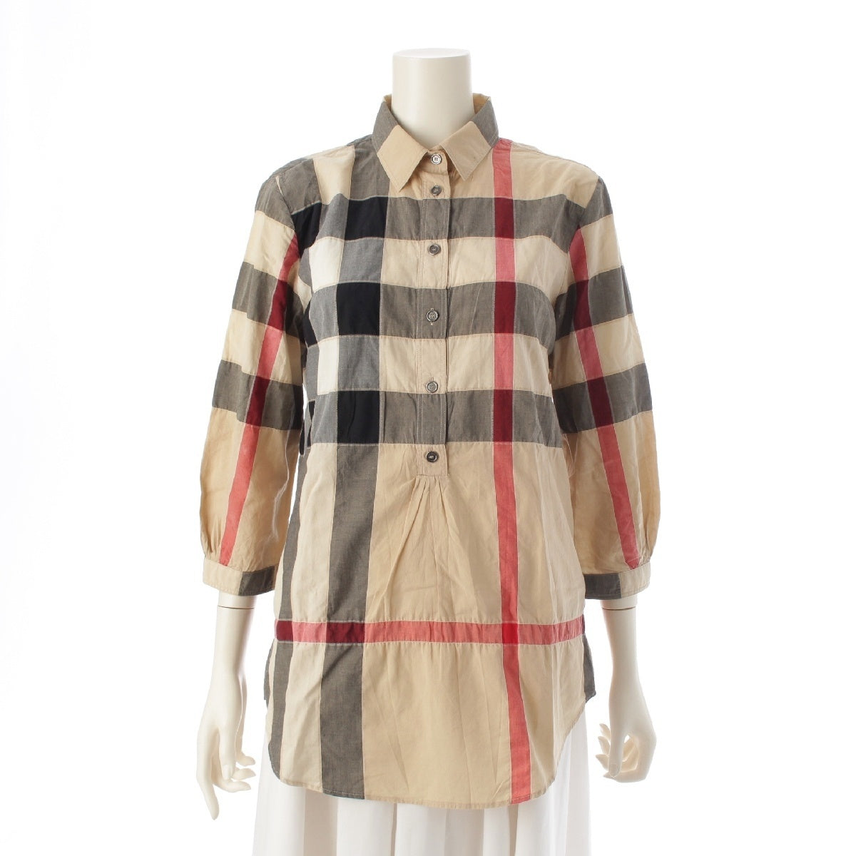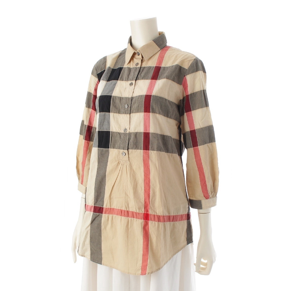 BURBERRY BRIT cotton Nova Check Pattern blouse Shirt tops Beige multicolor XS