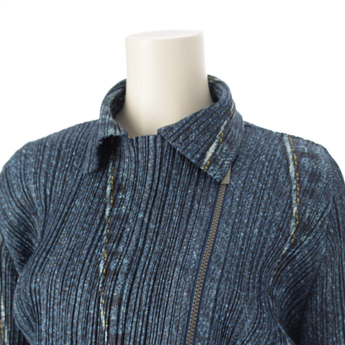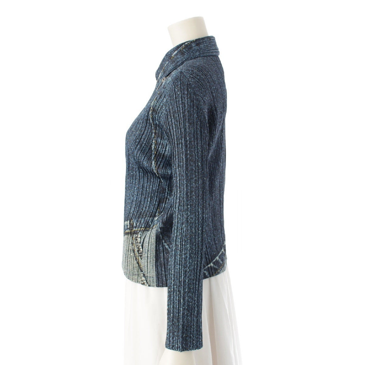 PLEATS PLEASE ISSEY Denim transfer print riders Jacket PP43-JD751 blue 3
