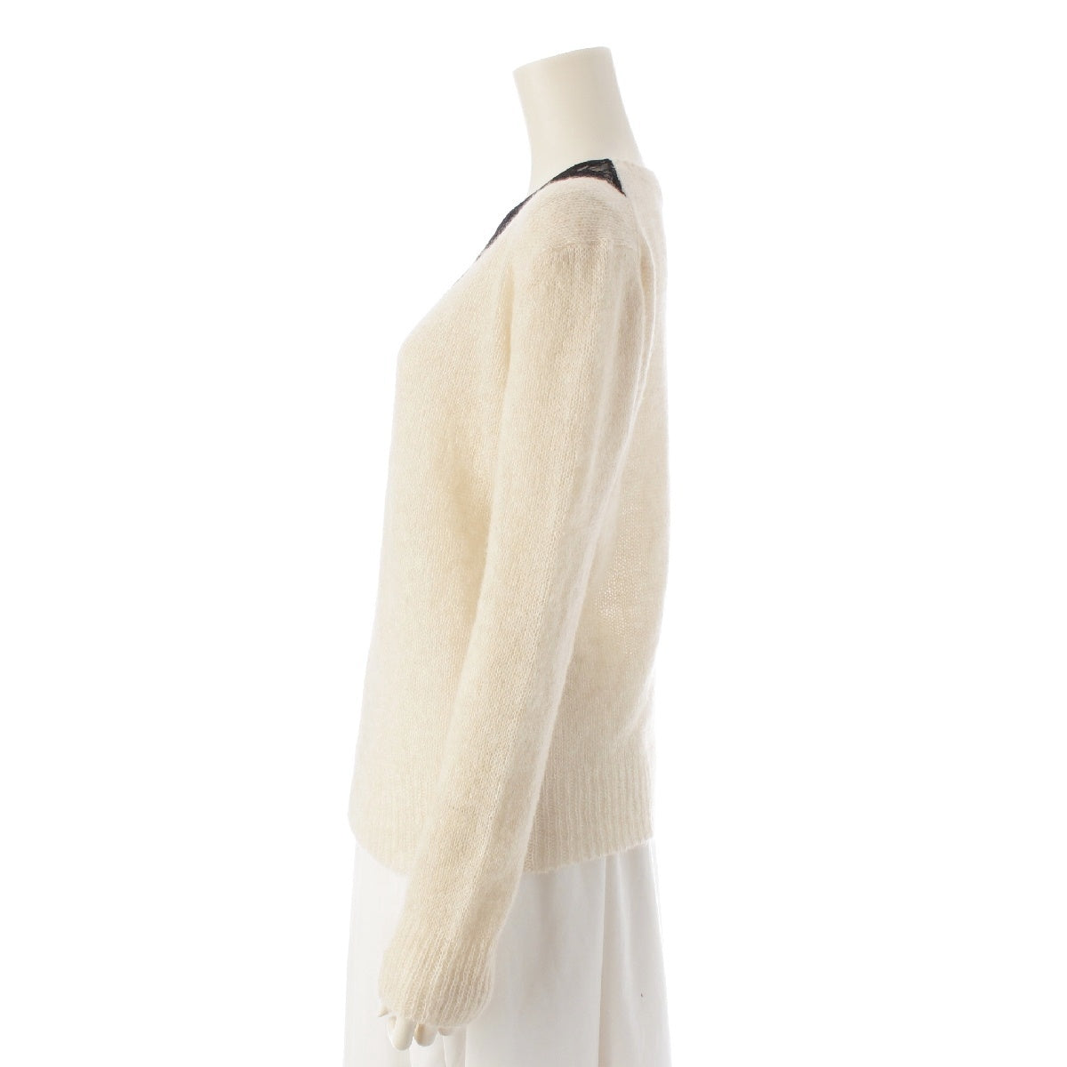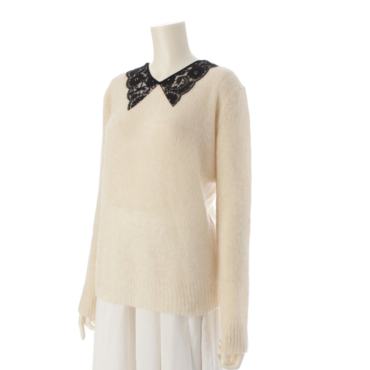 Dior 24AW Alpaca x Silk x Cashmere Lace collar knit tops 444S95AM440 White black 34