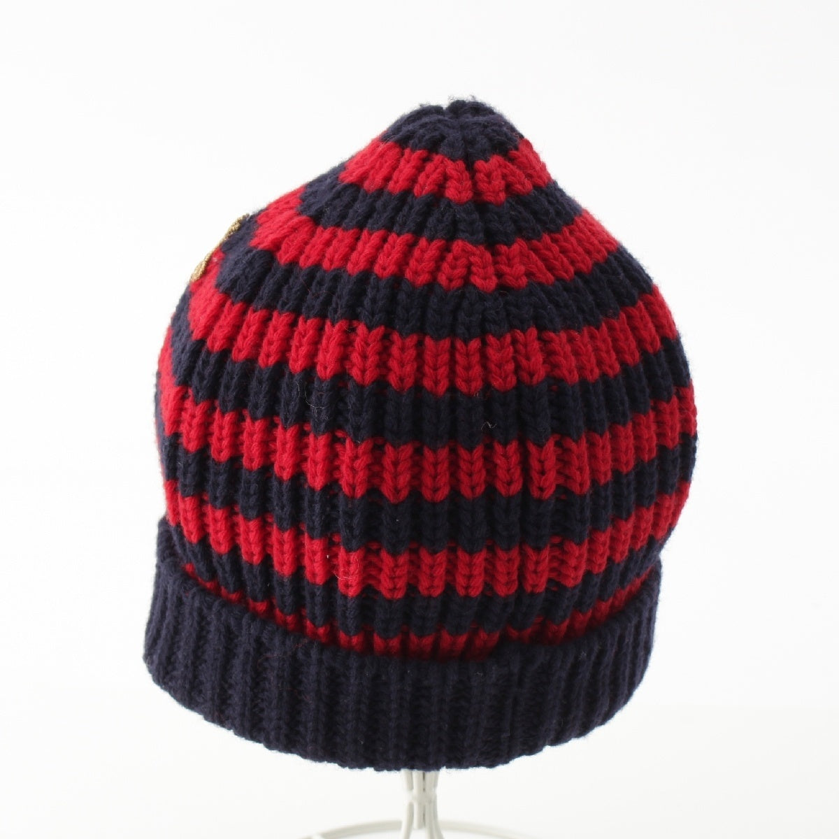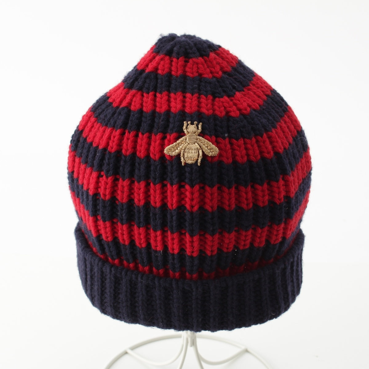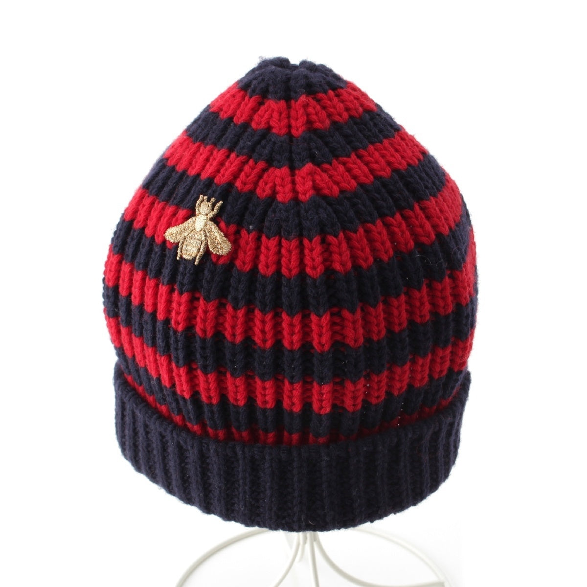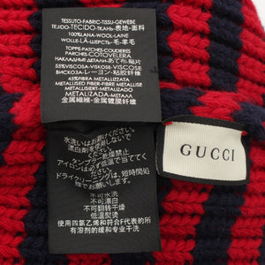 GUCCI wool BEE embroidery border Knit cap Beanie hat Navy red M