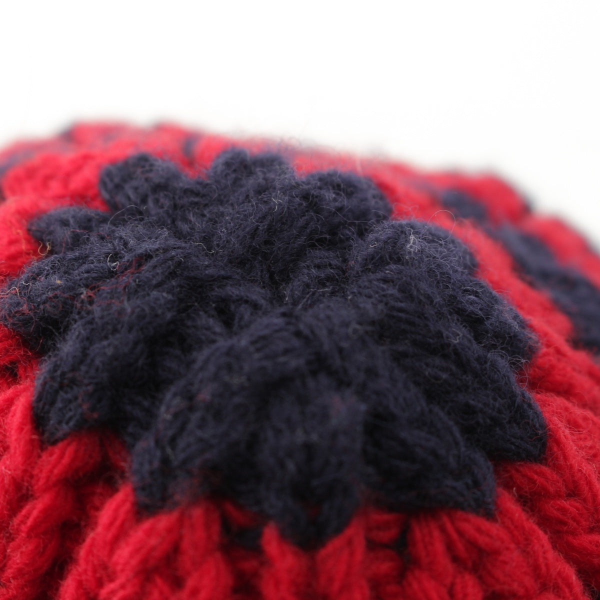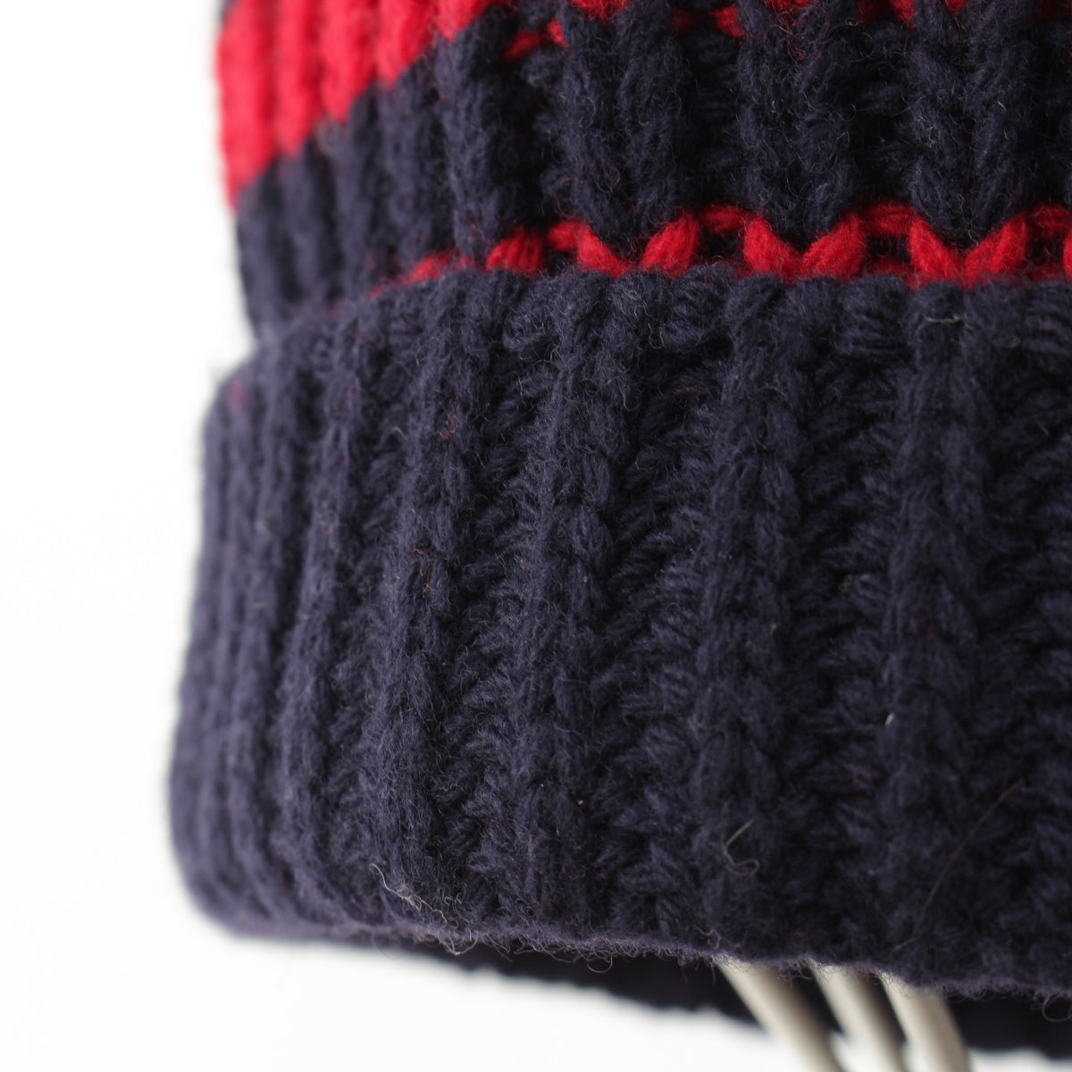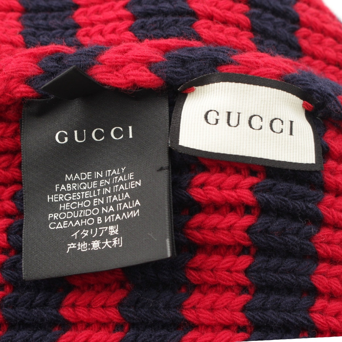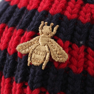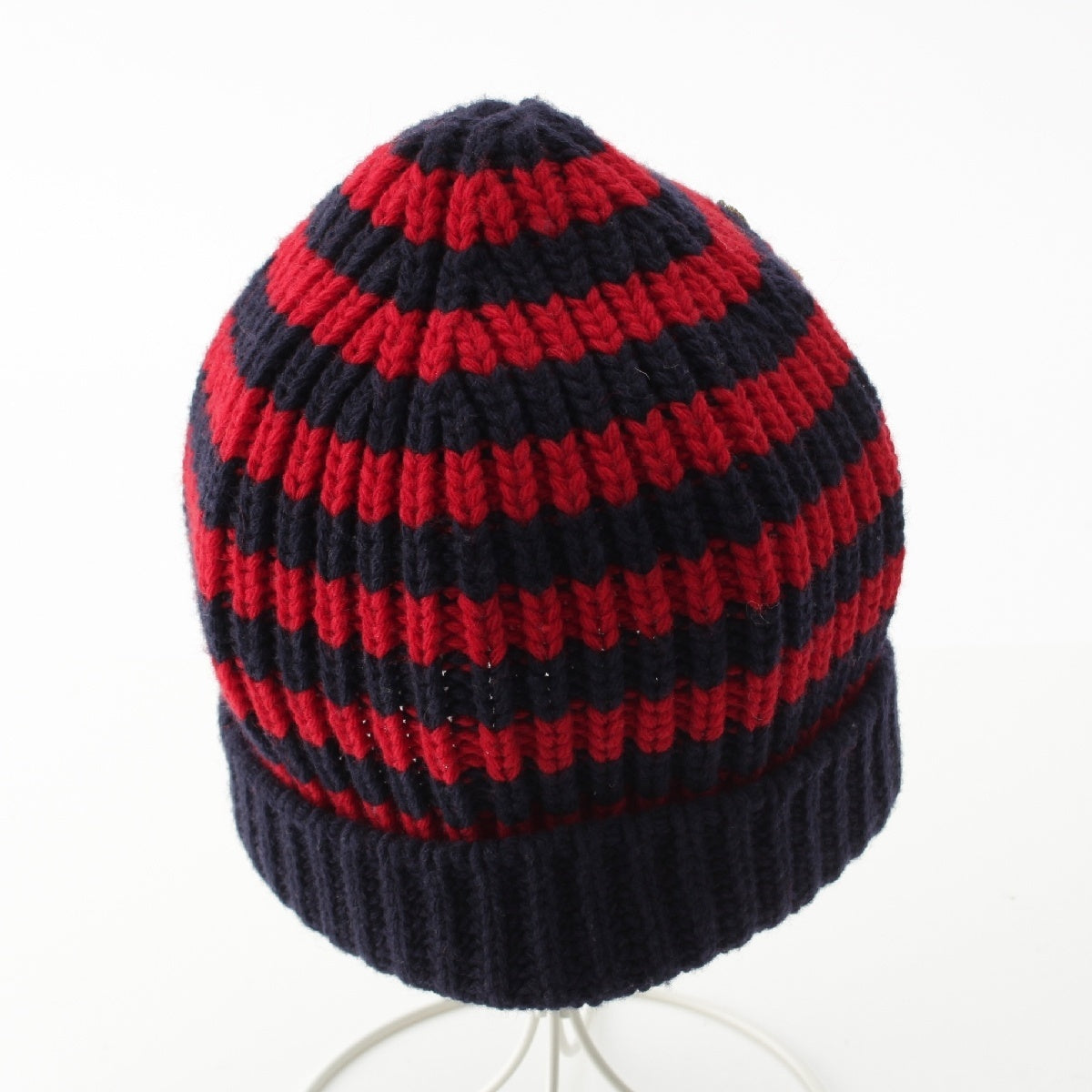 GUCCI wool BEE embroidery border Knit cap Beanie hat Navy red M
