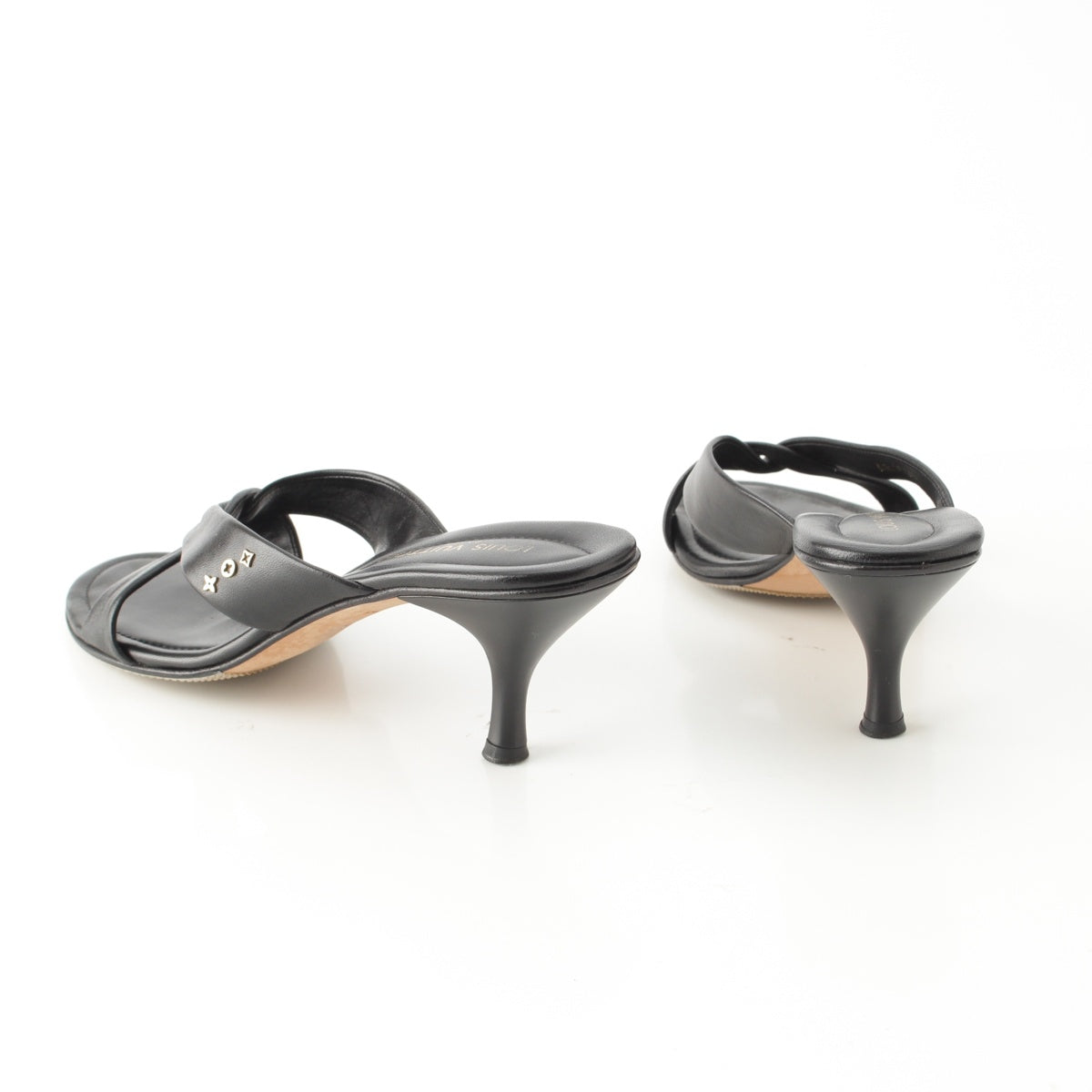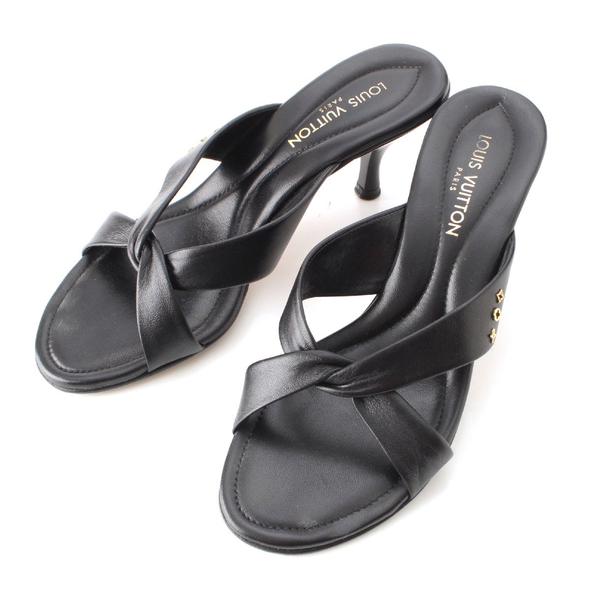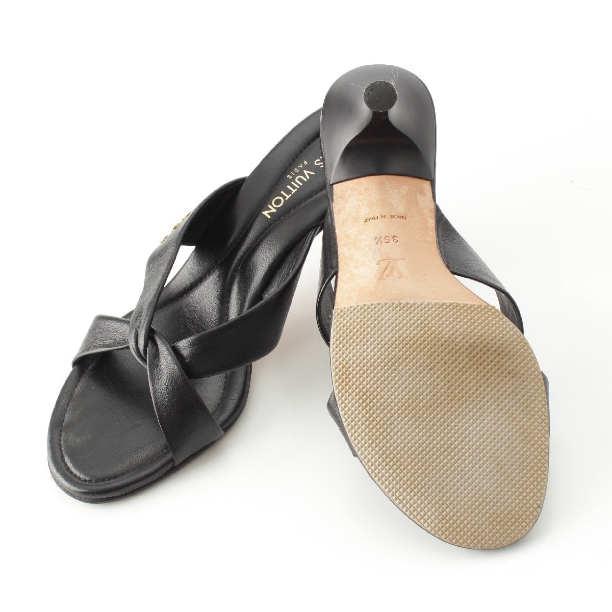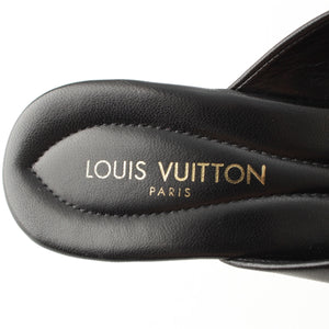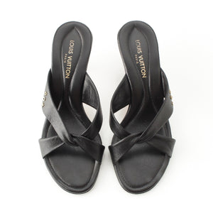LOUIS VUITTON leather Monogram cross strap heels Mule Sandals black 35 1/2