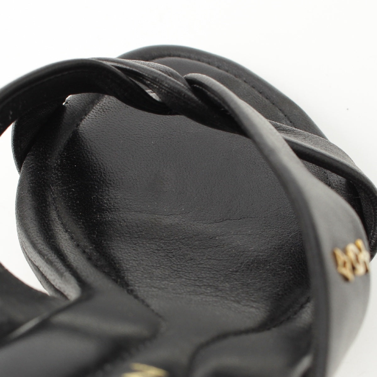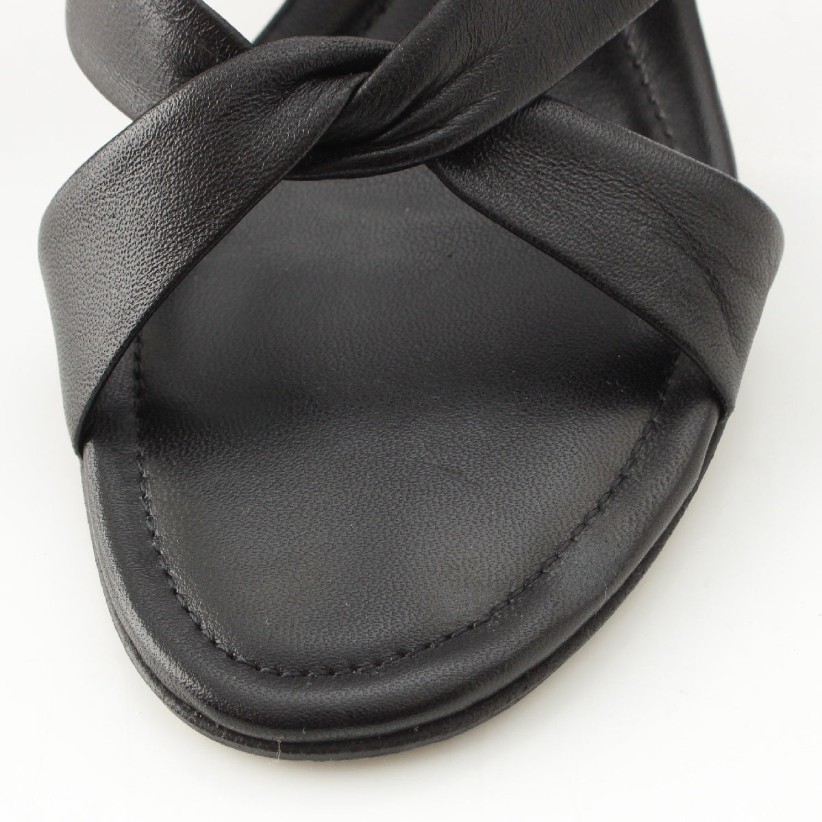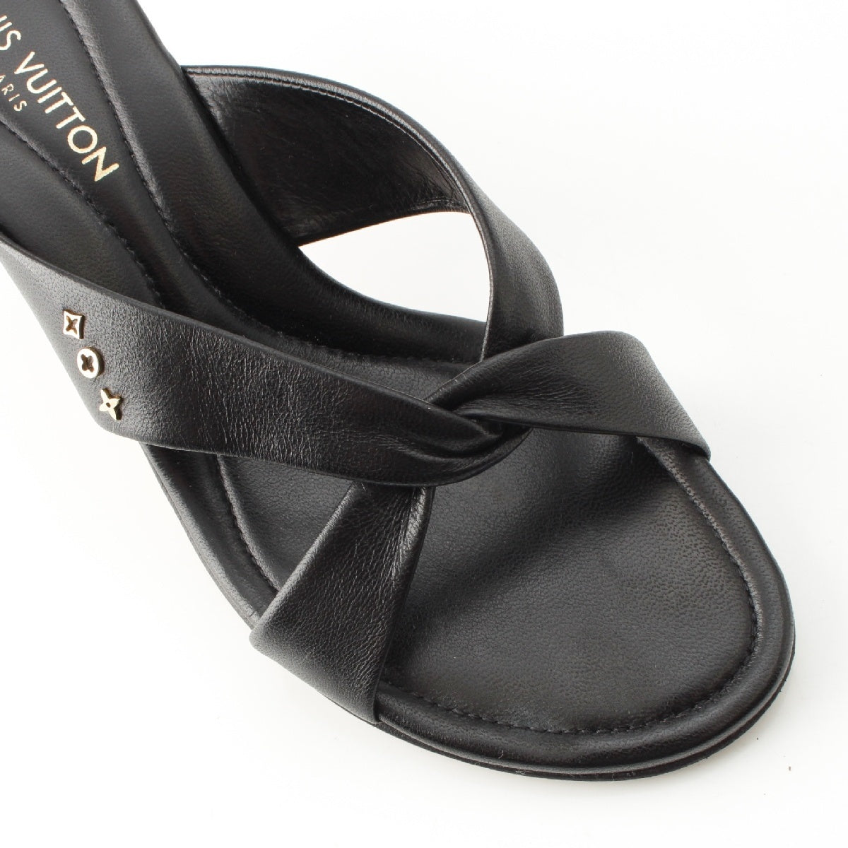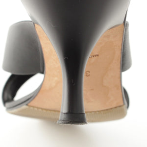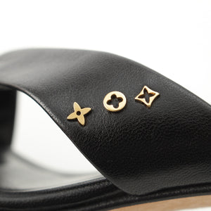 LOUIS VUITTON leather Monogram cross strap heels Mule Sandals black 35 1/2