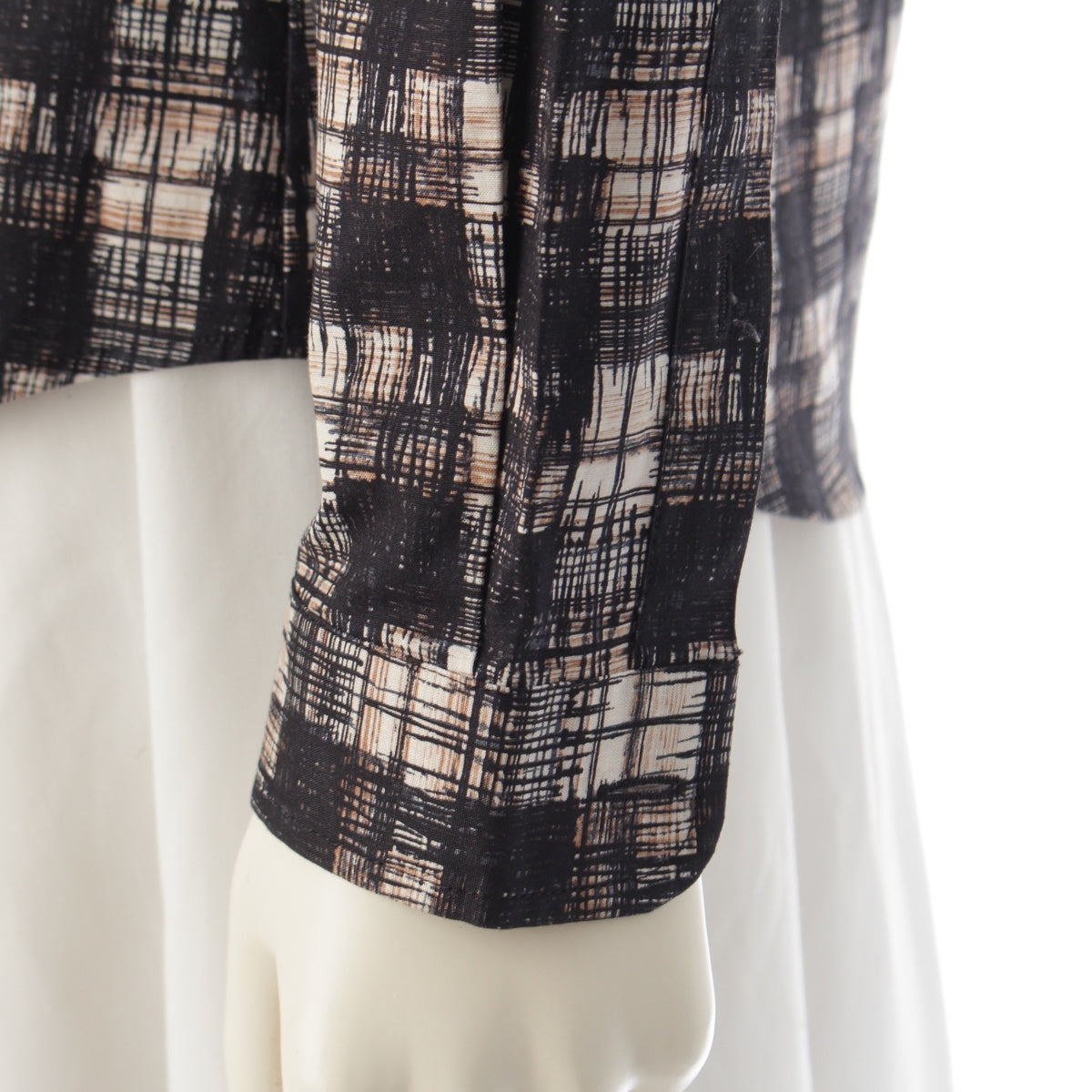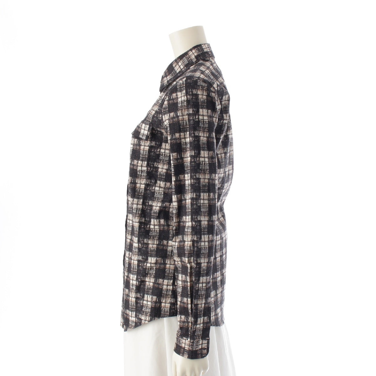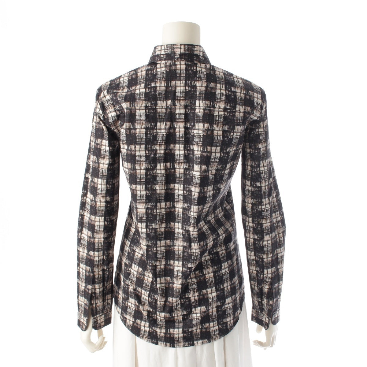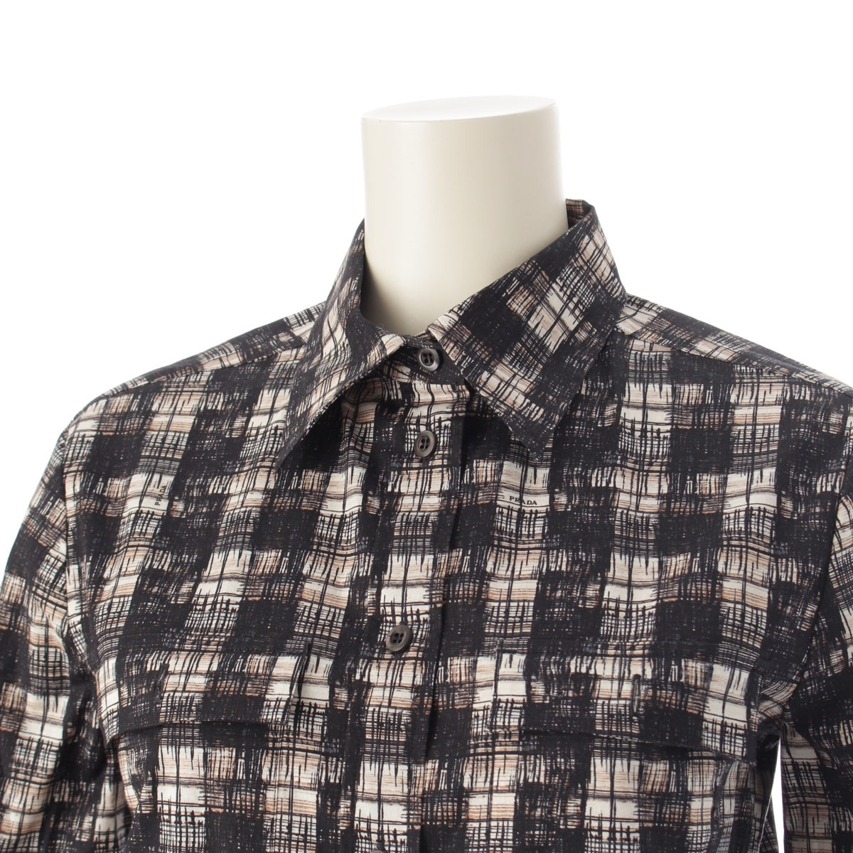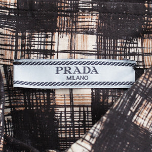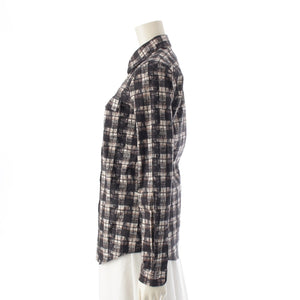 PRADA 15Stainless Steel cotton Logo Check Long Sleeve blouse Shirt tops black 38