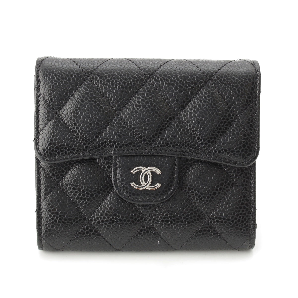 CHANEL 31 series classic small wallet Caviar skin compact Tri-fold wallet AP0231 Black Silver Metal
