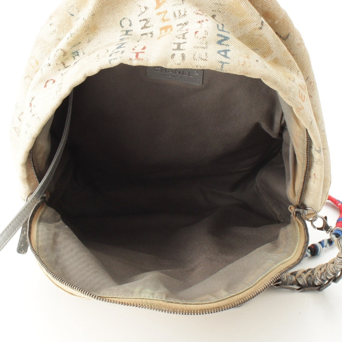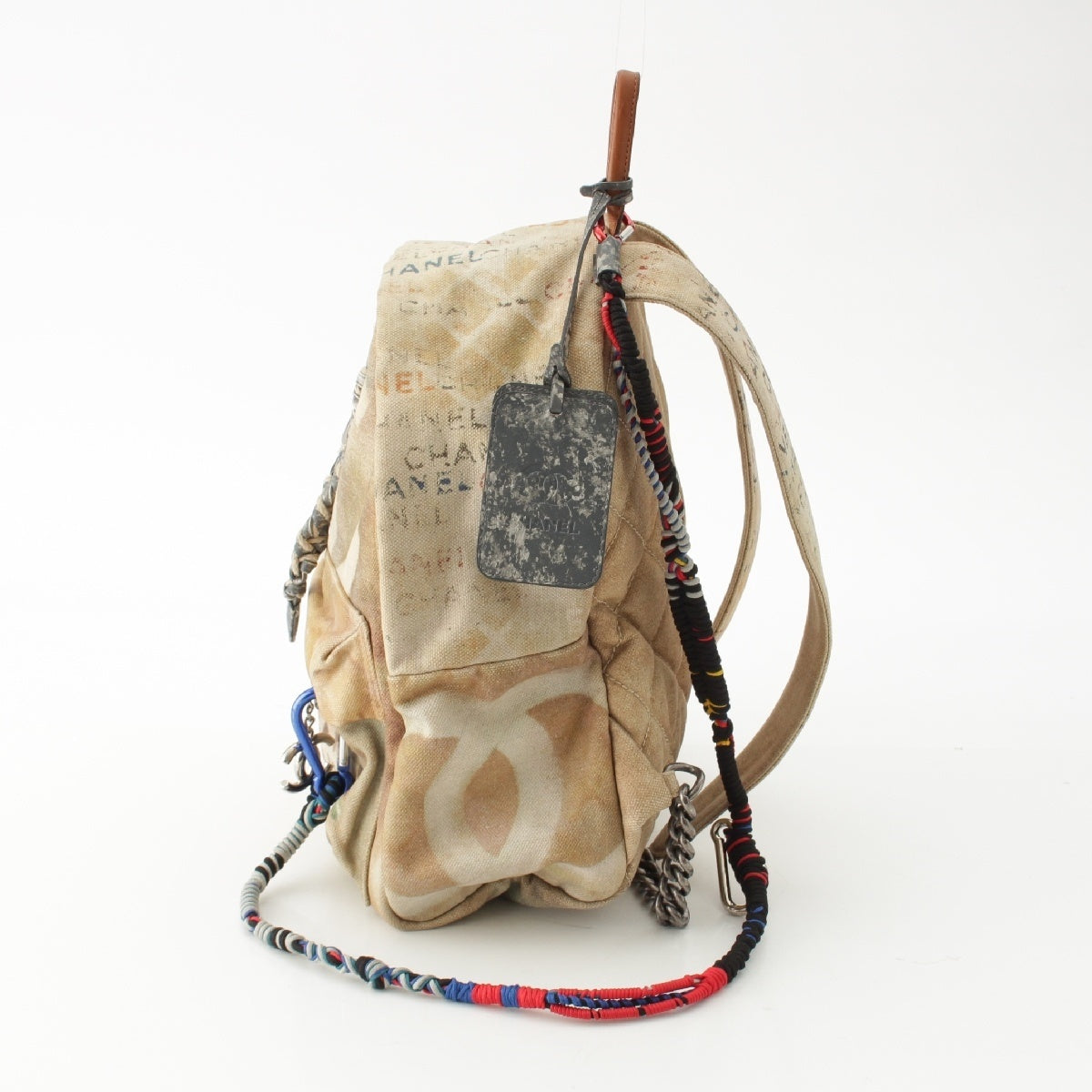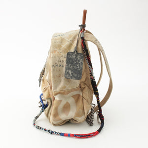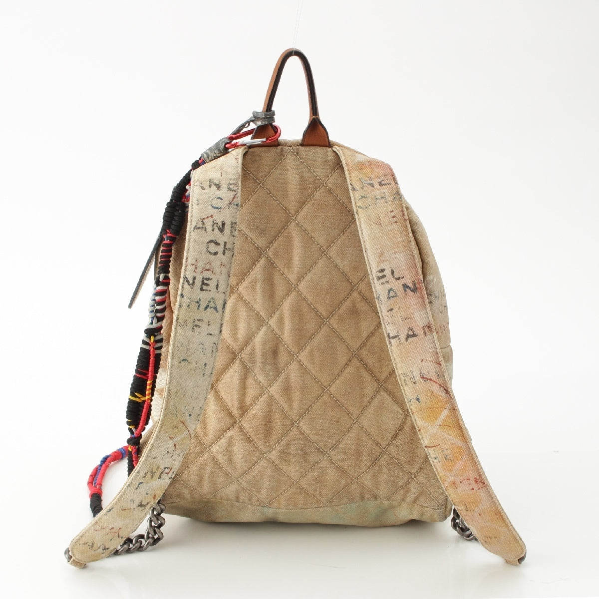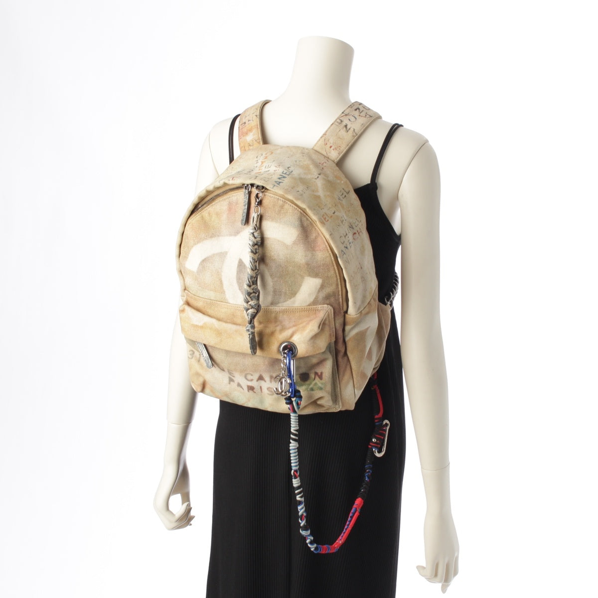 CHANEL 14Stainless Steel Matrasse Logo COCO Mark Graffiti Backpack Daypack Backpack with carabiner A92352 Beige multicolor