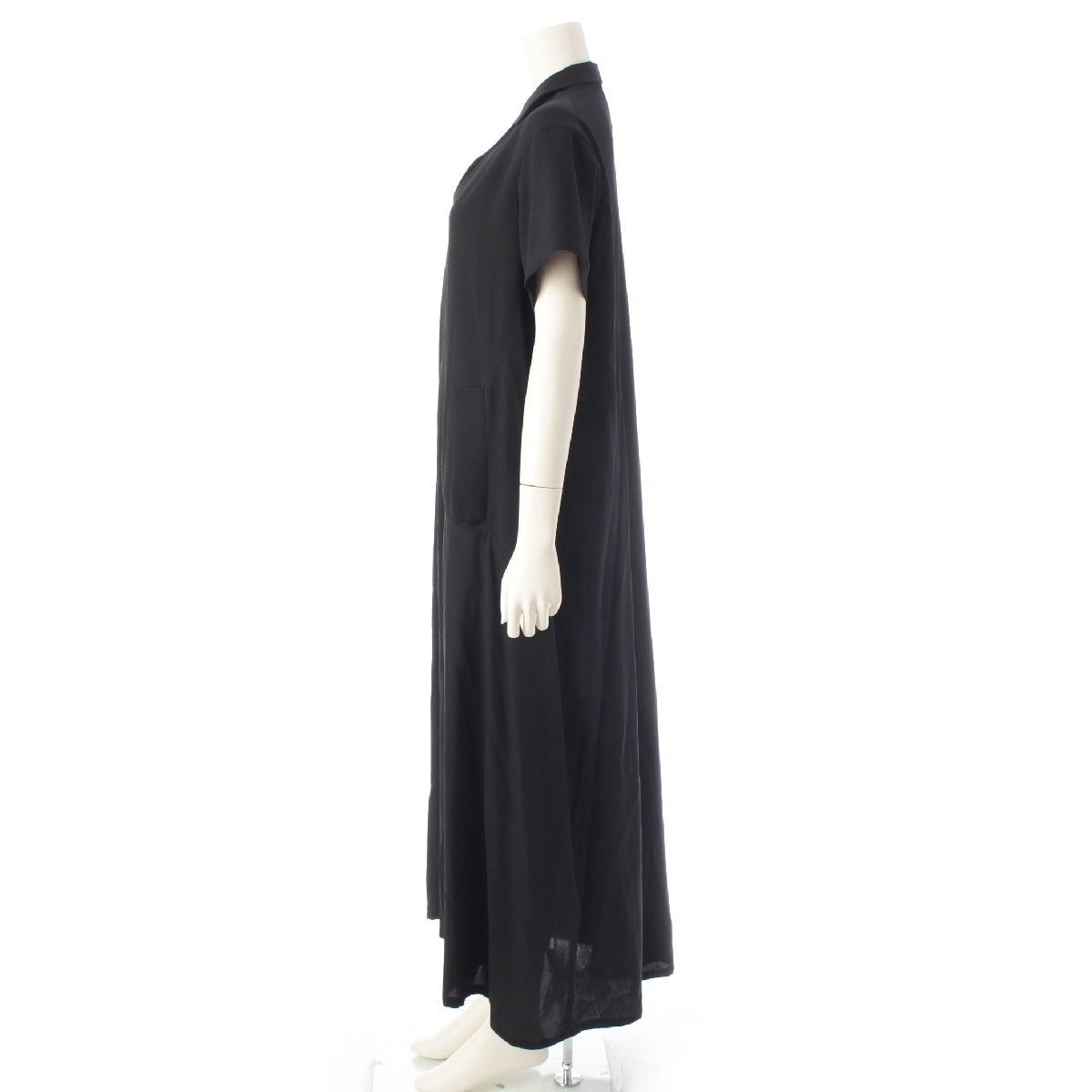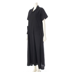 Y's Youji Yamamoto wool Open collar short sleeve one piece YF-D04-100 black