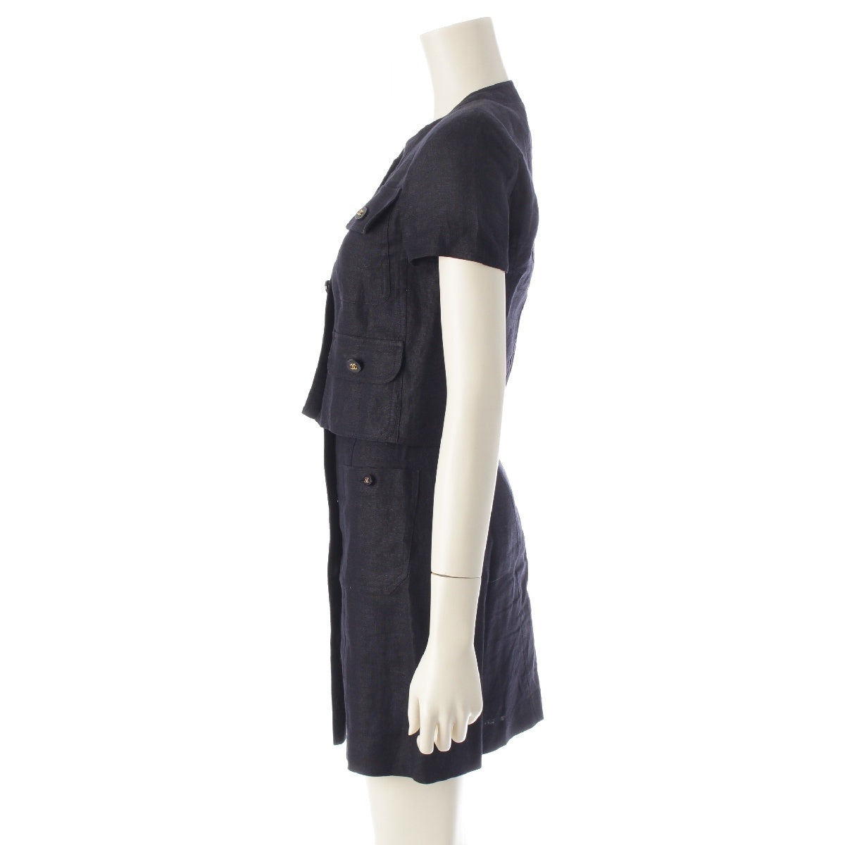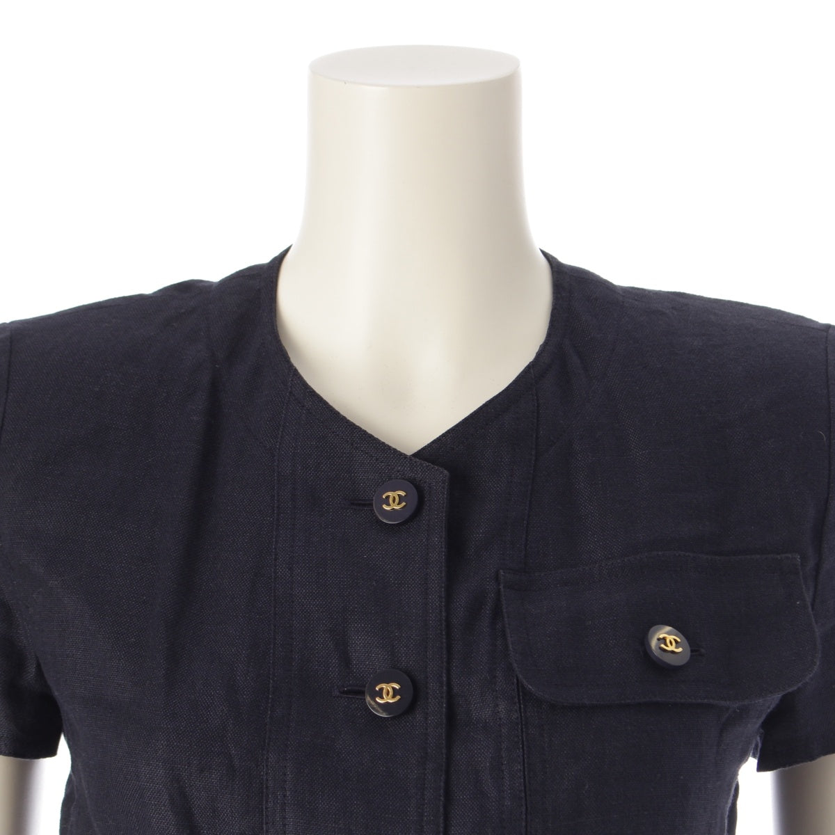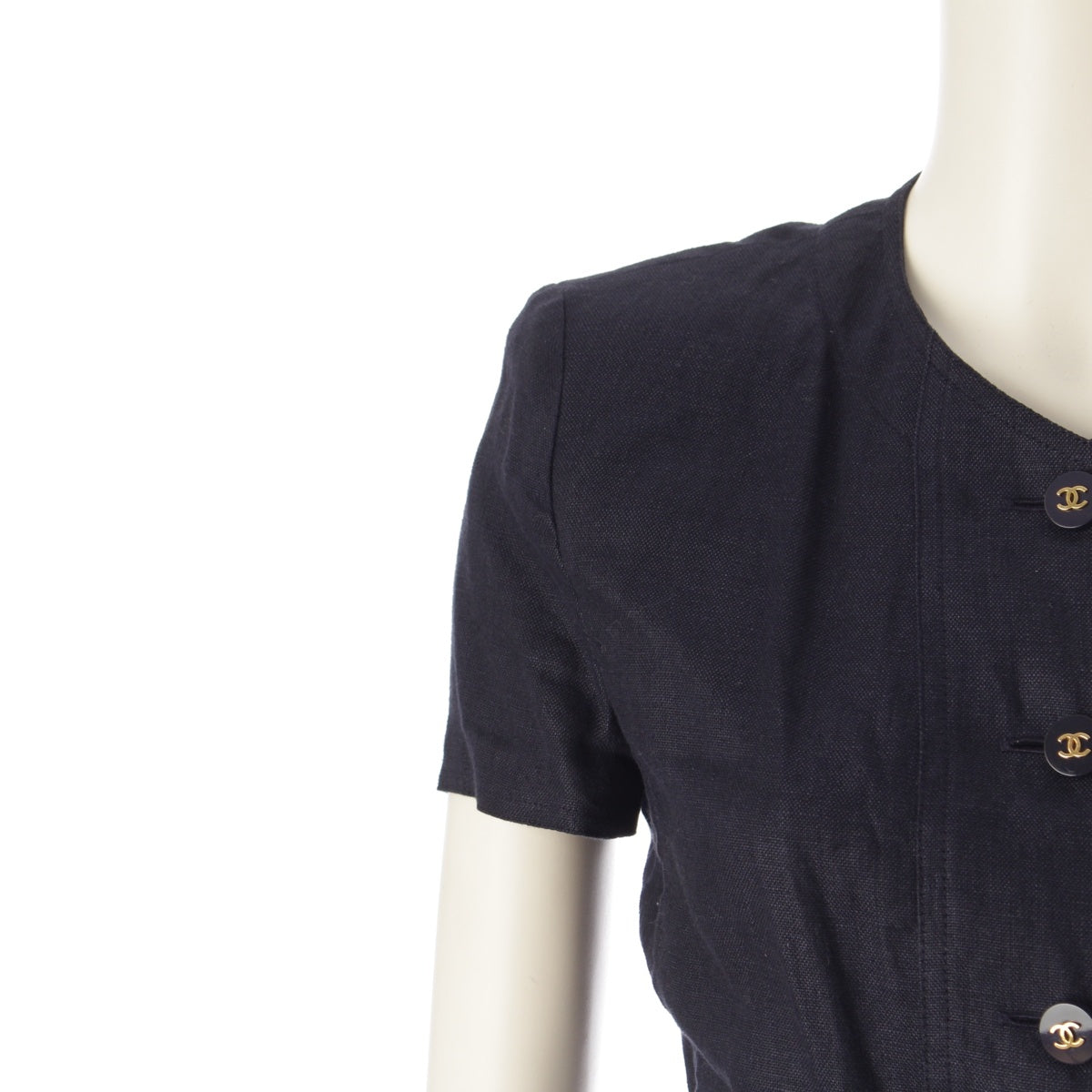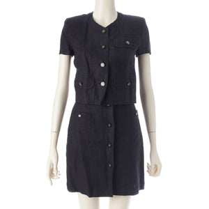 CHANEL 97P linen Vintage COCO Mark Tops Skirt setup Shirt jacket 03546H/R Navy 34