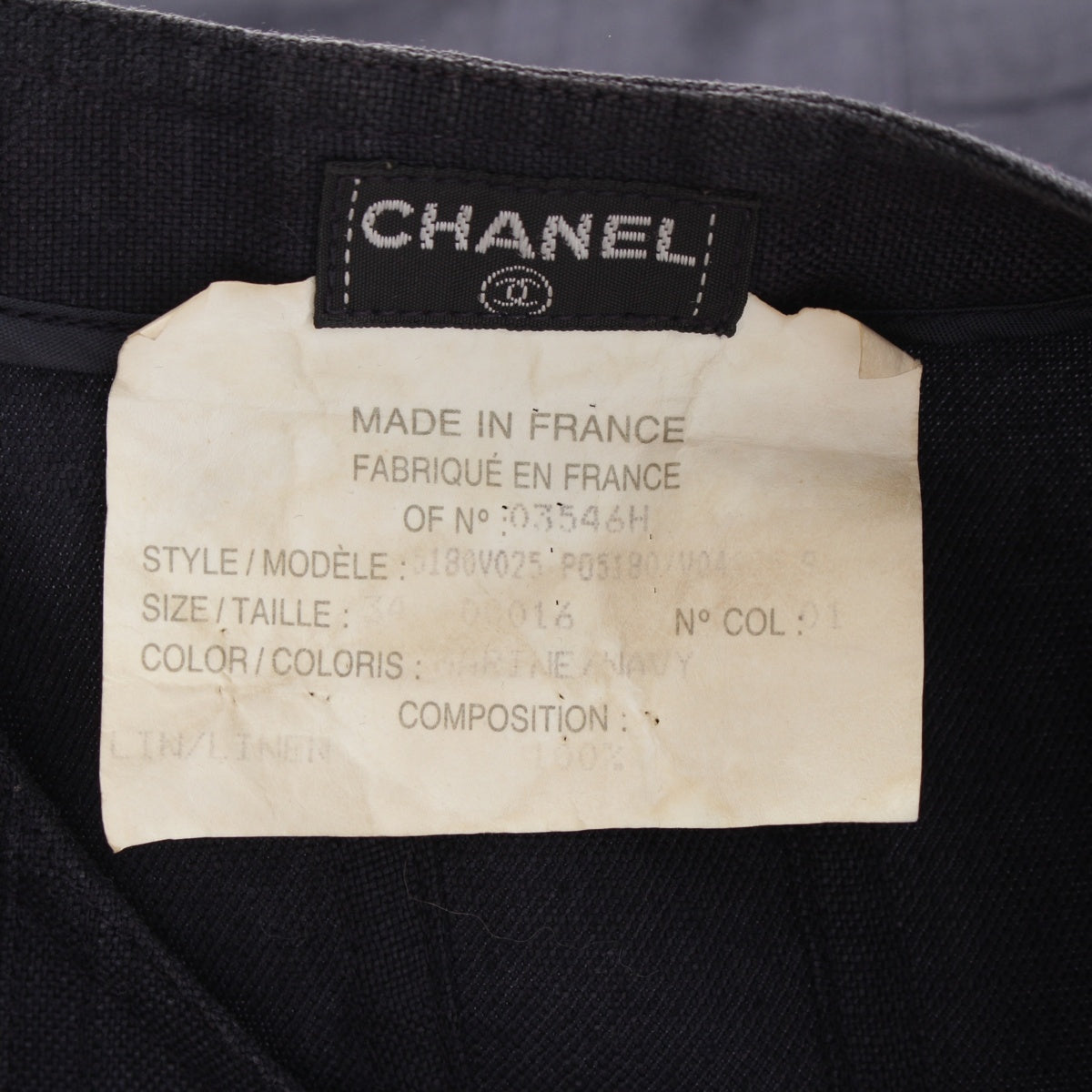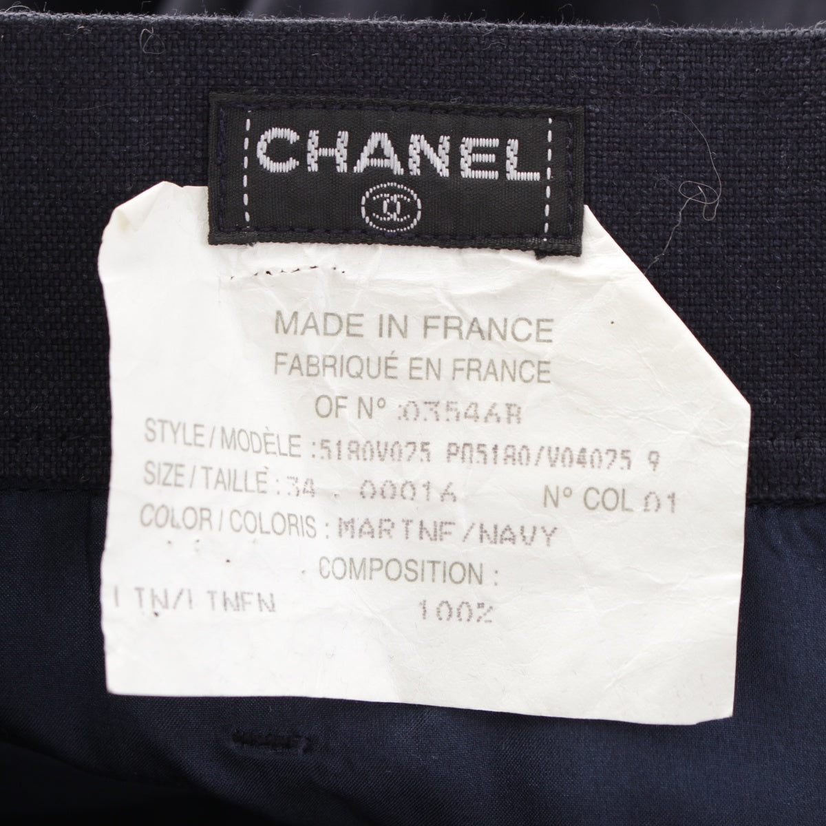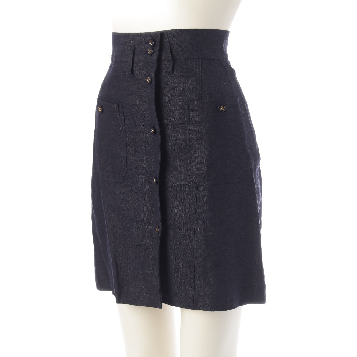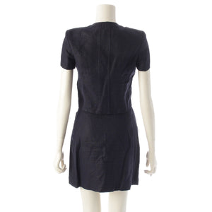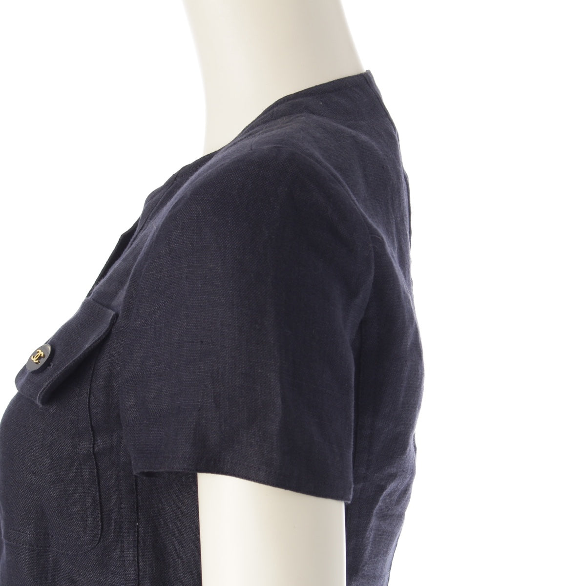 CHANEL 97P linen Vintage COCO Mark Tops Skirt setup Shirt jacket 03546H/R Navy 34