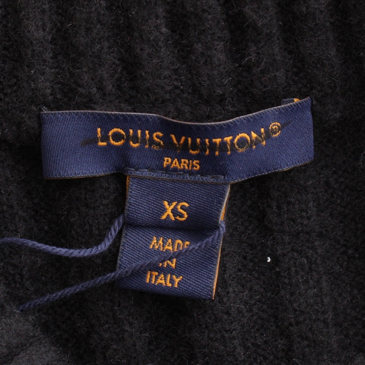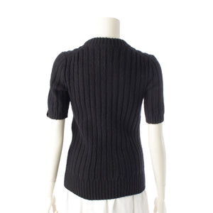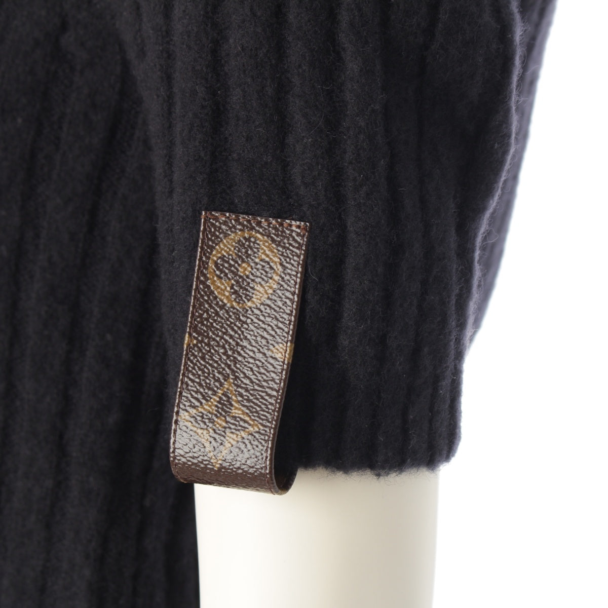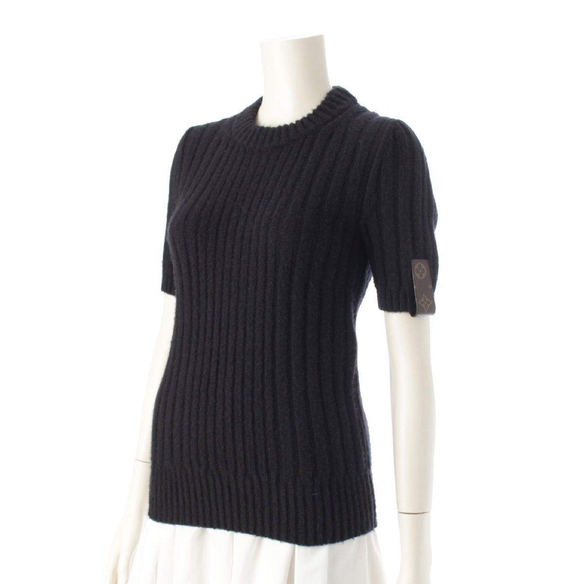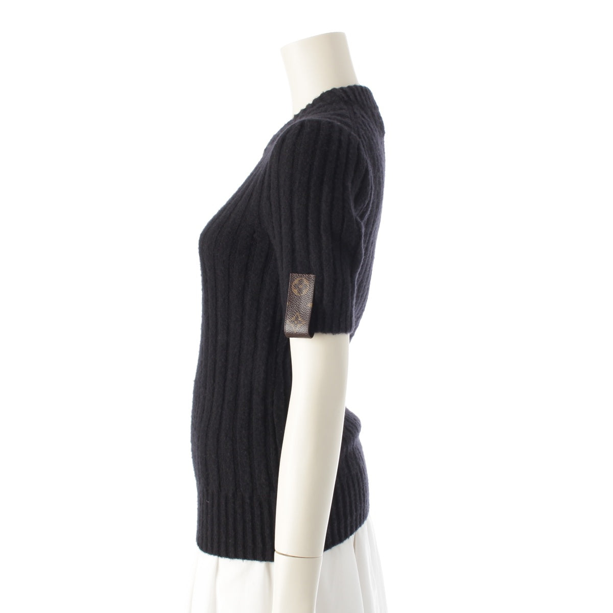 LOUIS VUITTON Wool x Silk x Cashmere Monogram Leather Patch Rib Knit Short Sleeve sweater tops 1ABRBD black XS
