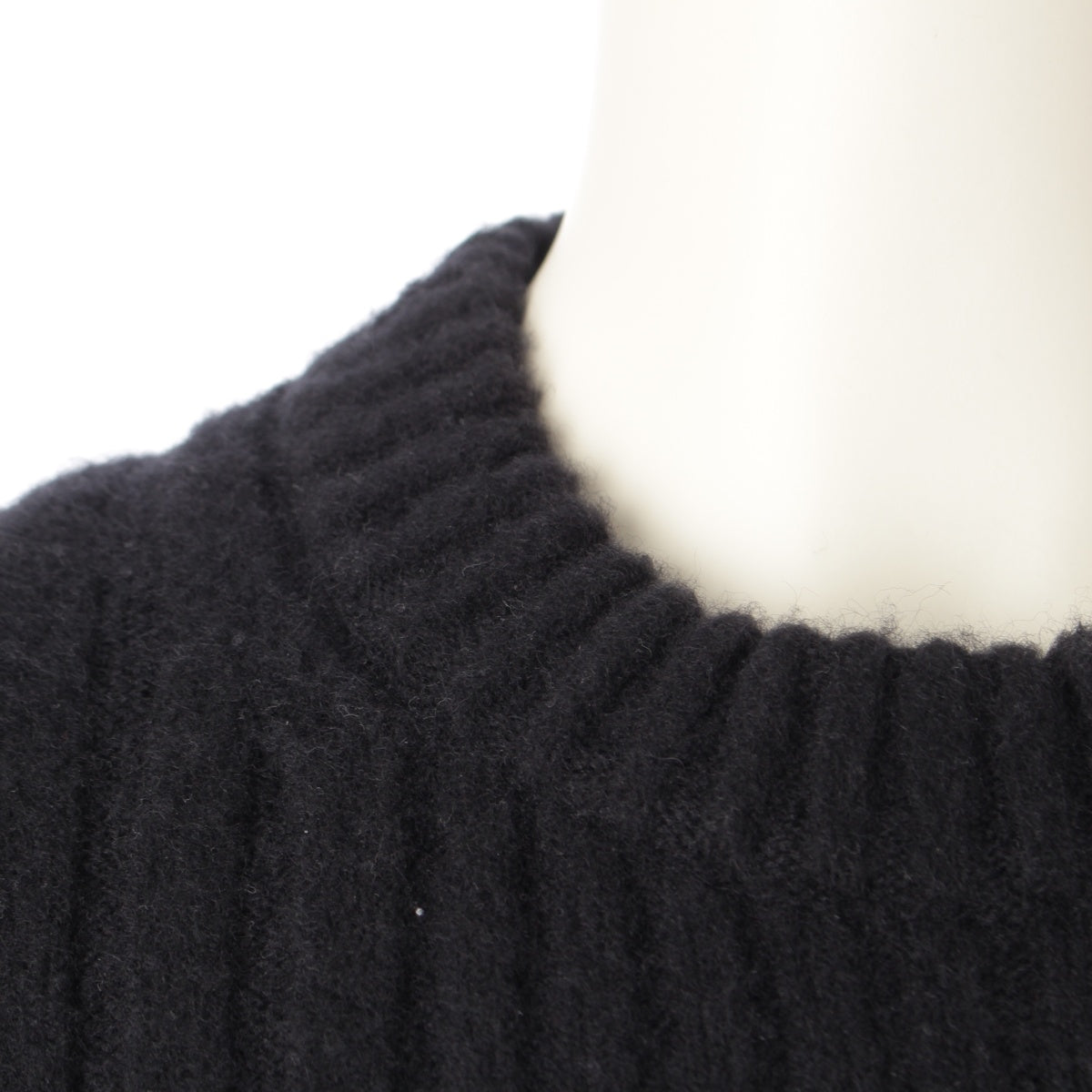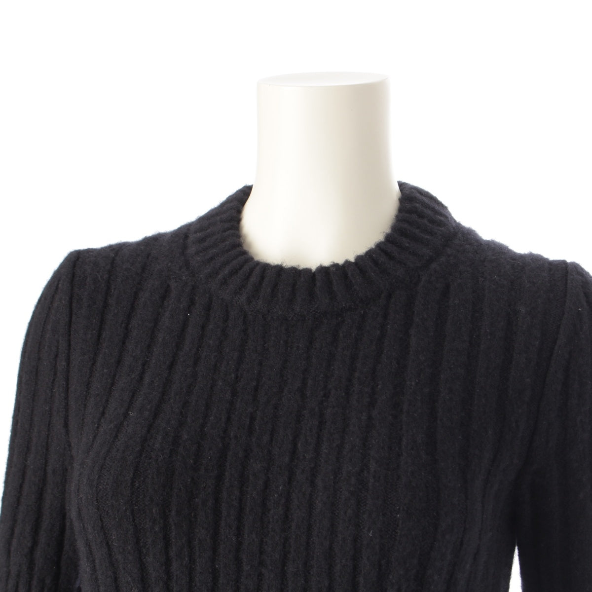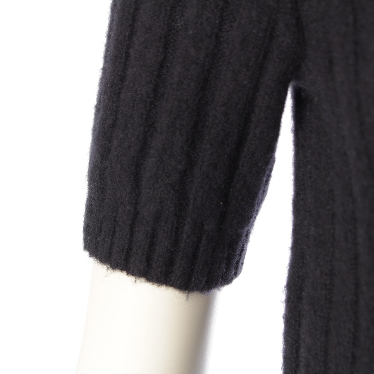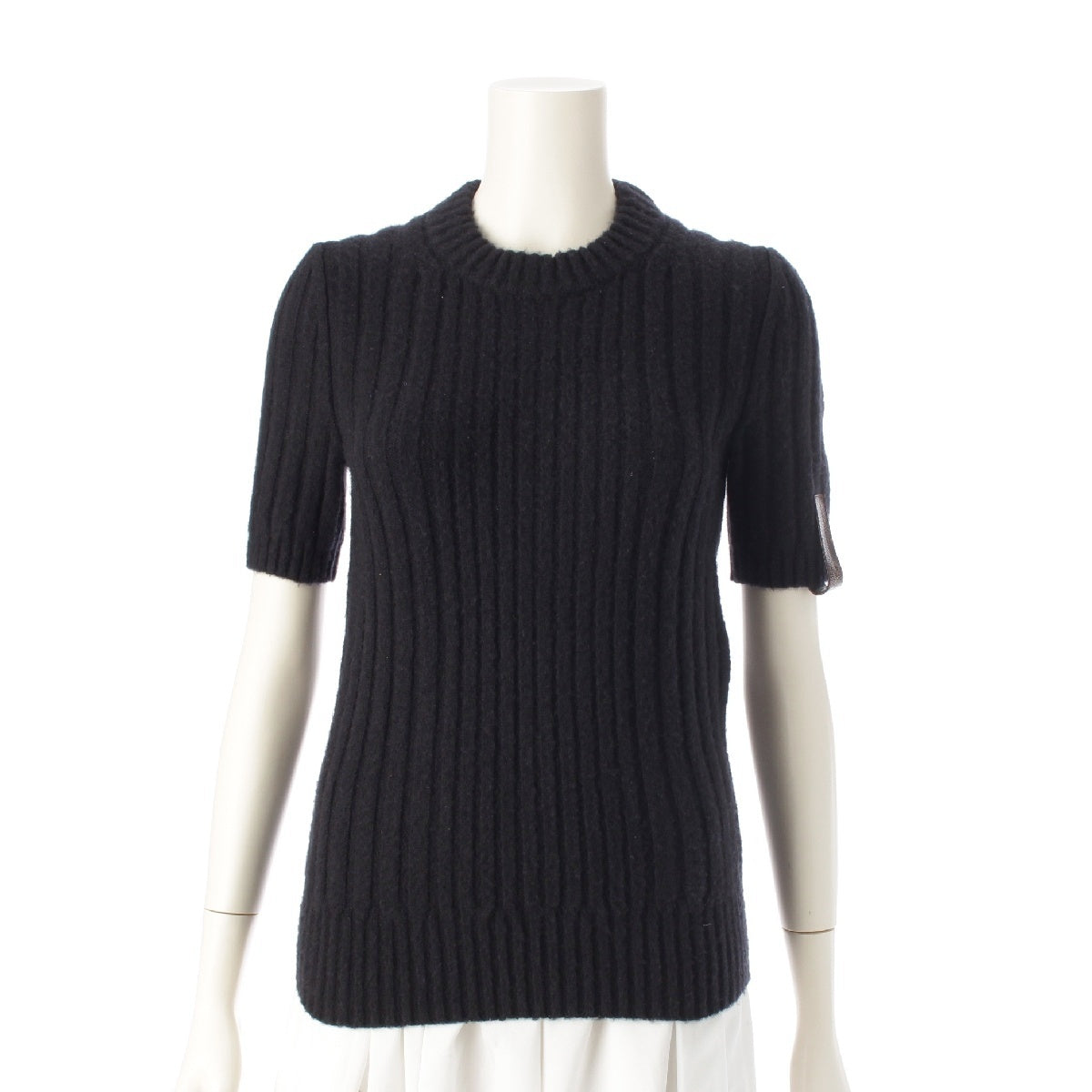 LOUIS VUITTON Wool x Silk x Cashmere Monogram Leather Patch Rib Knit Short Sleeve sweater tops 1ABRBD black XS