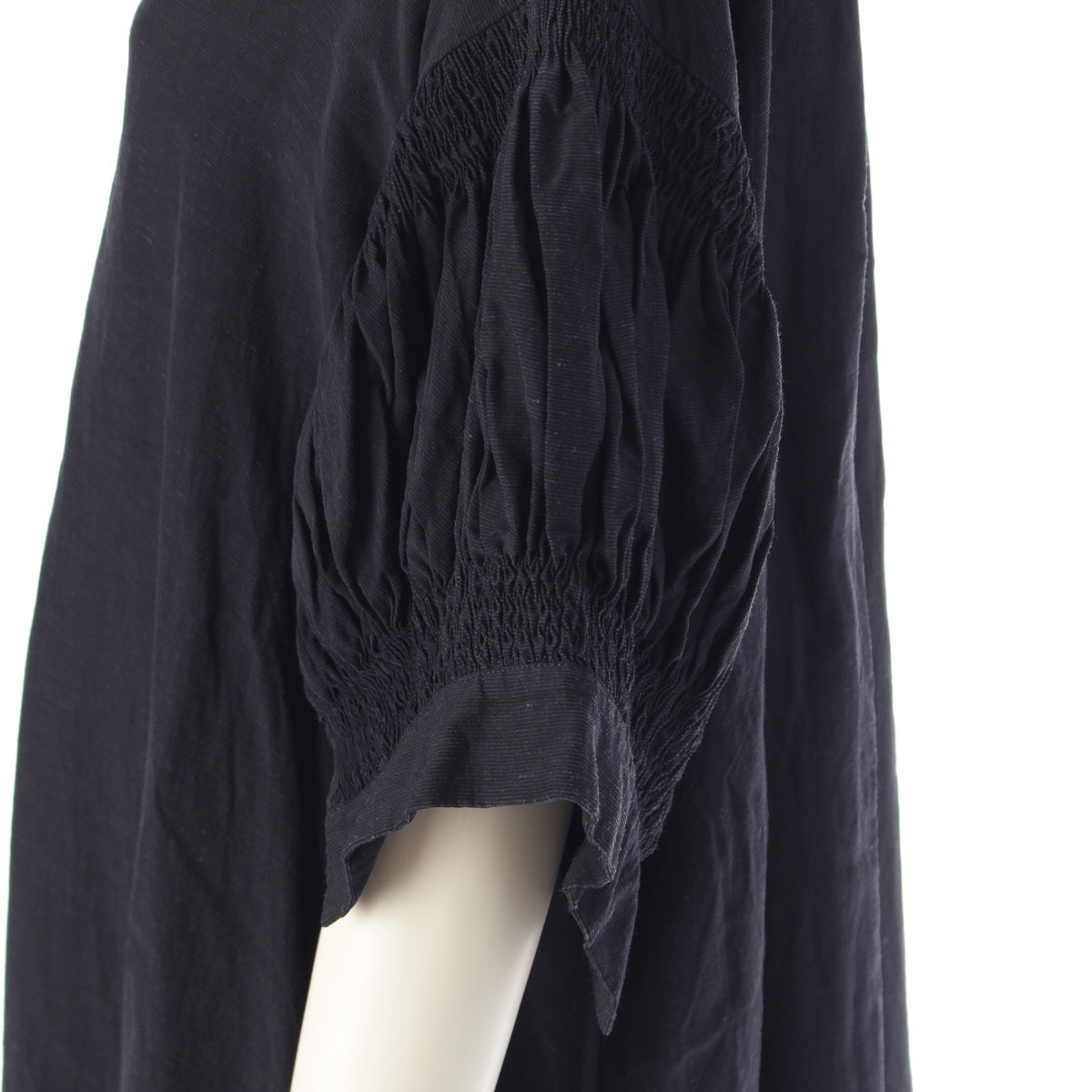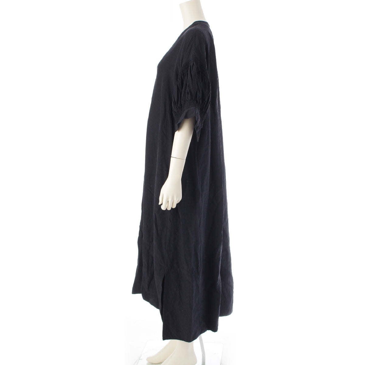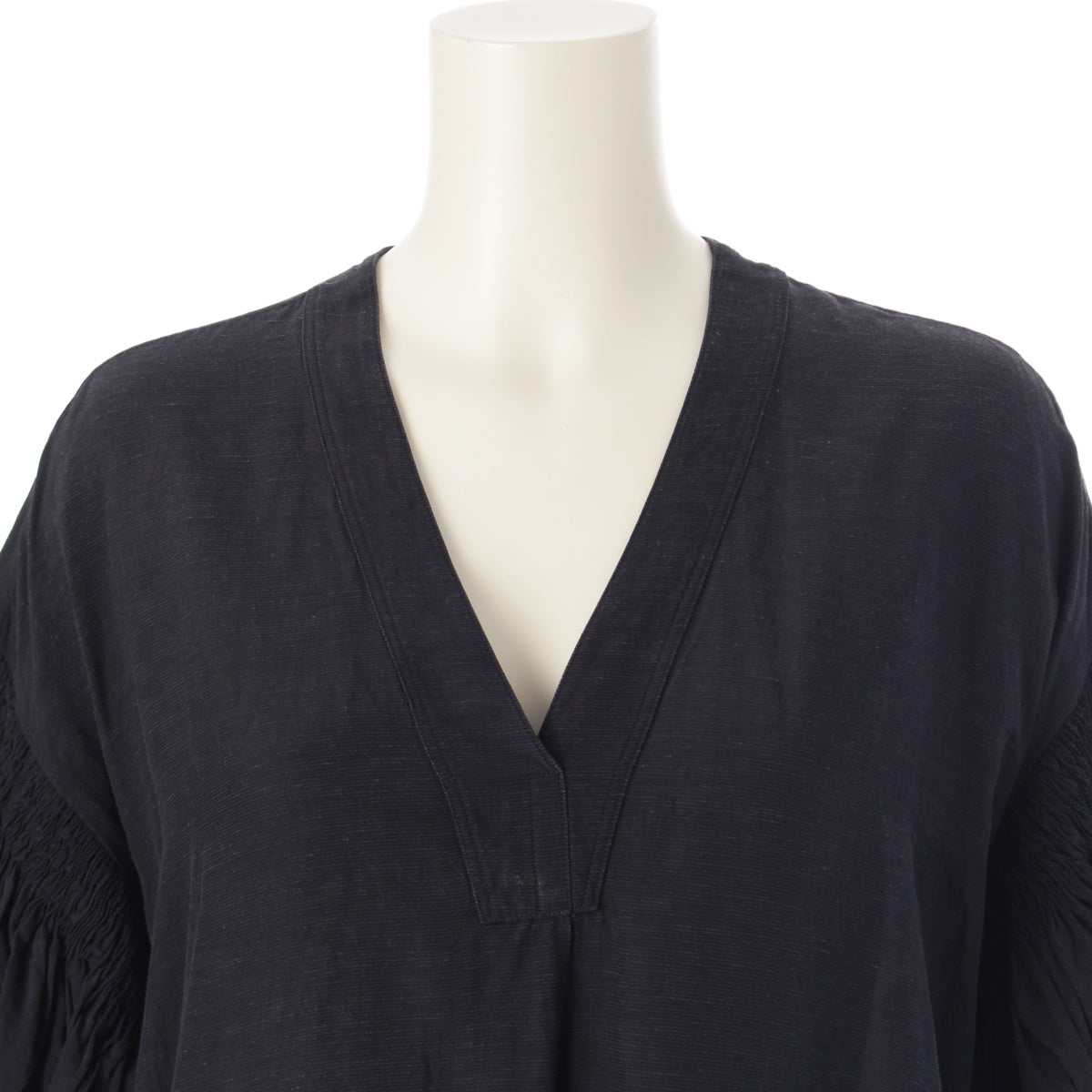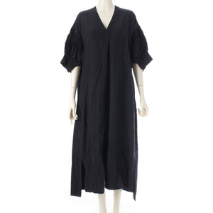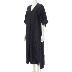 JIL SANDER 20Stainless Steel linen Gathered V-neck long one piece Short sleeve JSPQ503906 Navy 36