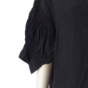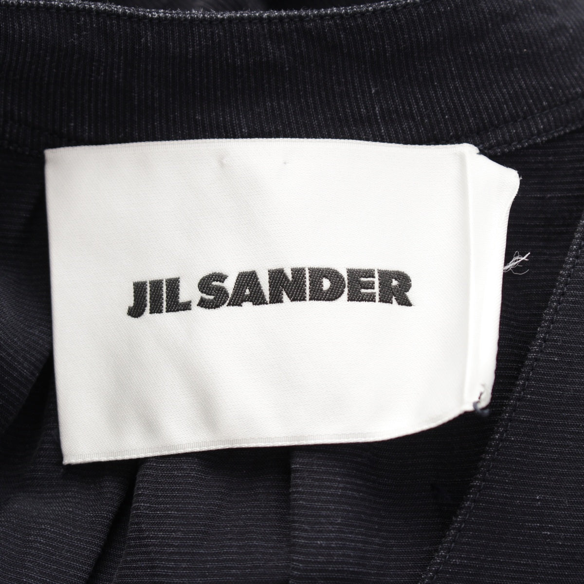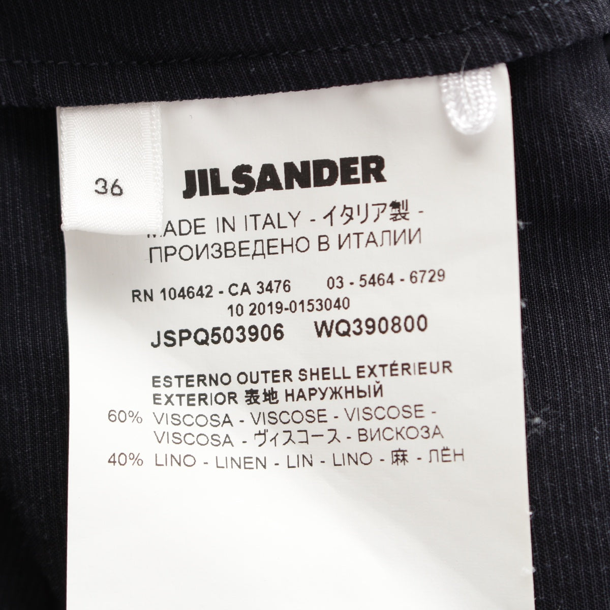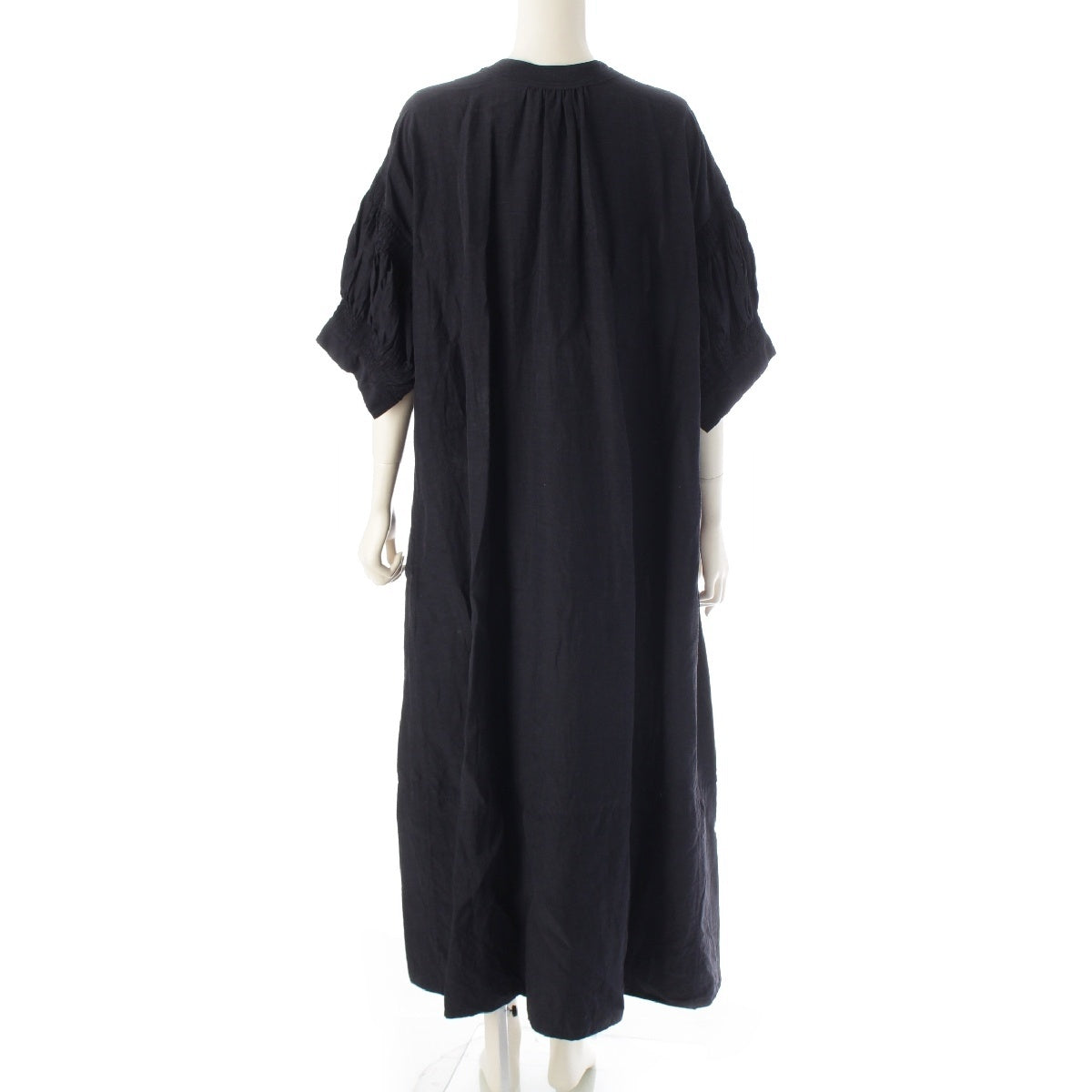 JIL SANDER 20Stainless Steel linen Gathered V-neck long one piece Short sleeve JSPQ503906 Navy 36