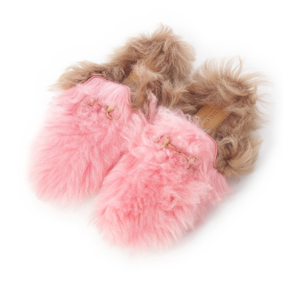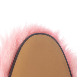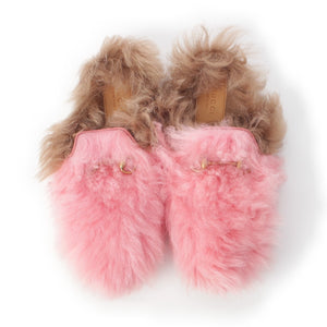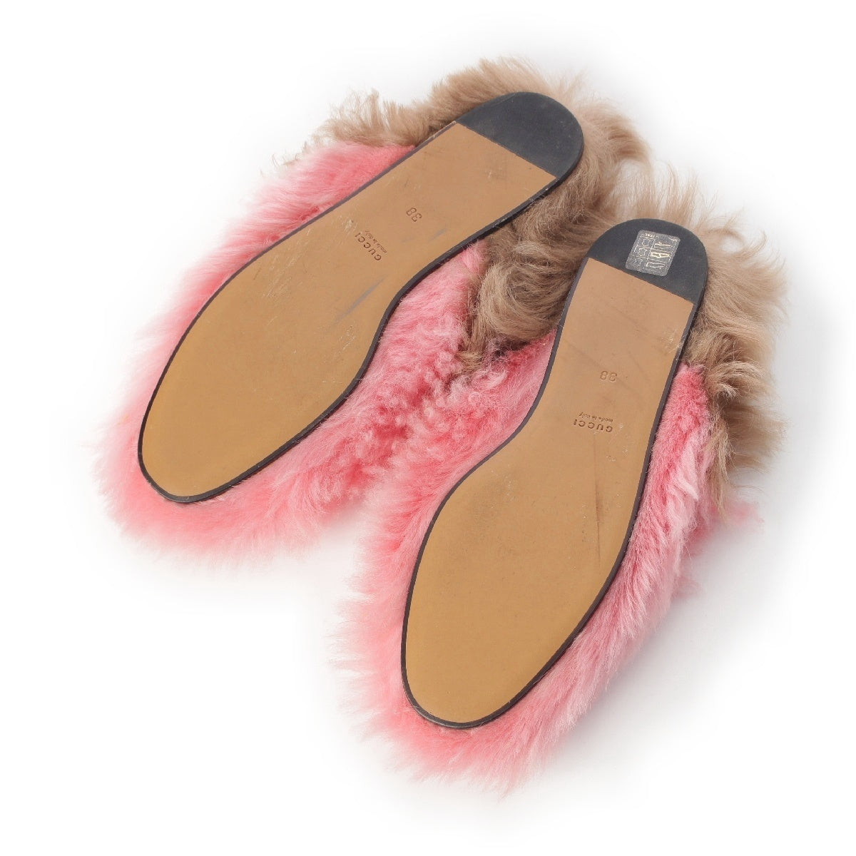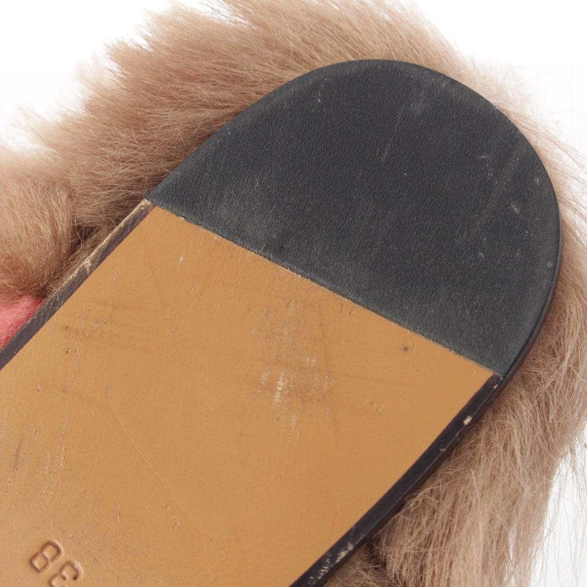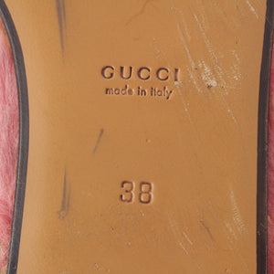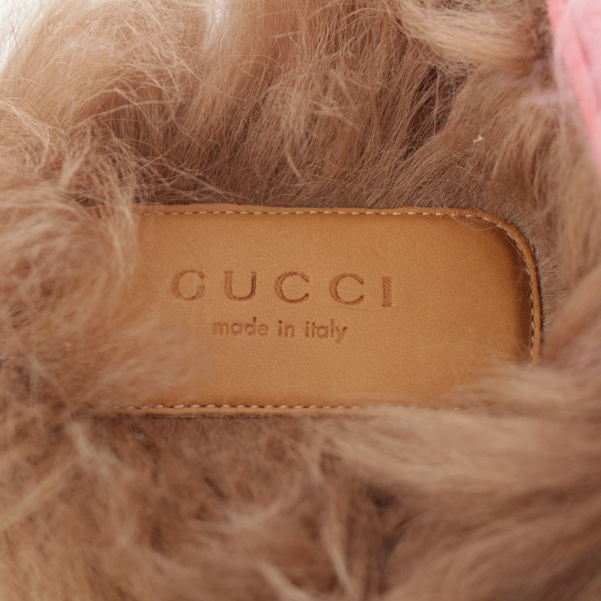 GUCCI Princetown Horsebit fur Sandals Flat Mule Pink brown 38