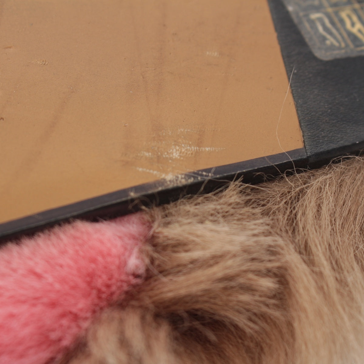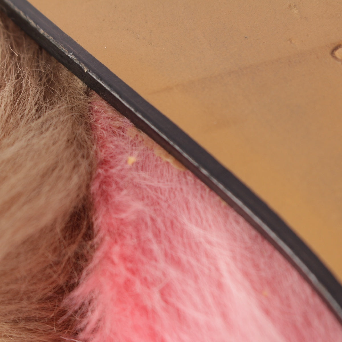 onFur on the heel and underside of the right footStain、onmetalDiscolors、onOutsoleStain,scrub,Scar、ontoesscrub、onTan rim