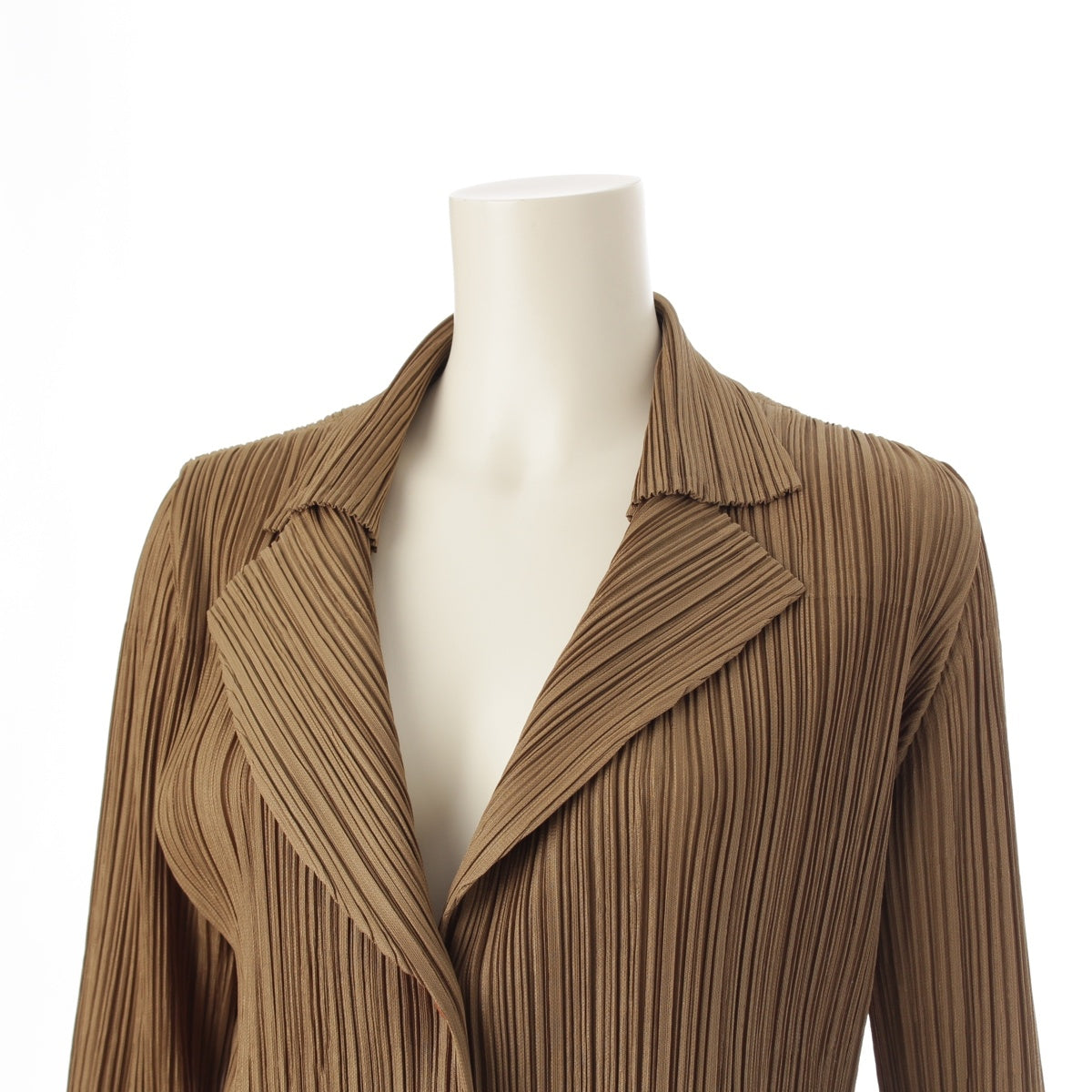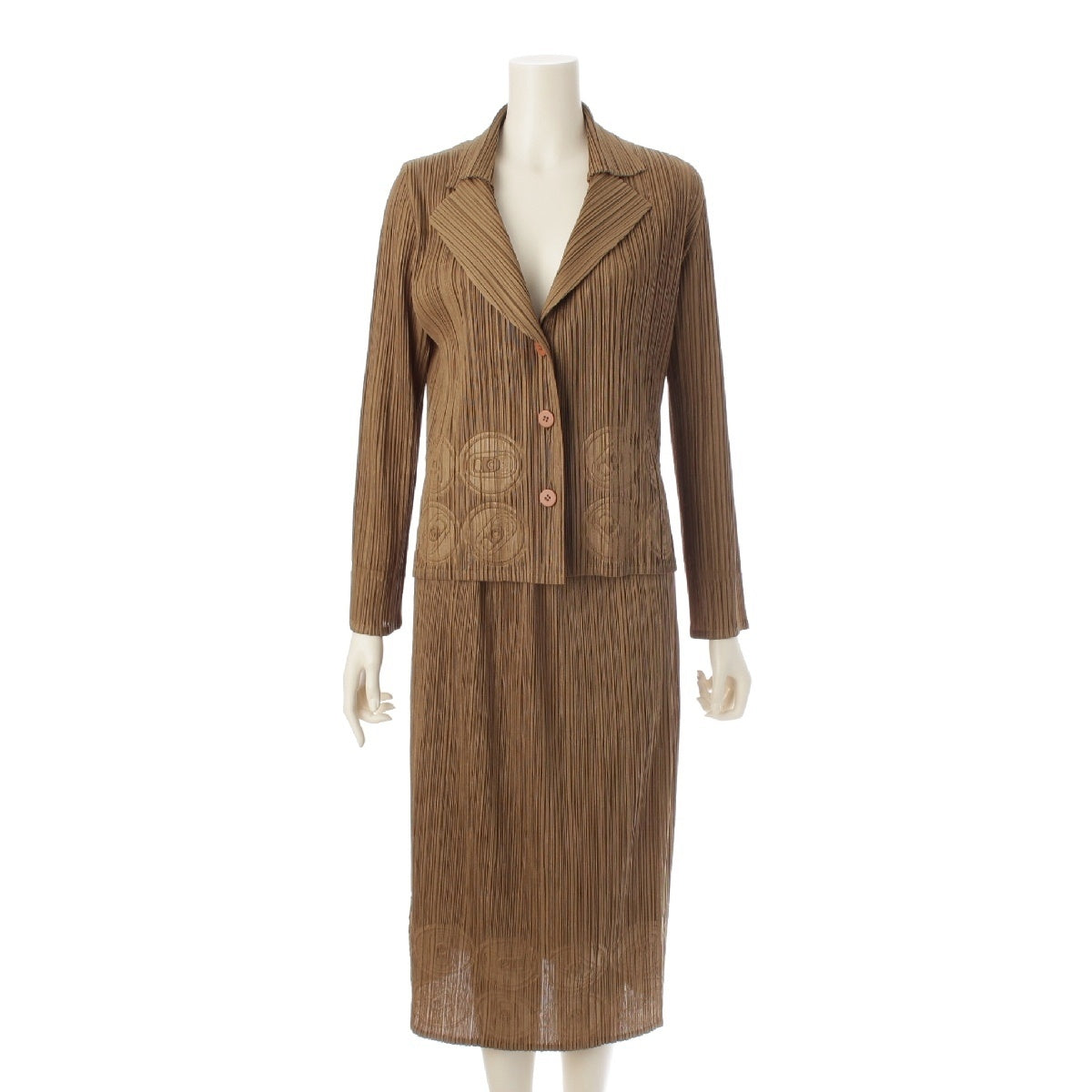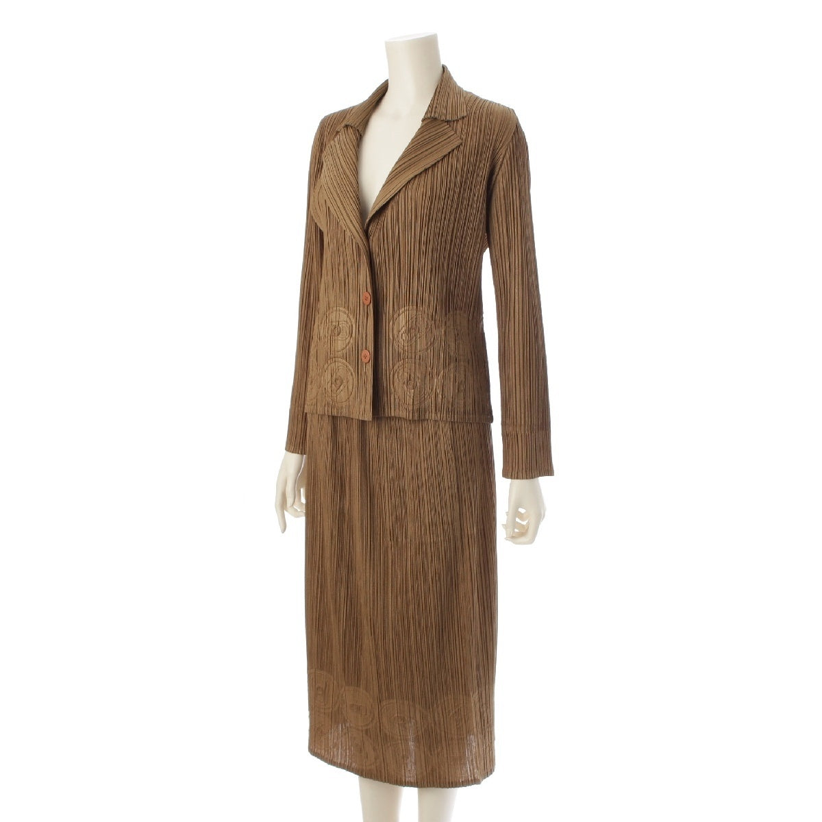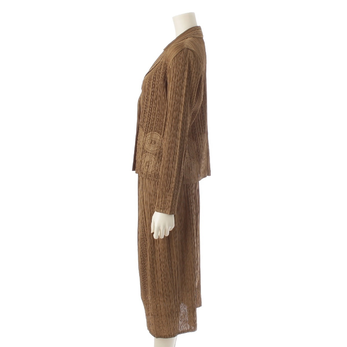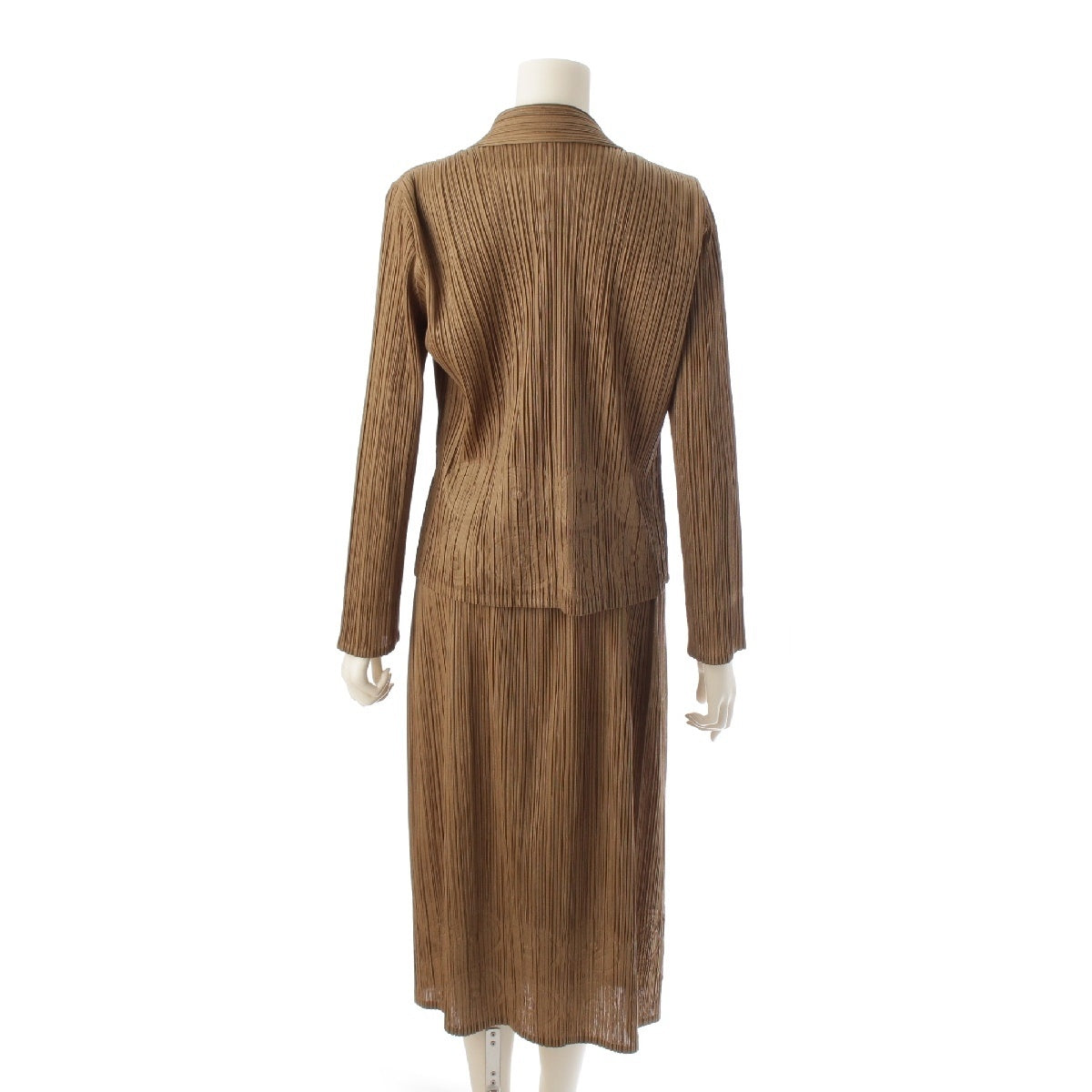 PLEATS PLEASE ISSEY Pull tab embossed Skirt setup Jackets Suits PP83-JD722 PP83-JG725 Brown 3