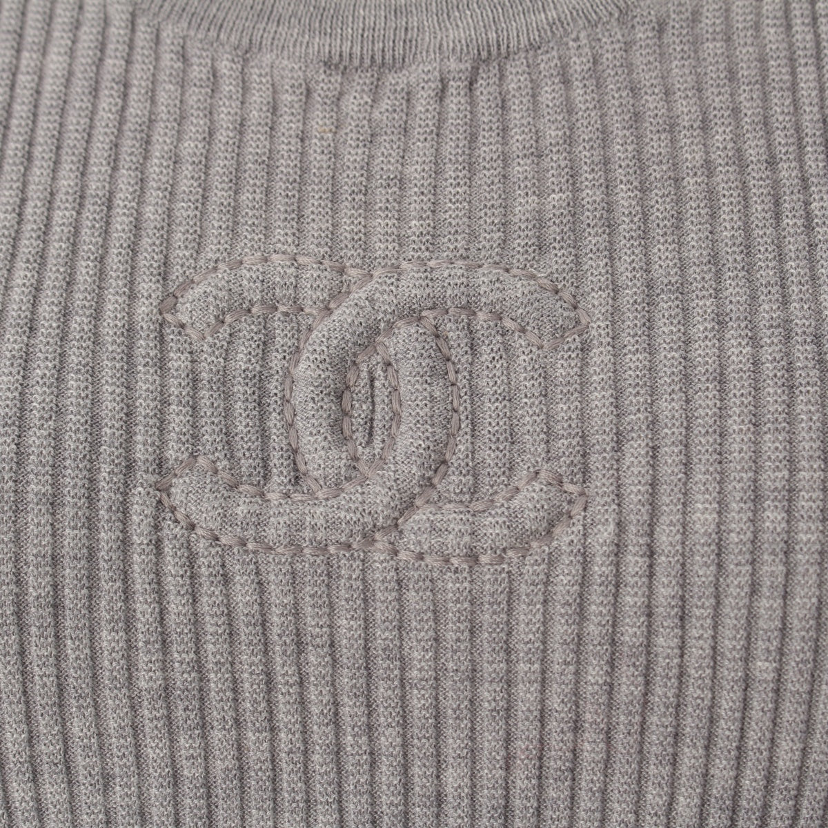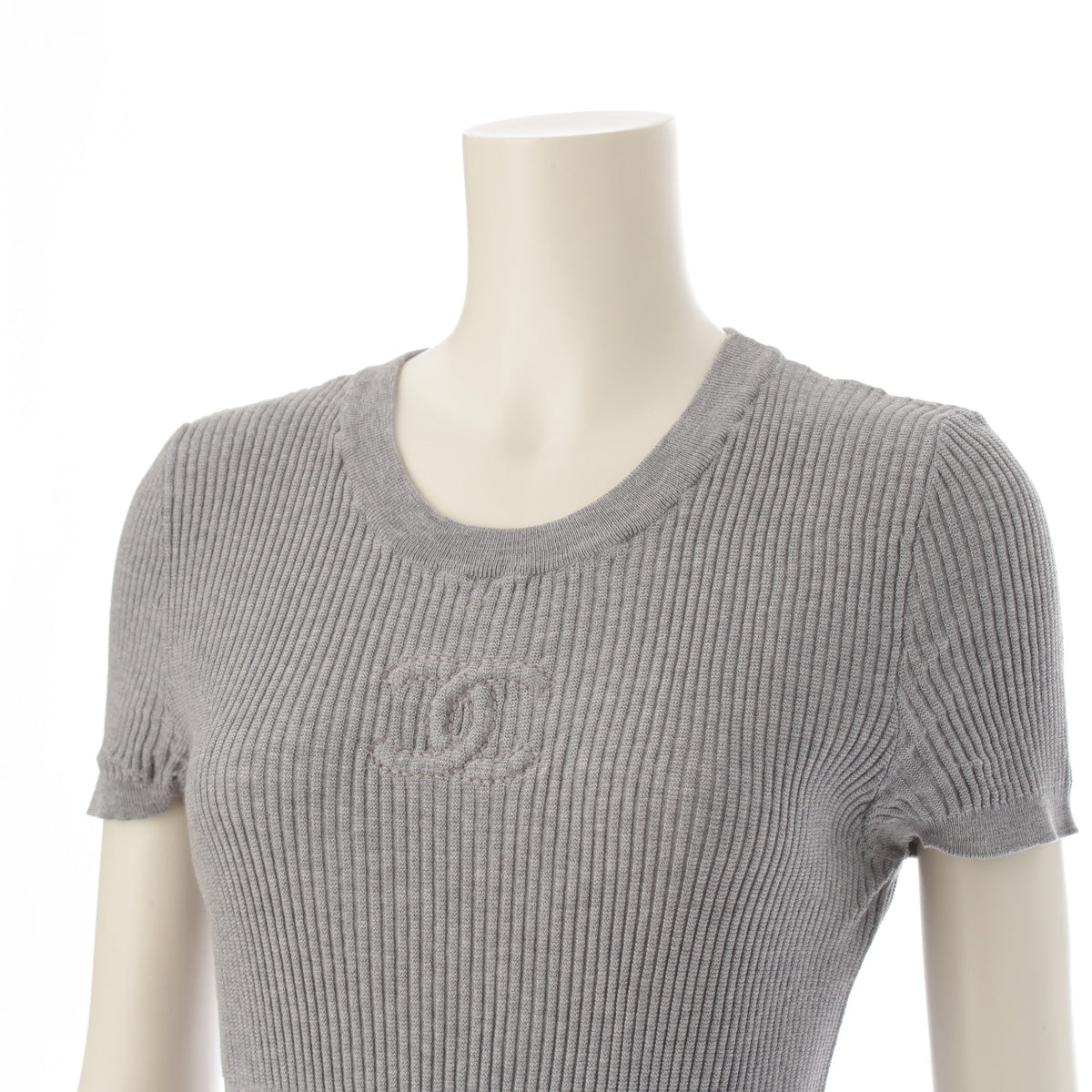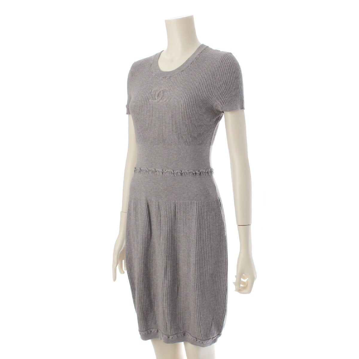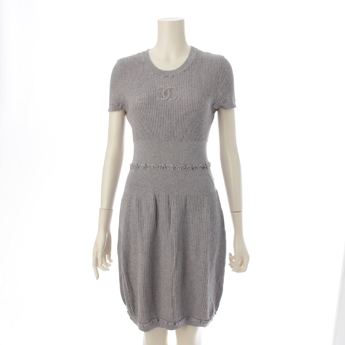CHANEL 09P cotton COCO Mark Rib Knit one piece P35348 gray 44