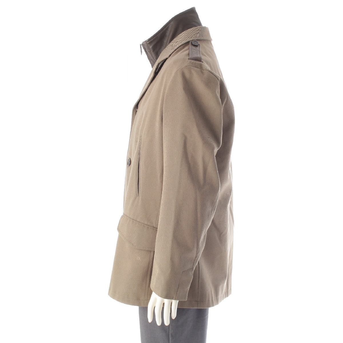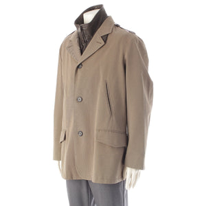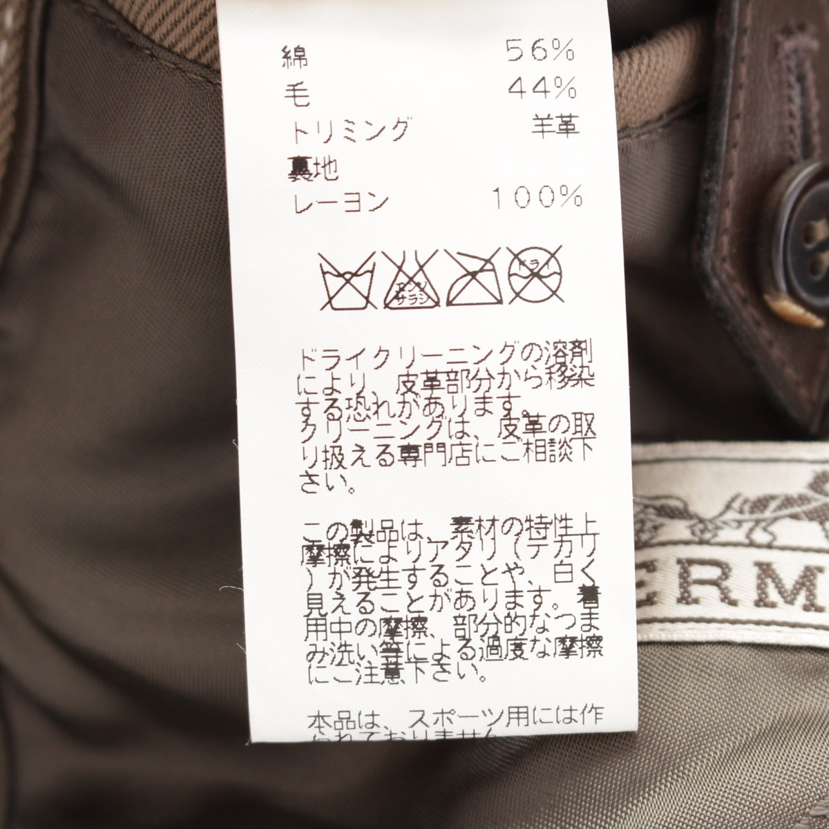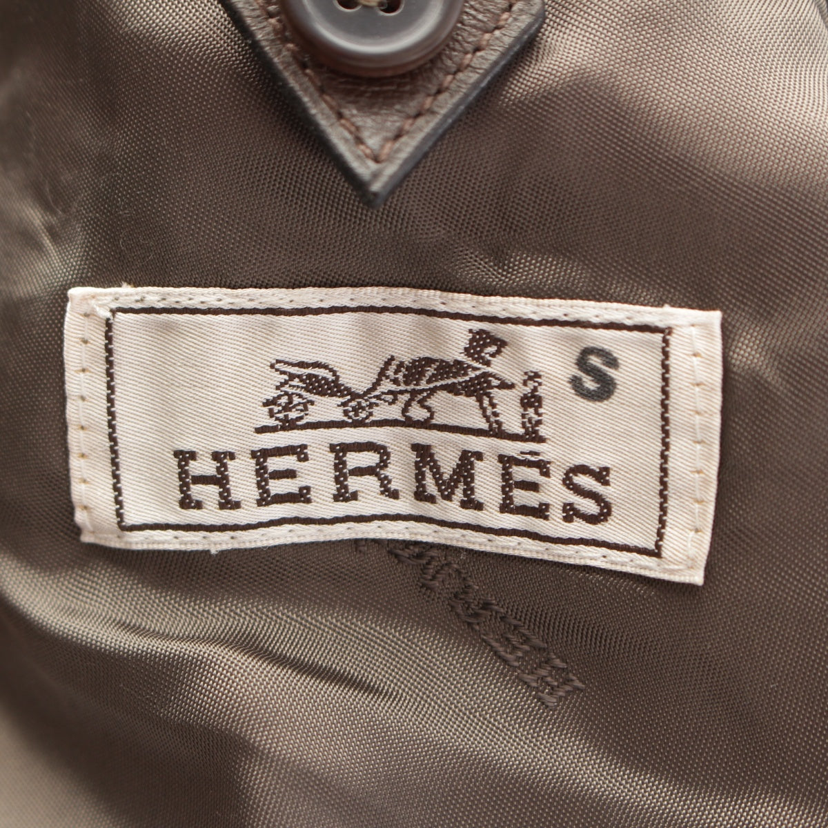 HERMES Cotton x wool Leather liner tailored jacket outer khaki 54