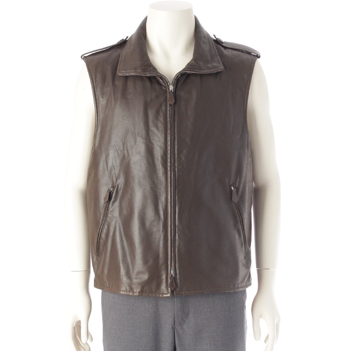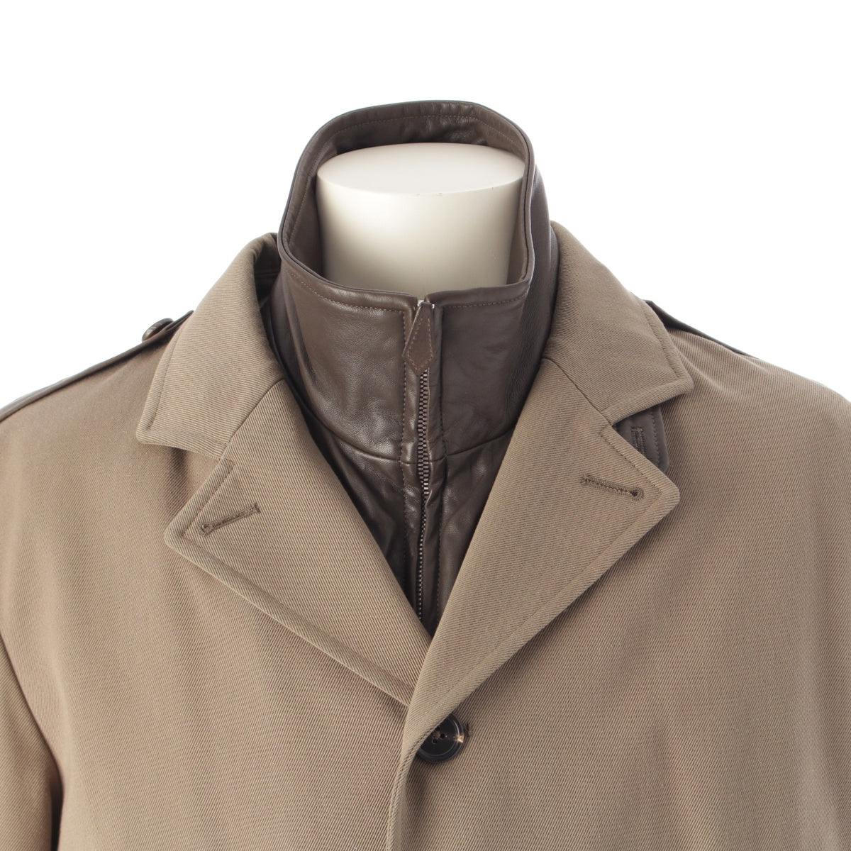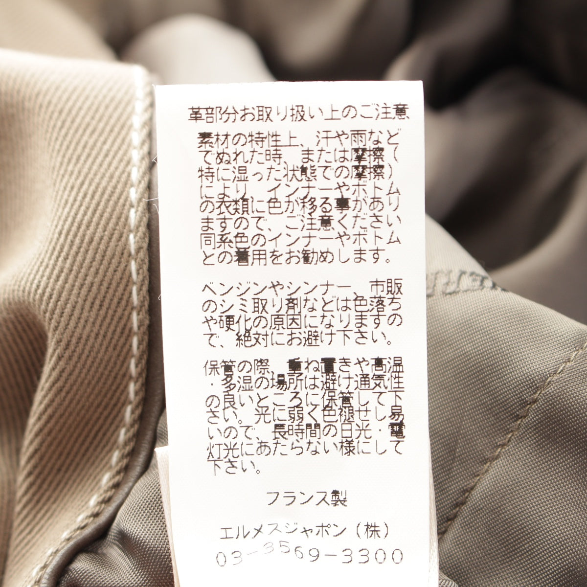 HERMES Cotton x wool Leather liner tailored jacket outer khaki 54