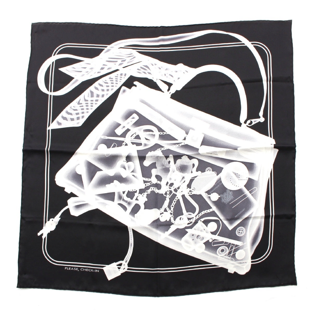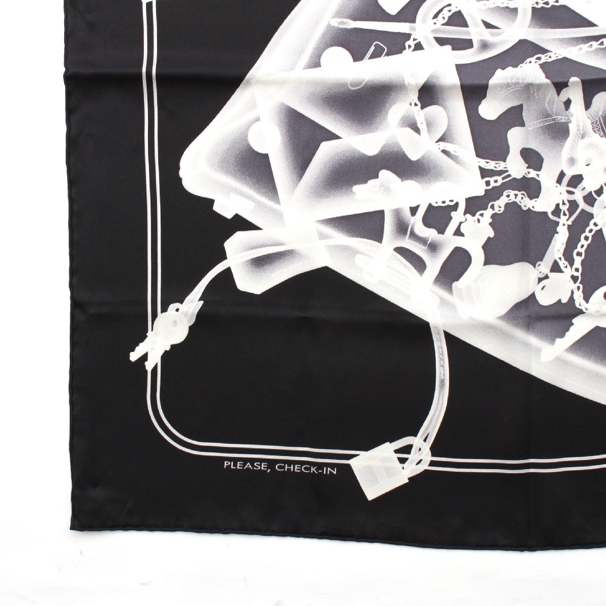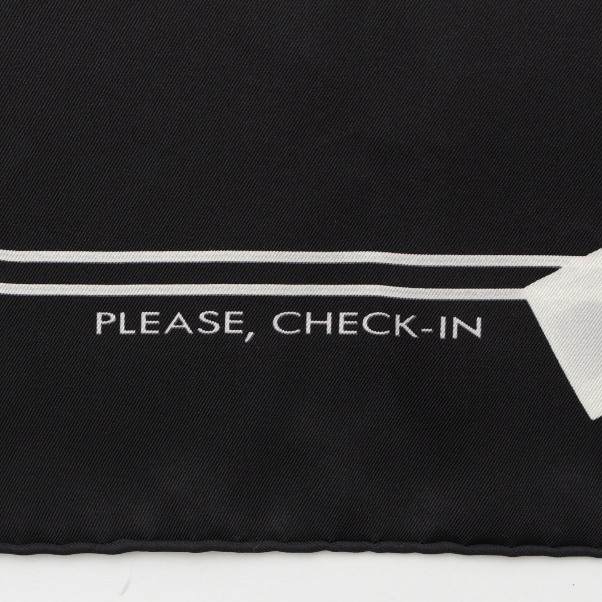 HERMES Carre 70 silk PLEASE CHECK-IN scarf Bag motif Black x white