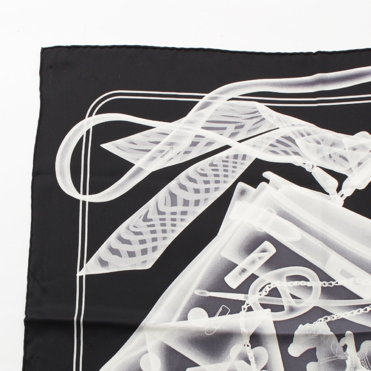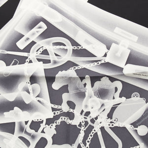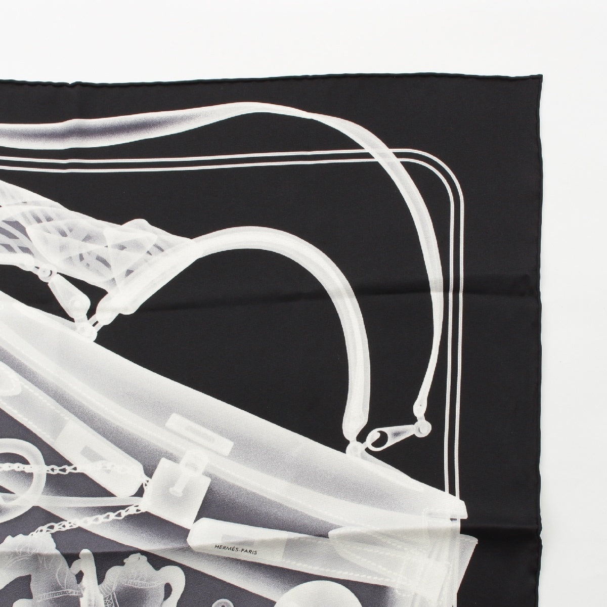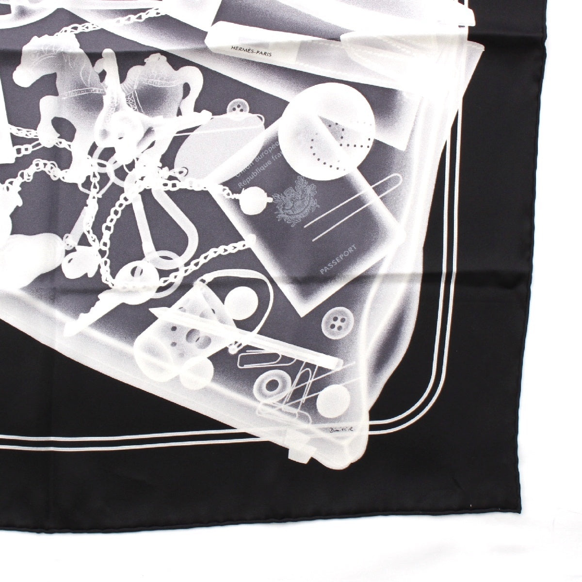 HERMES Carre 70 silk PLEASE CHECK-IN scarf Bag motif Black x white