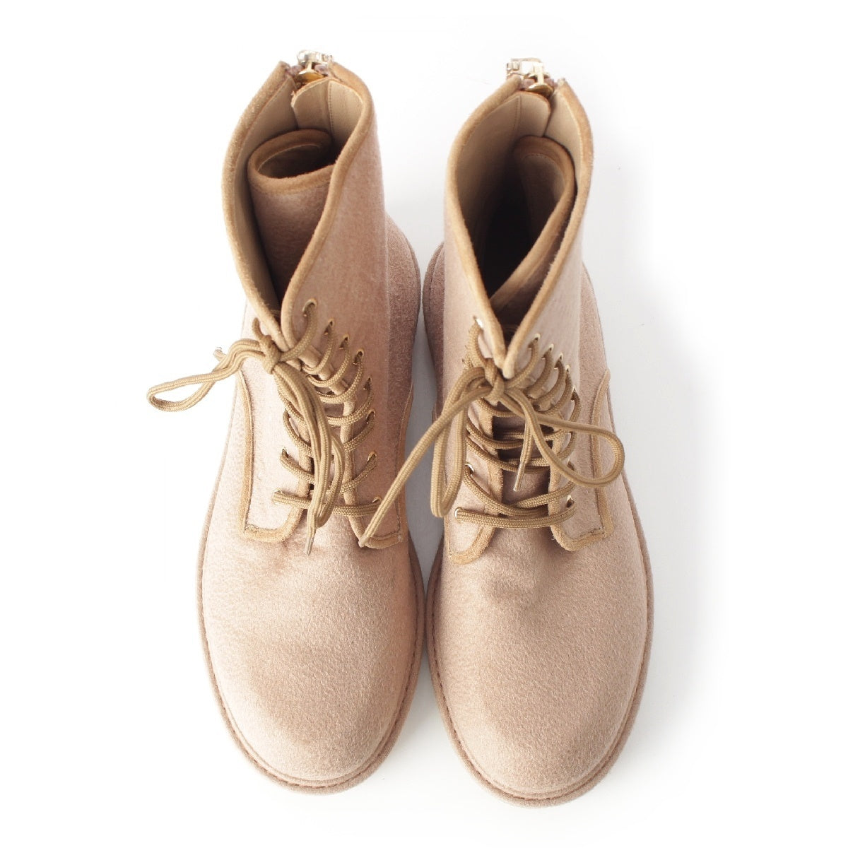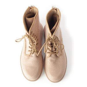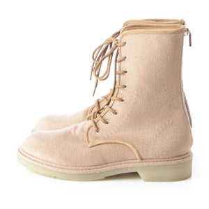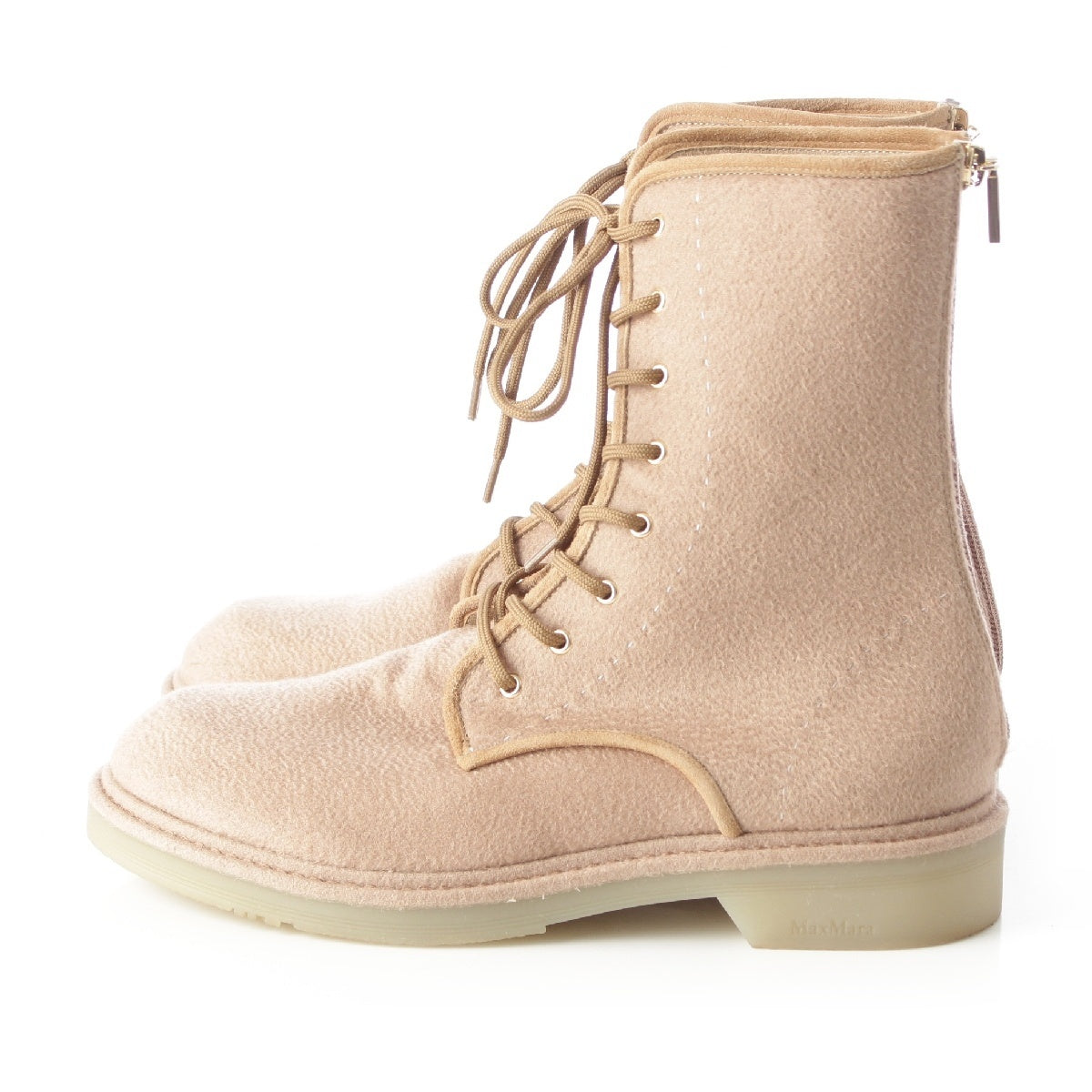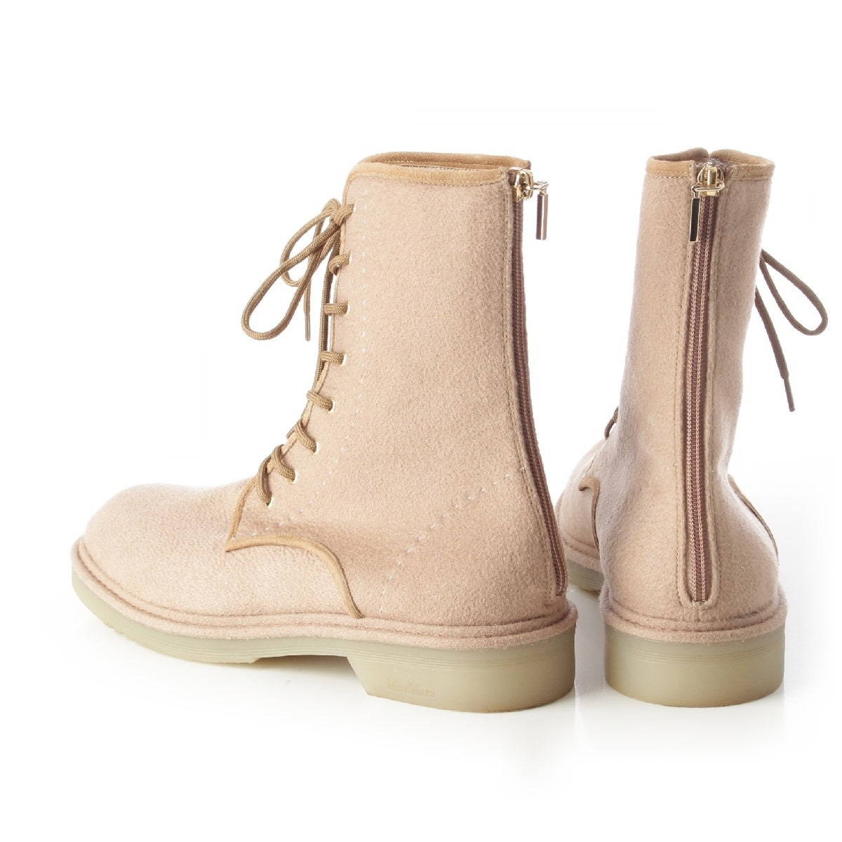 MAX MARA leather Crepe sole back zip lace-up boots beige 39