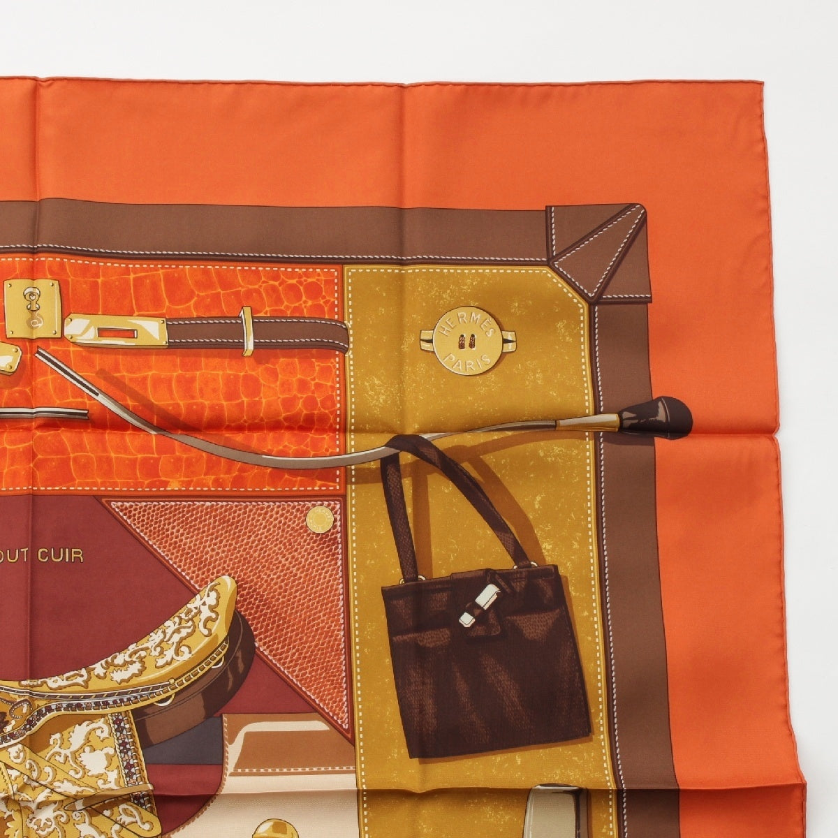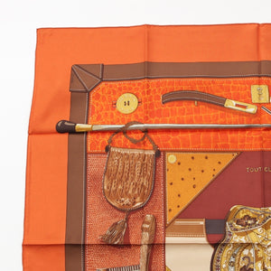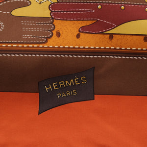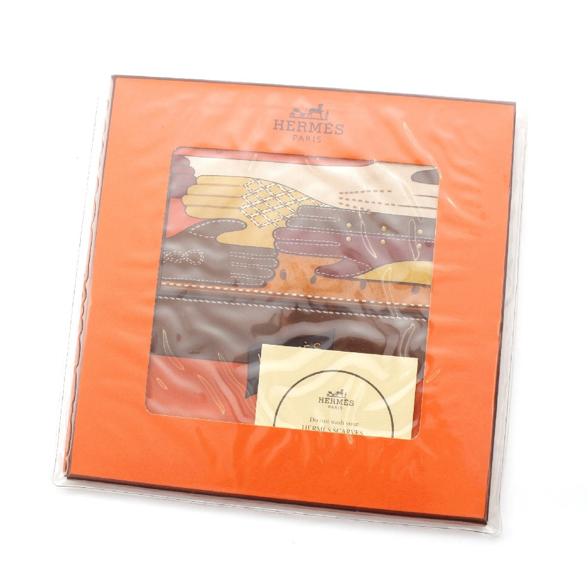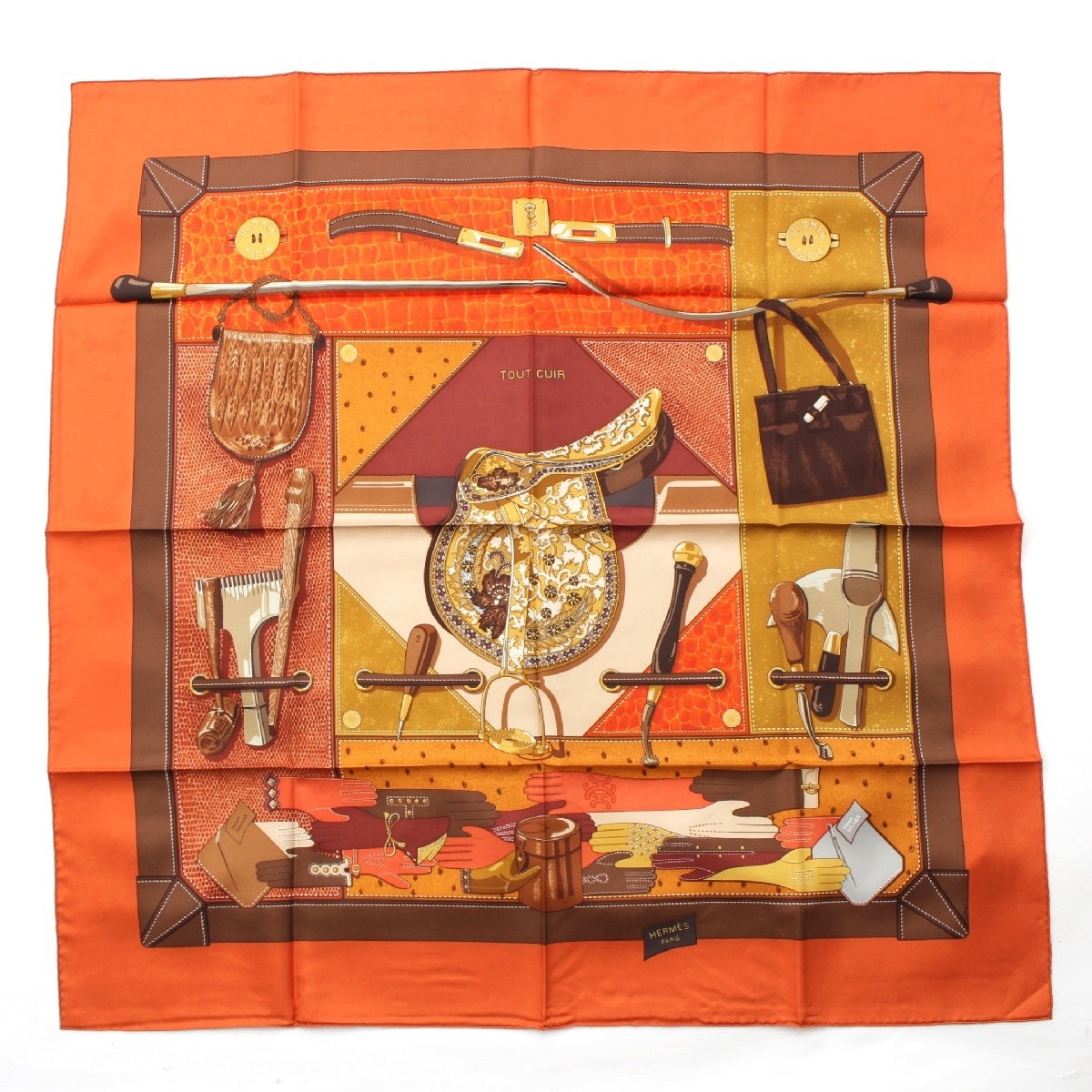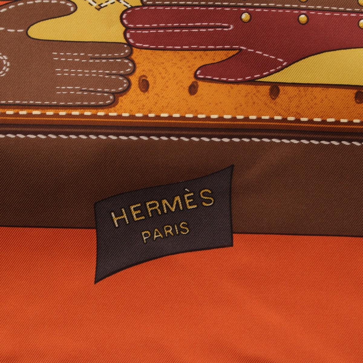 HERMES Calle 90 silk TOUT CUIR all leather scarf Bag with glove motif Orange brown