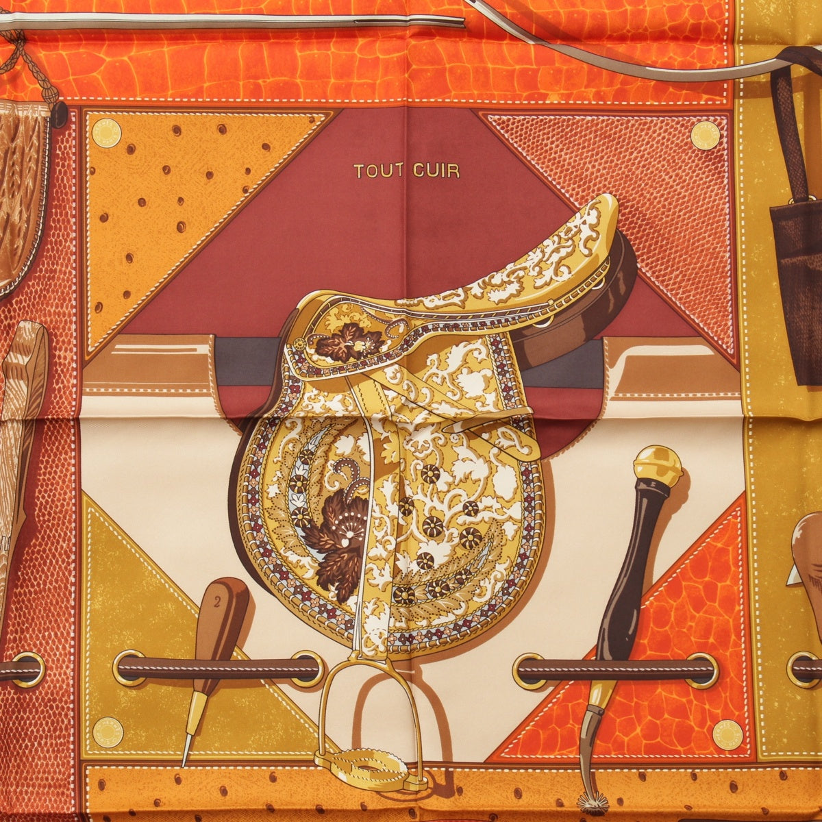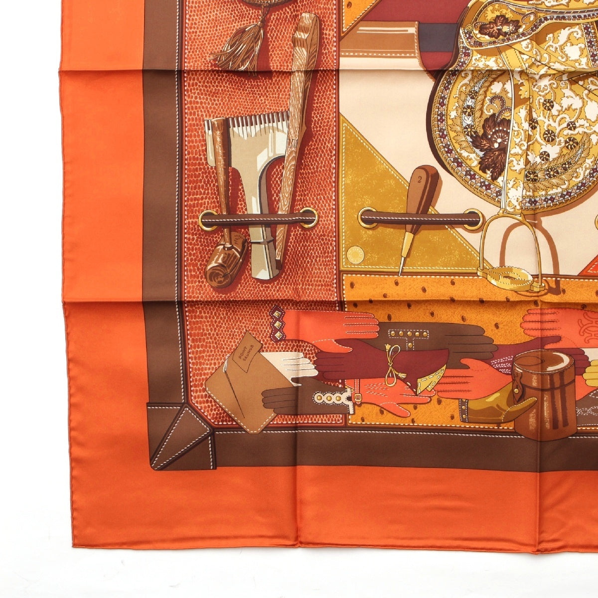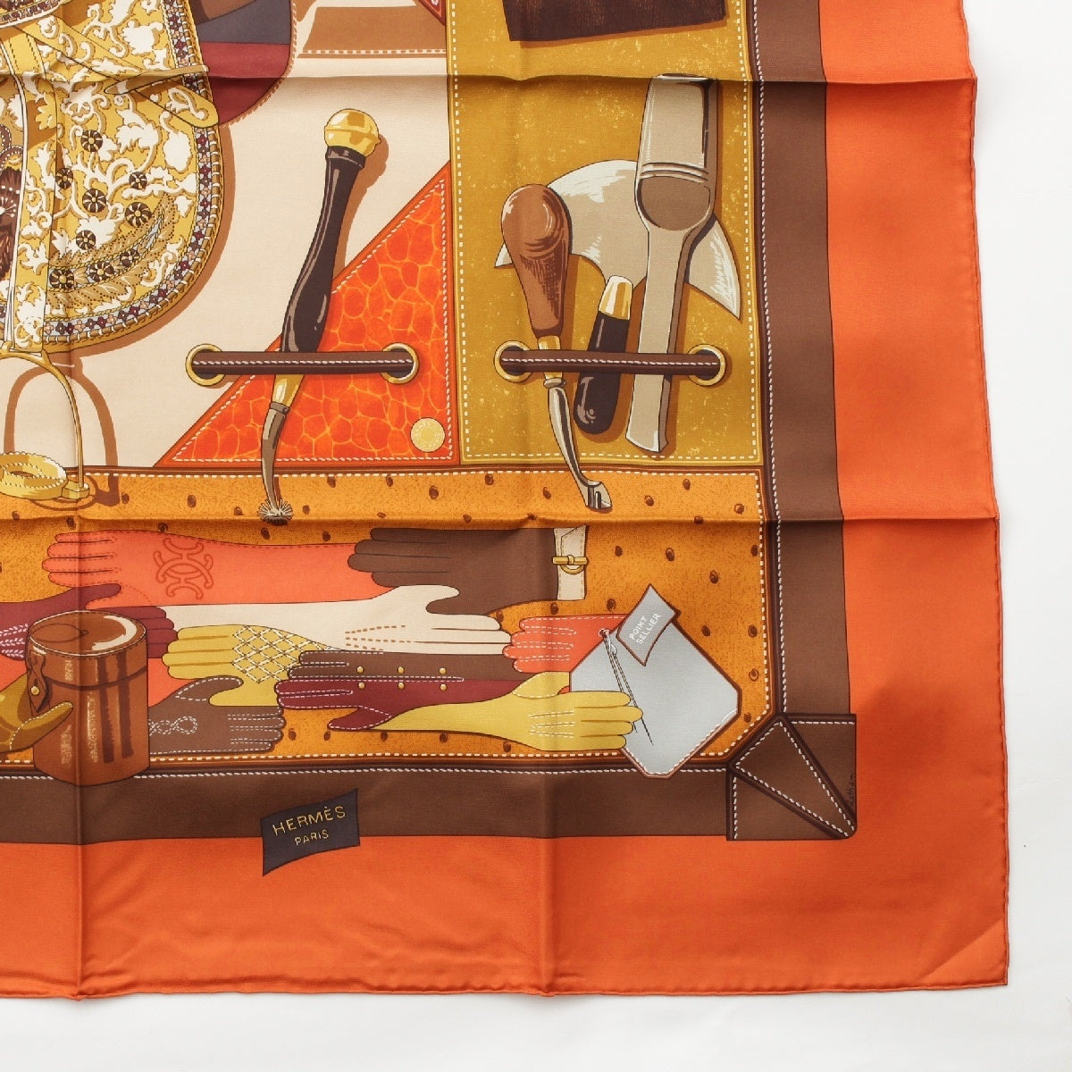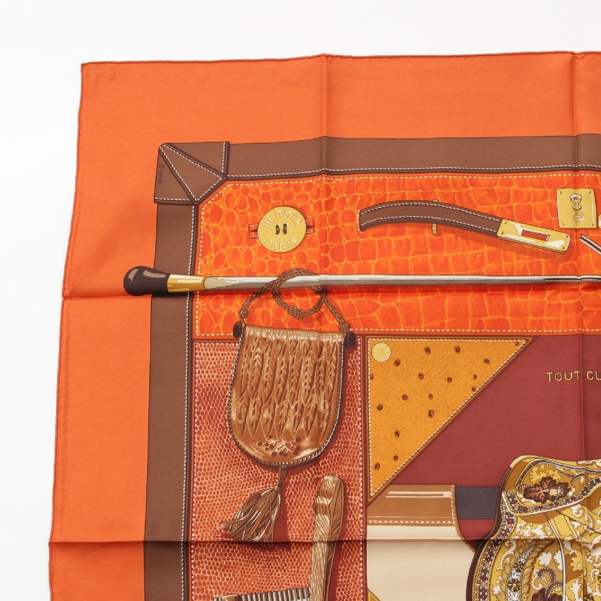 HERMES Calle 90 silk TOUT CUIR all leather scarf Bag with glove motif Orange brown