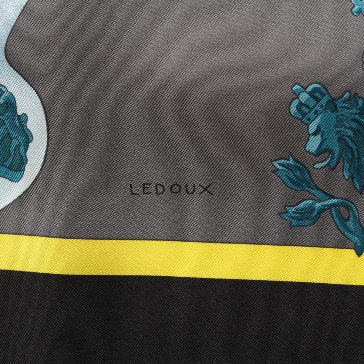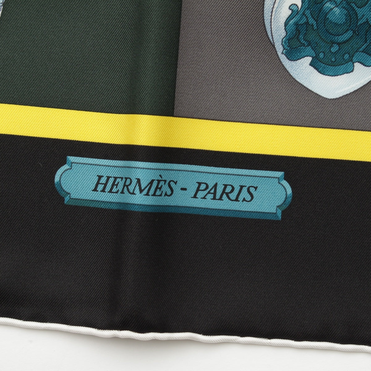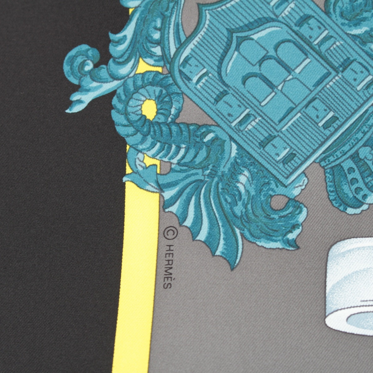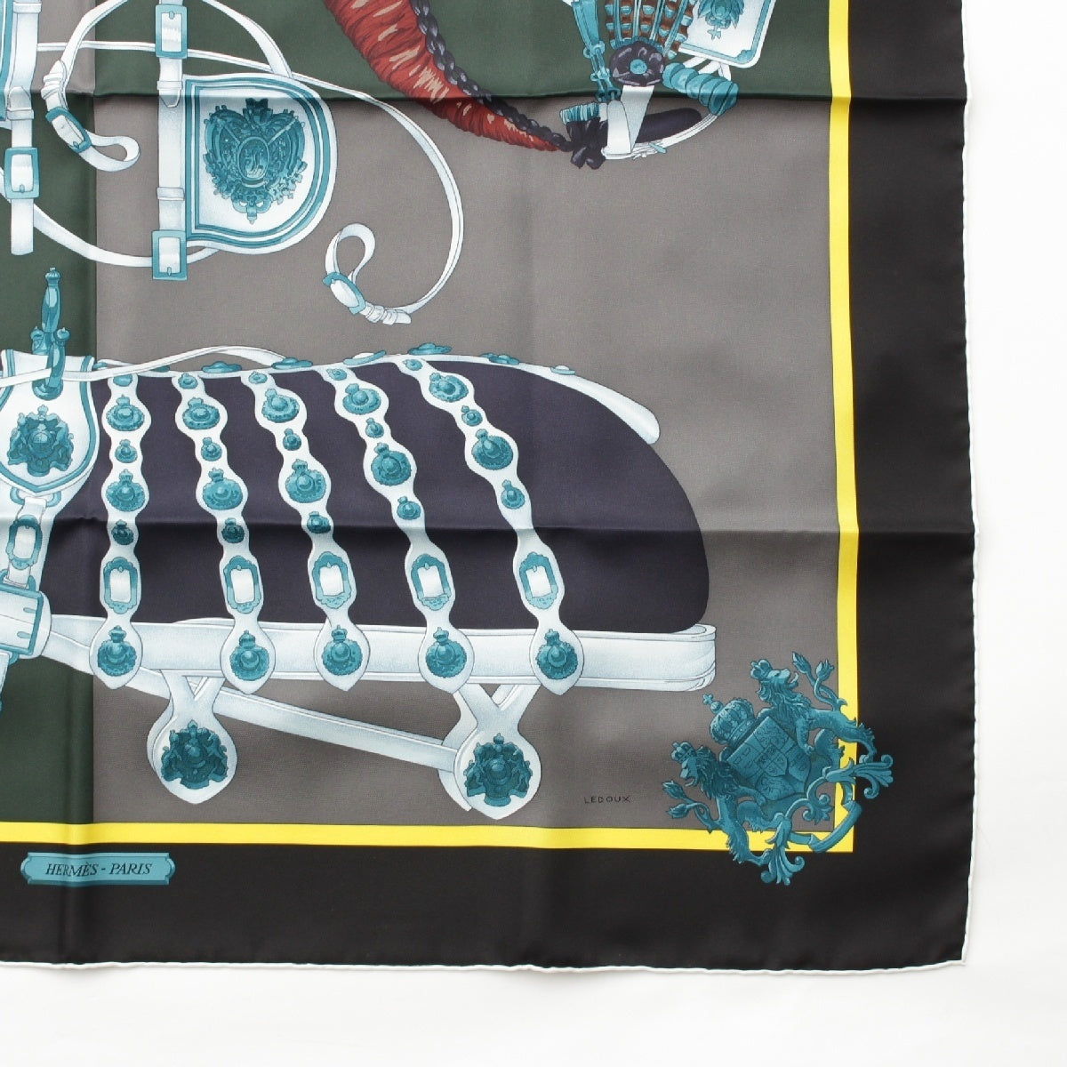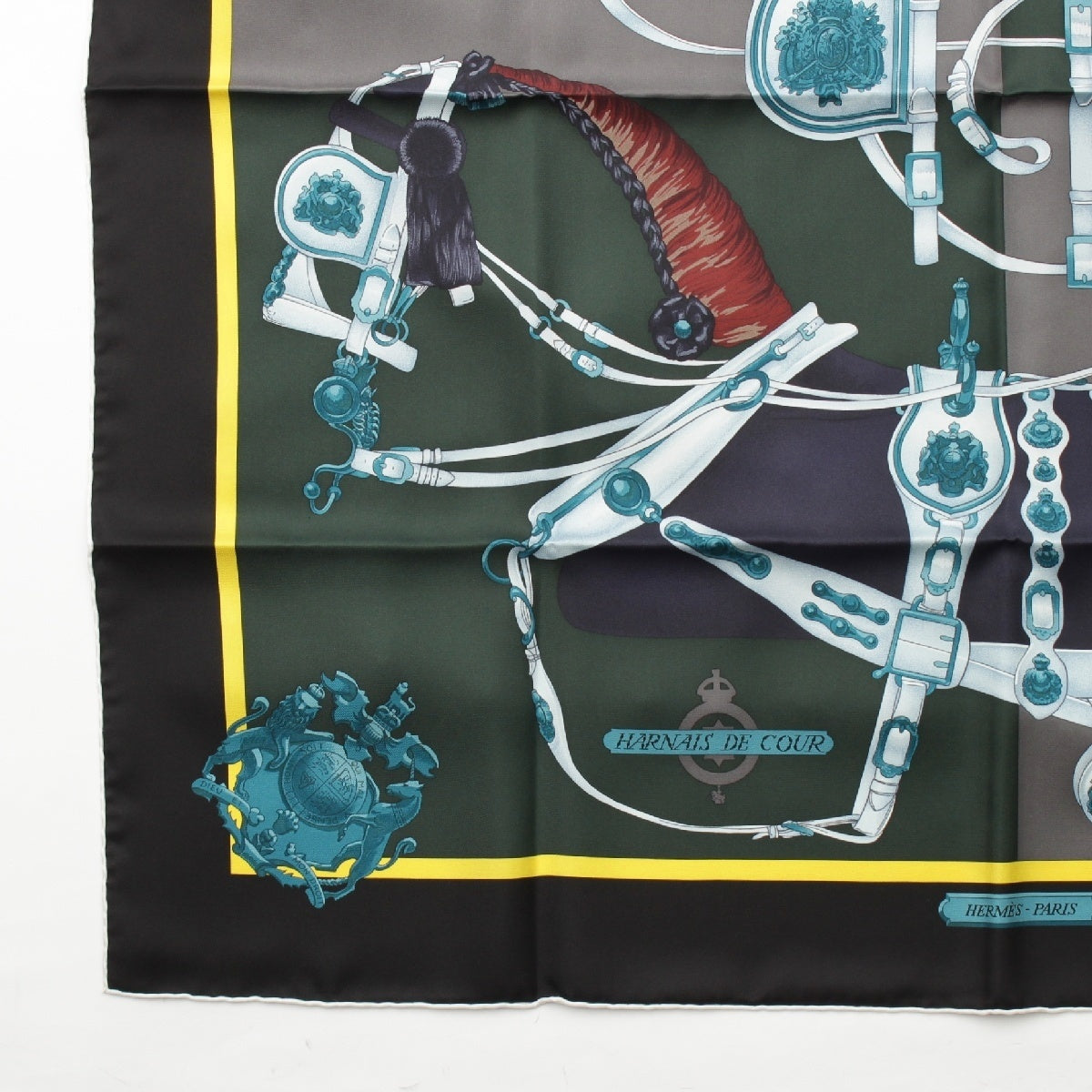 HERMES Calle 90 silk HARNAIS DE COUR Court harness scarf emblem Black x blue