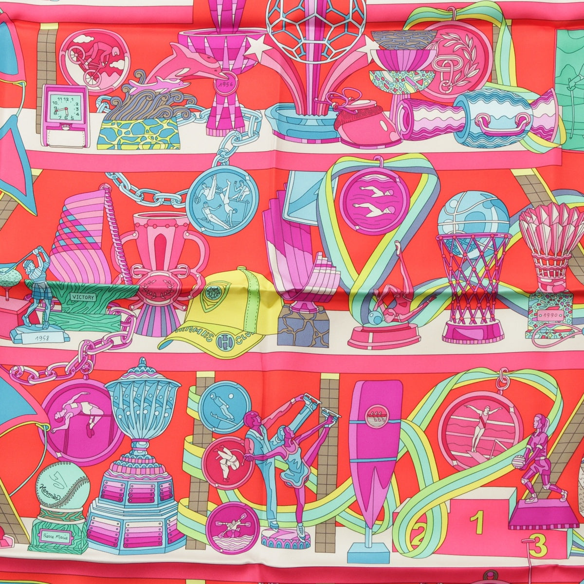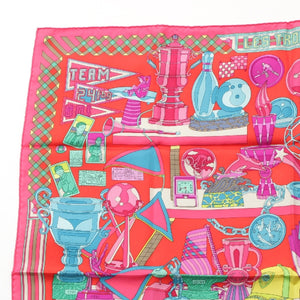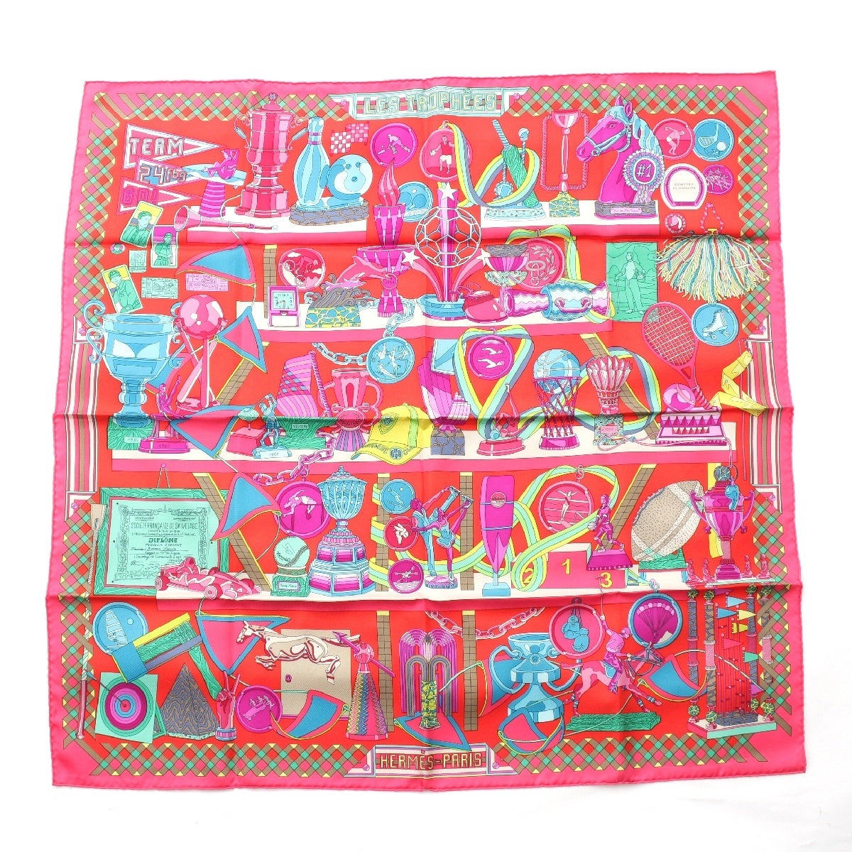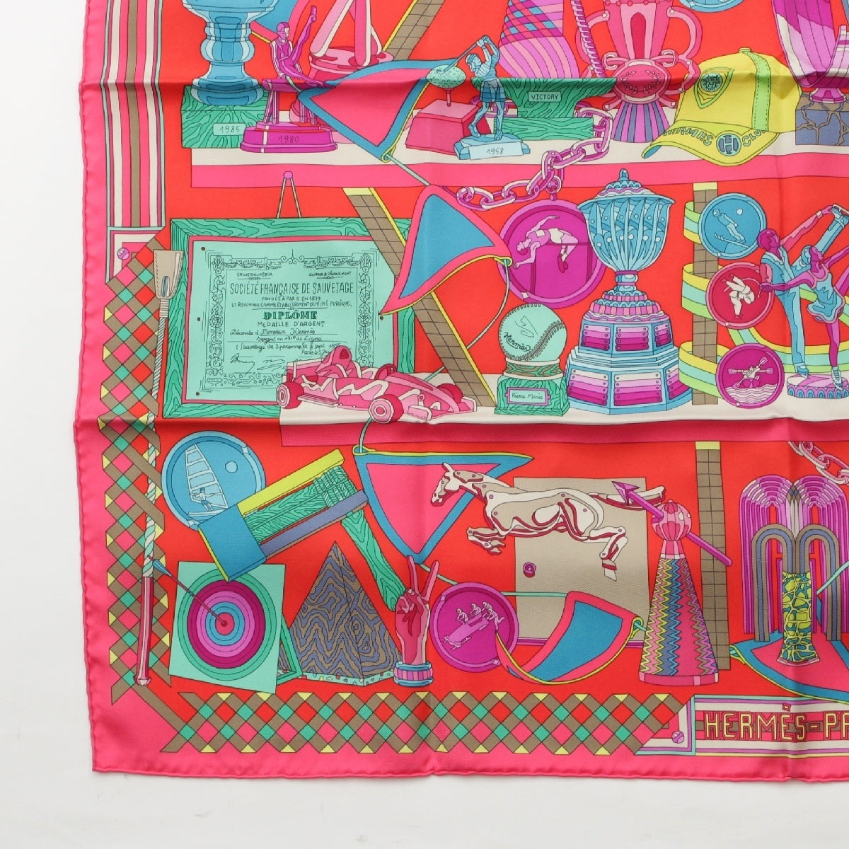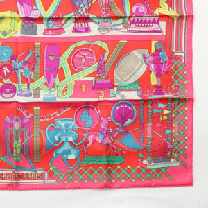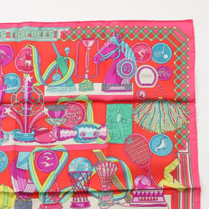 HERMES silk Carre90 LES TROPHEES trophy scarf pink