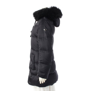 PRADA 20 years Triangle logo, double zip, fur down coat outer 29P117 Navy 38