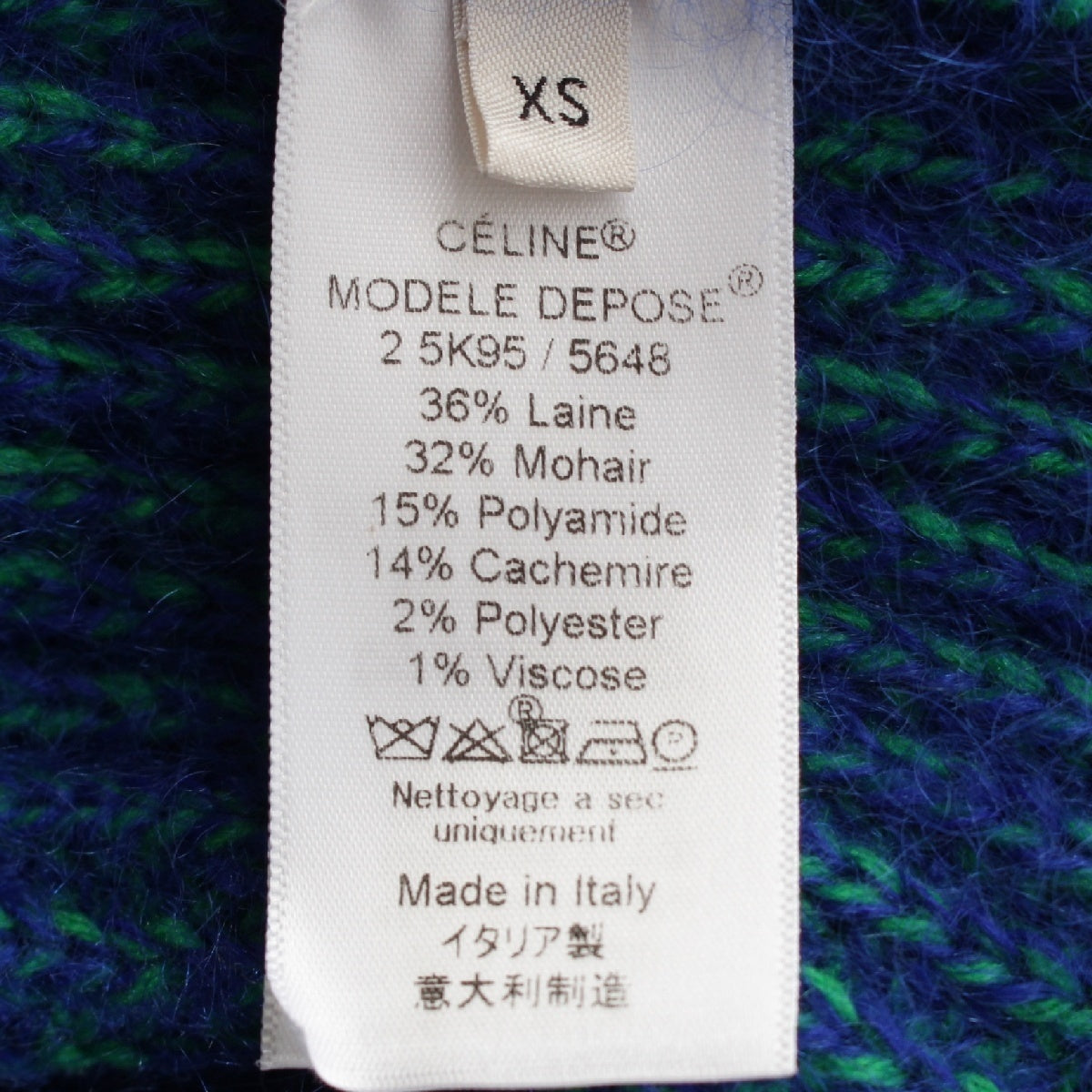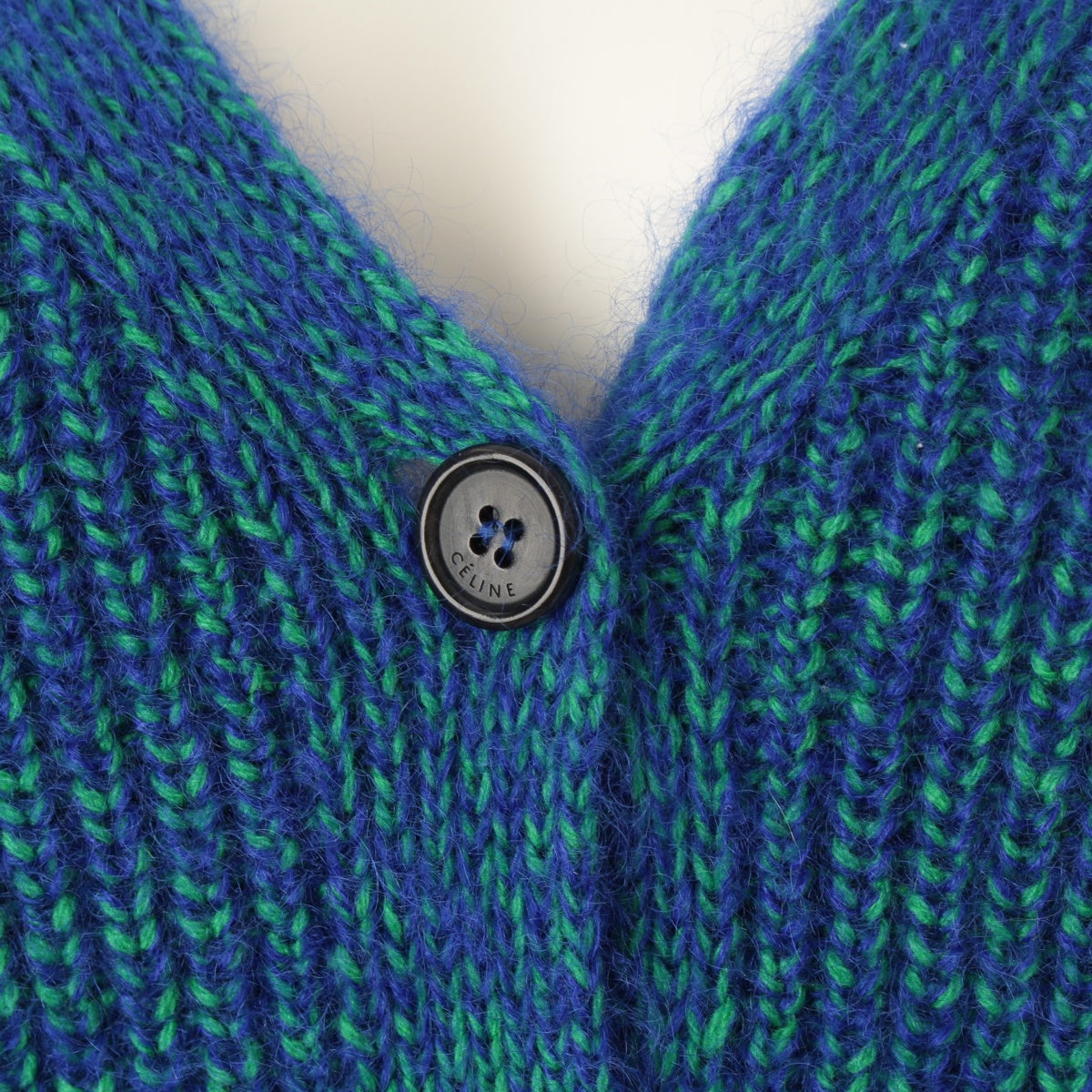CELINE Wool mohair Phoebe sweater knit cardigan 2 5K95 Blue green XS