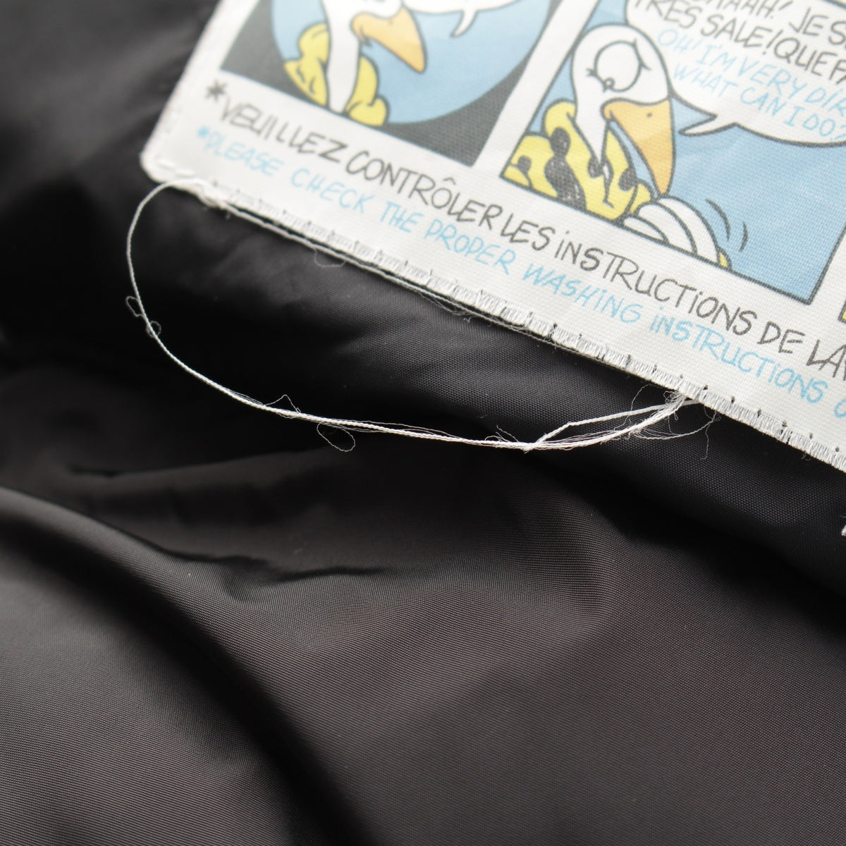 onNeckline, hood and pocketsStain、ontagSewing unravel、onsliderHardness、