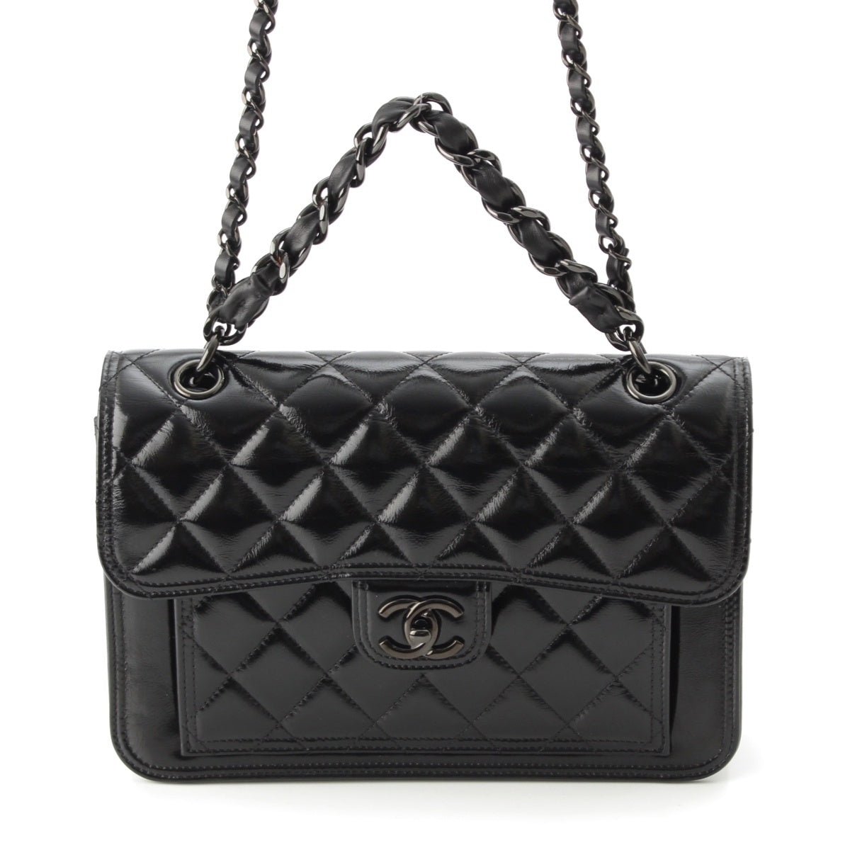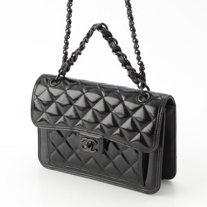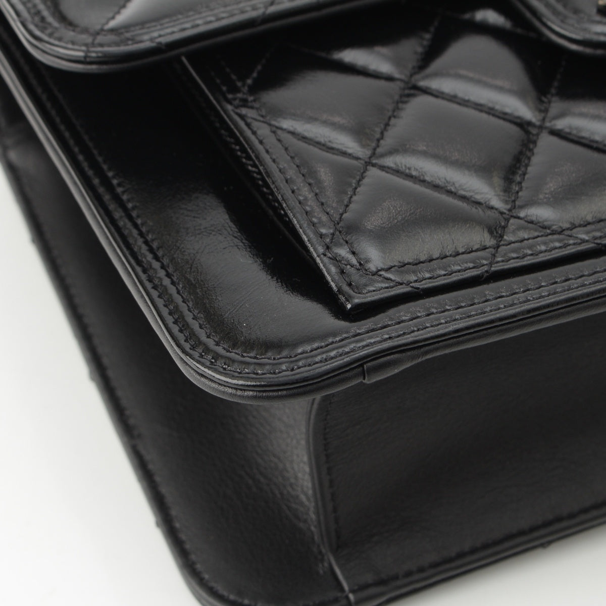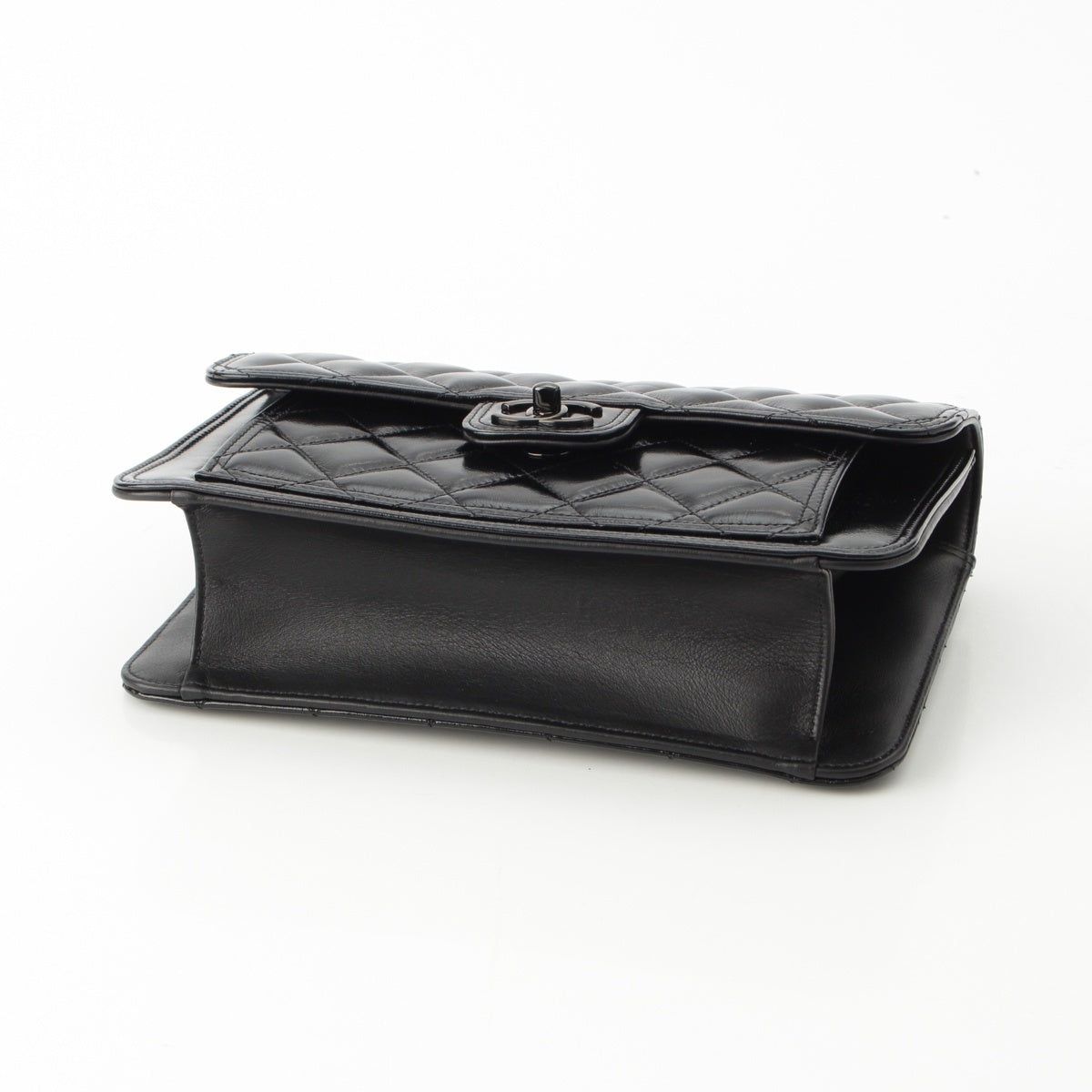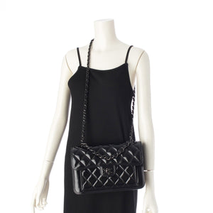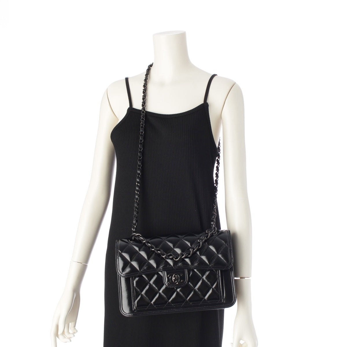 CHANEL Matrasse shiny calf leather COCO Mark WChain Shoulder Bag 2WAY So Black