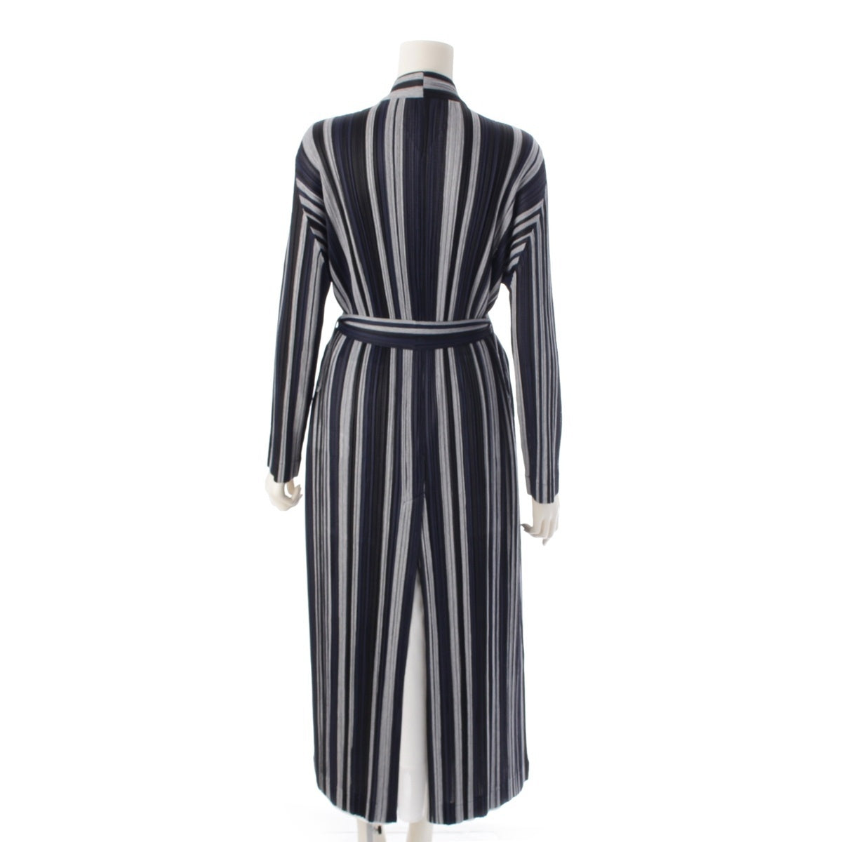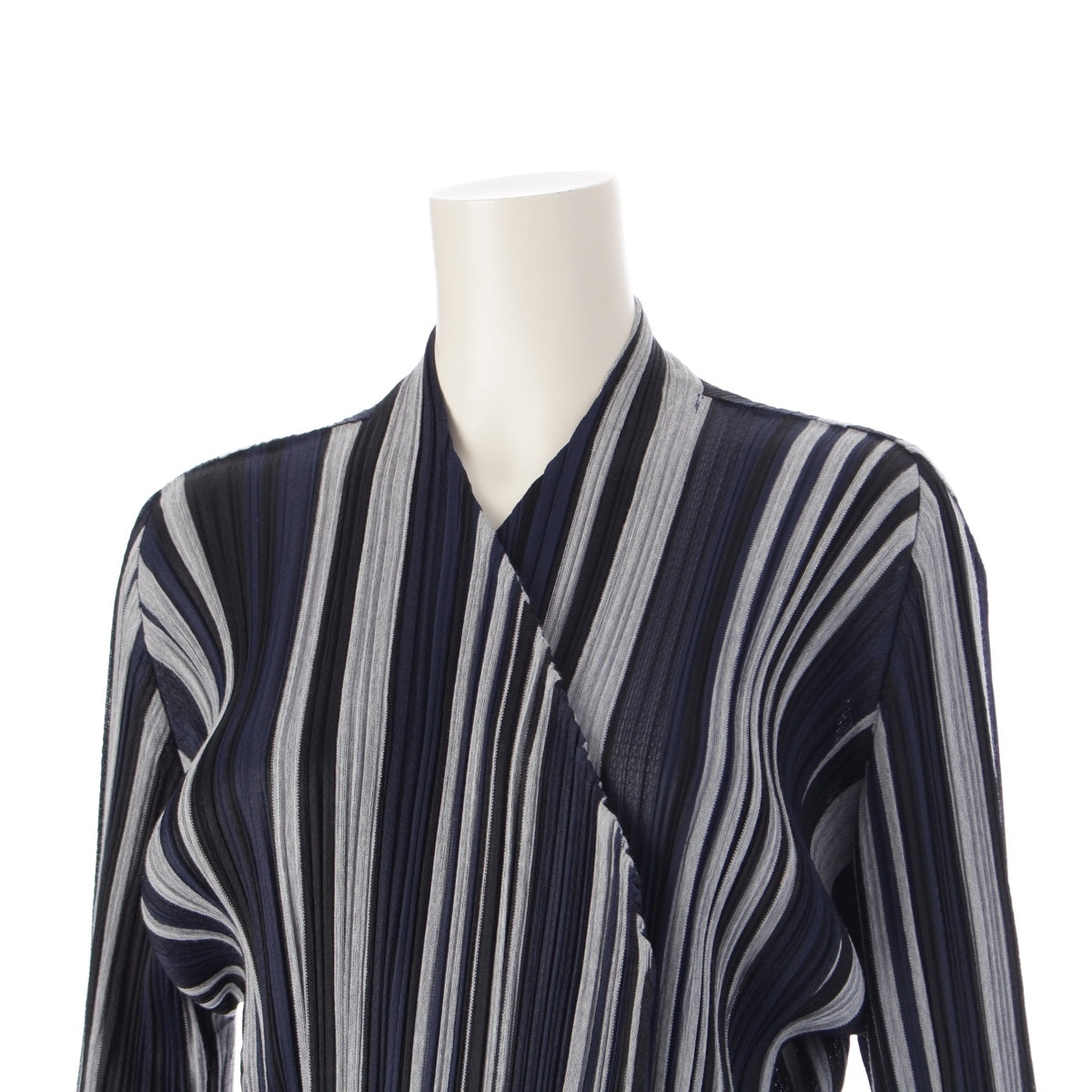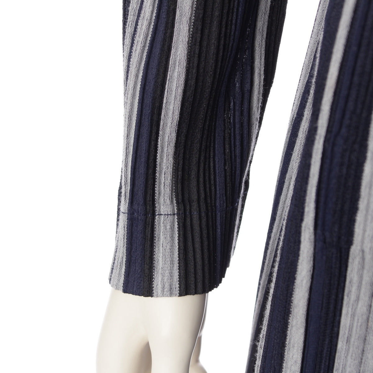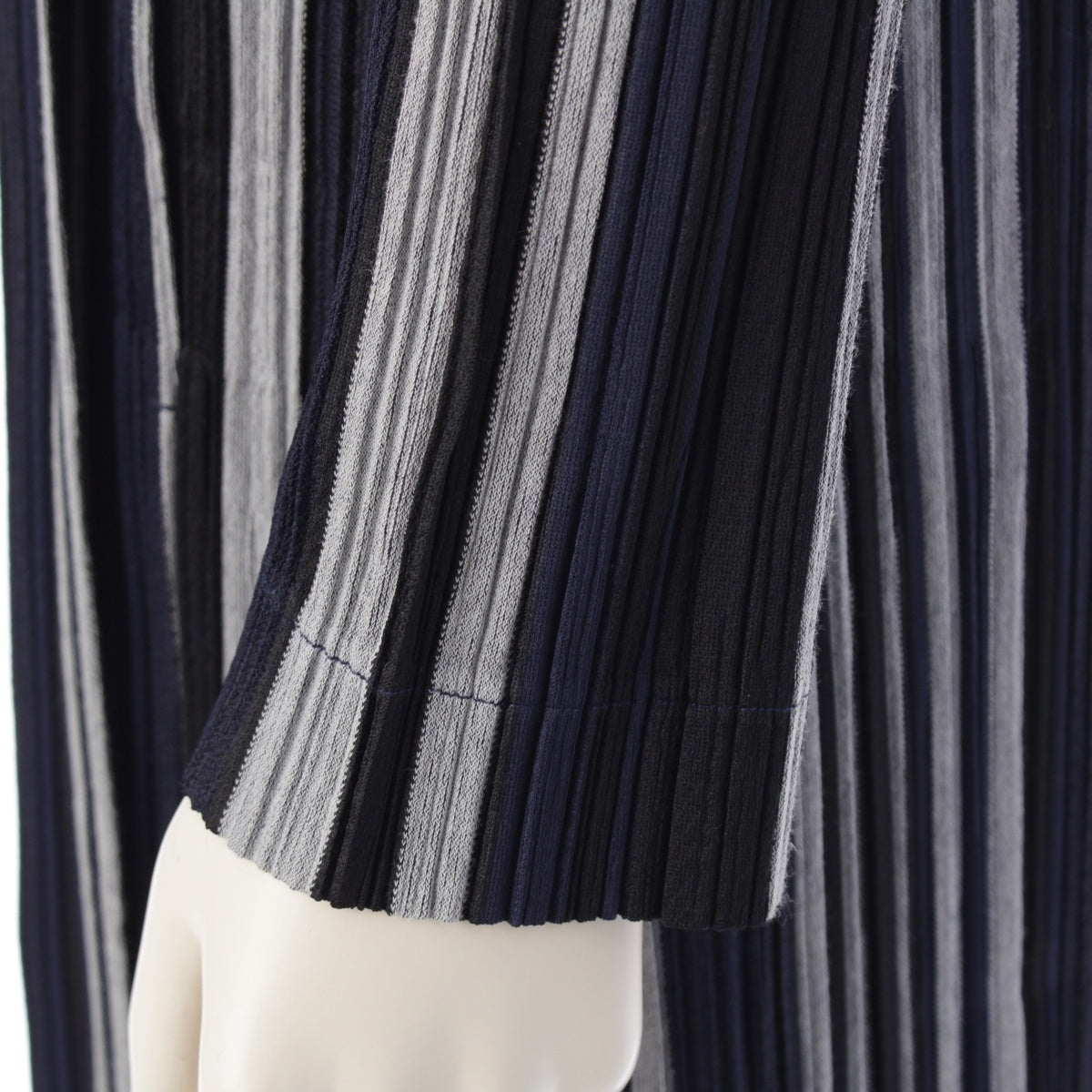 PLEATS PLEASE ISSEY Striped long Jacket coat PP81-JA523 Navy gray black 4
