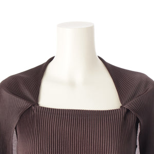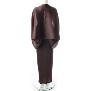 ISSEY MIYAKE Pleated Cape Docking Long one piece IM12FH060 Brown 3