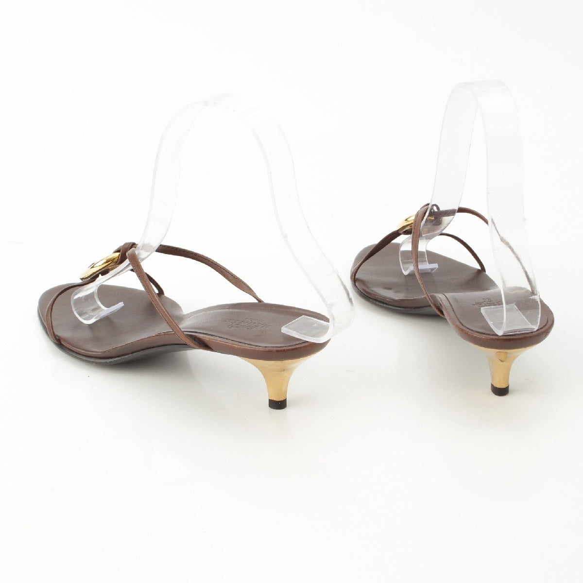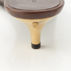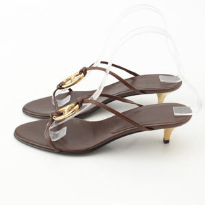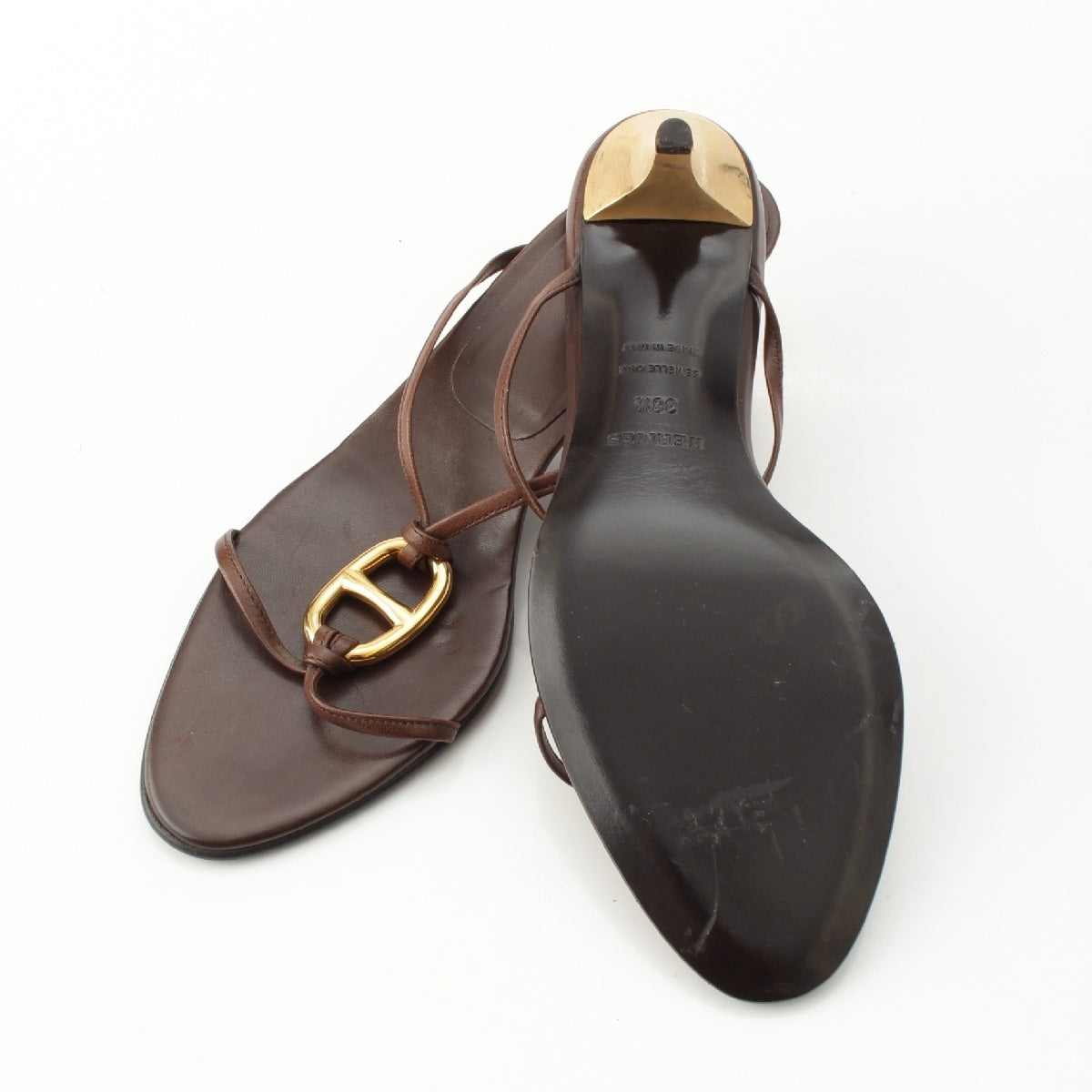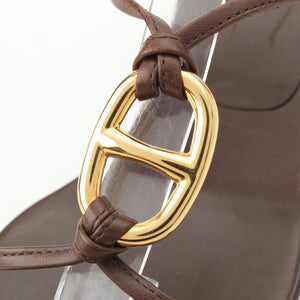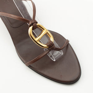 HERMES leather Gold Chaine d'Ancre heels Sandals Brown 38 1/2