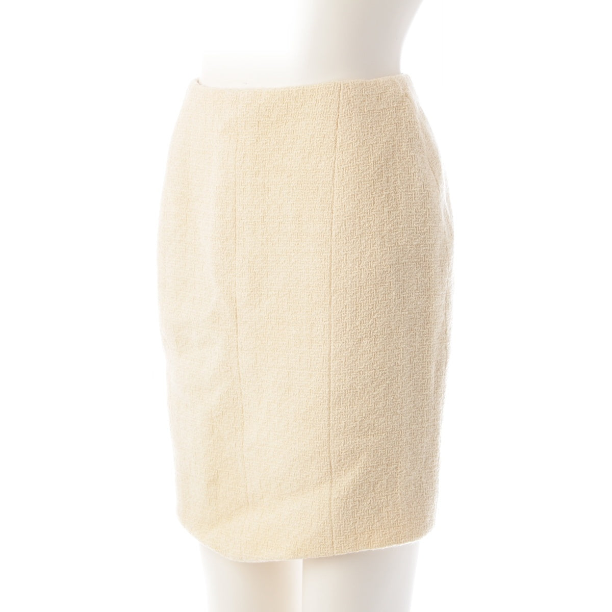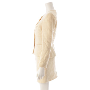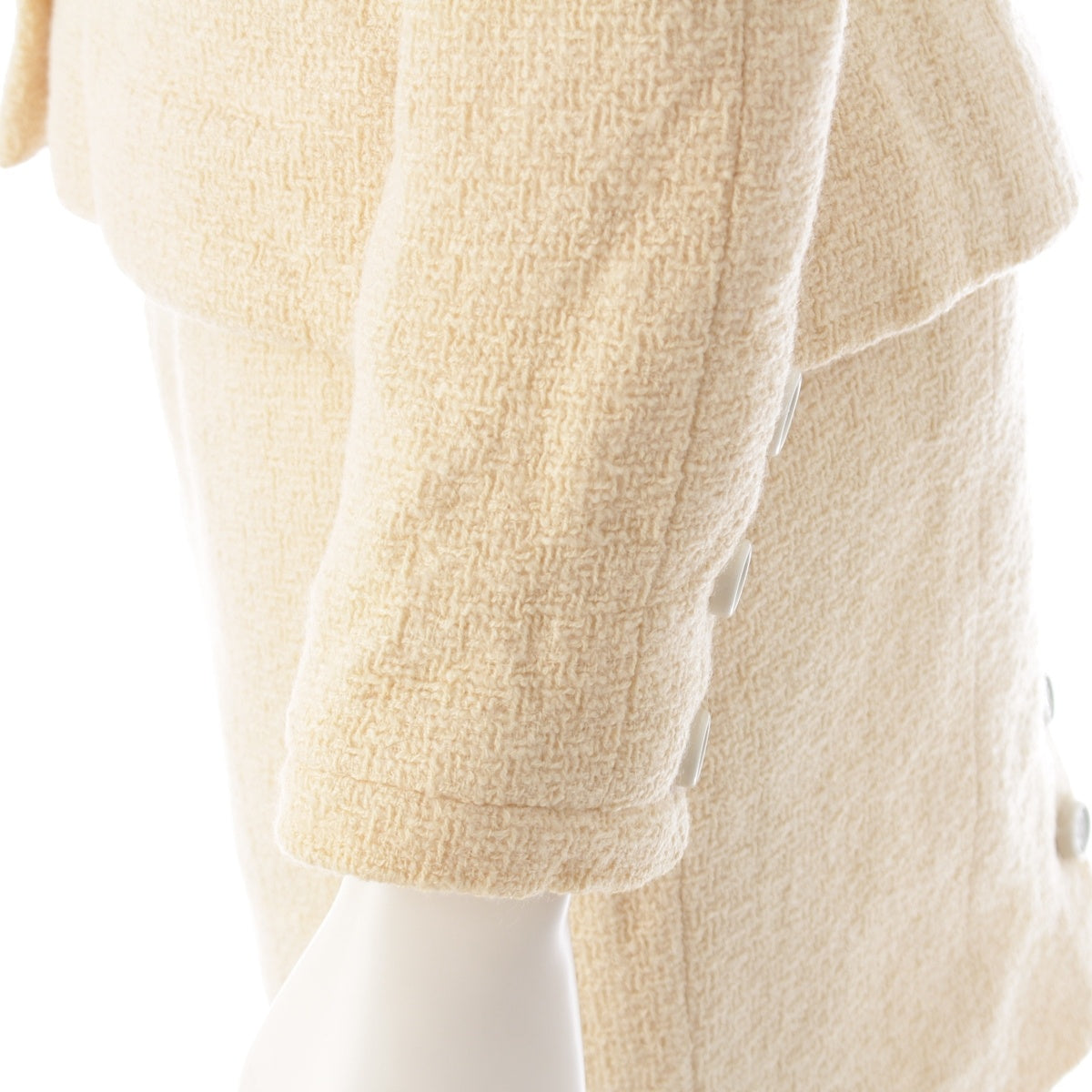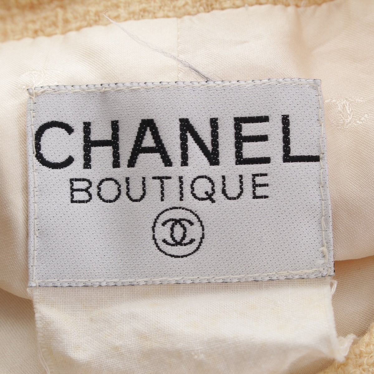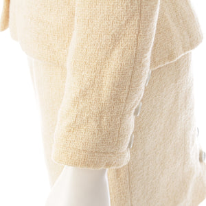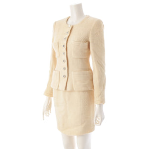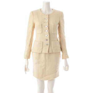 CHANEL wool Tweed COCO Button Mirror Collarless Jacket Skirt setup suit yellow