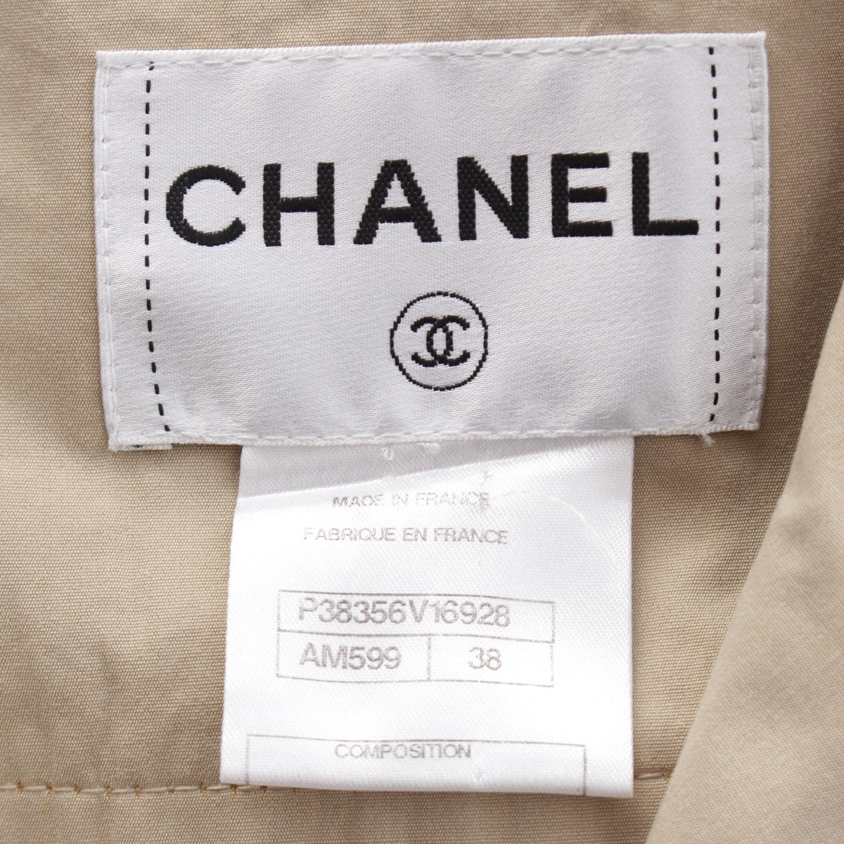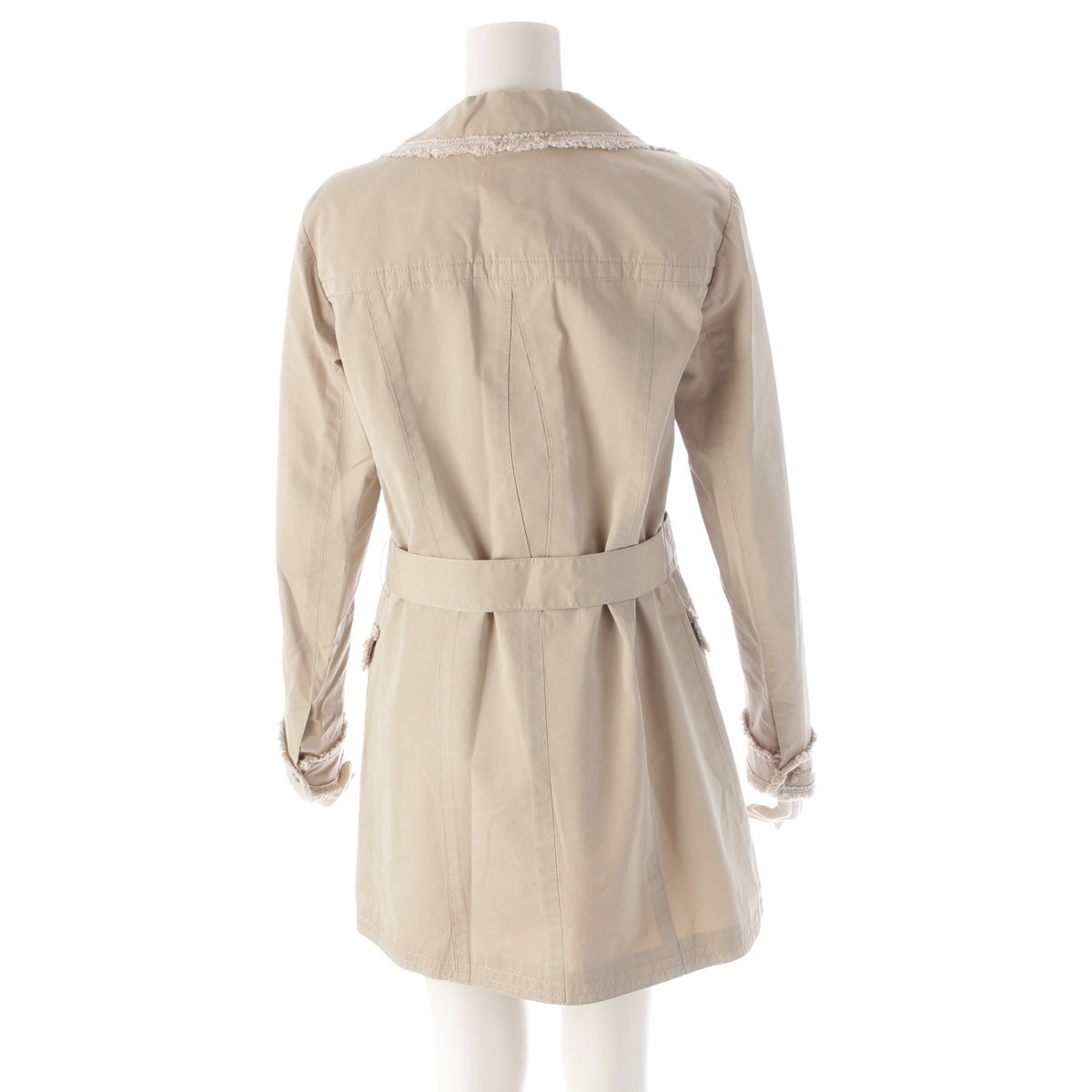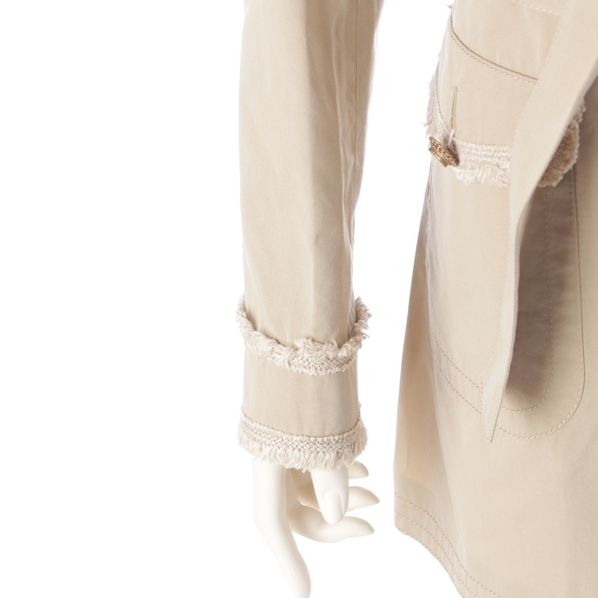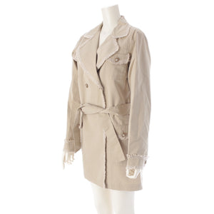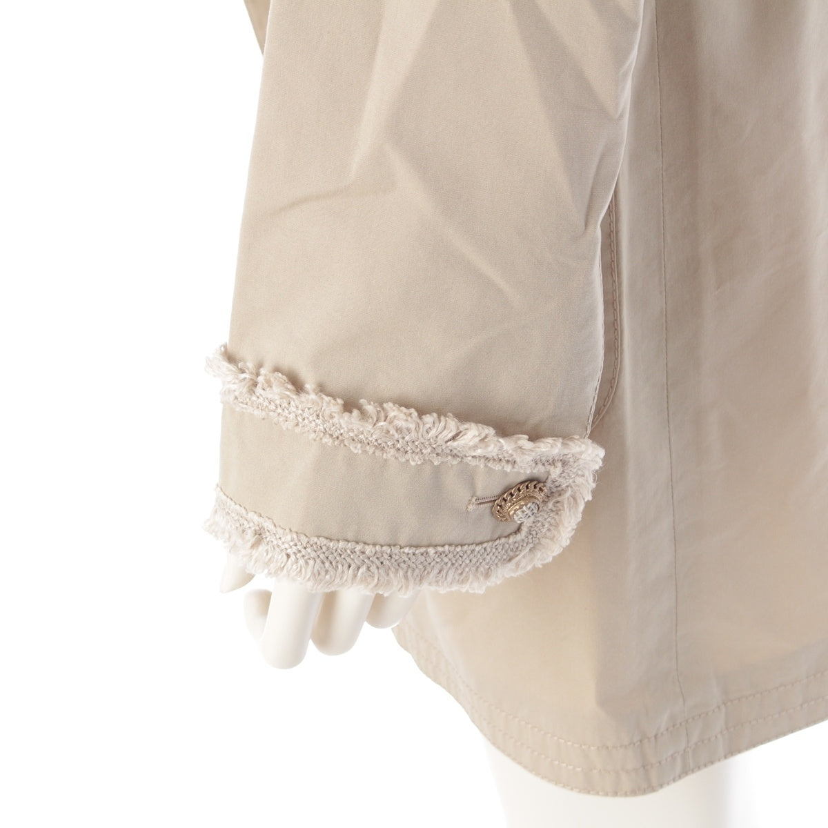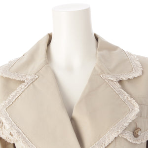 CHANEL silk cotton Tweed frill belt trench coat outer P38356 beige 38