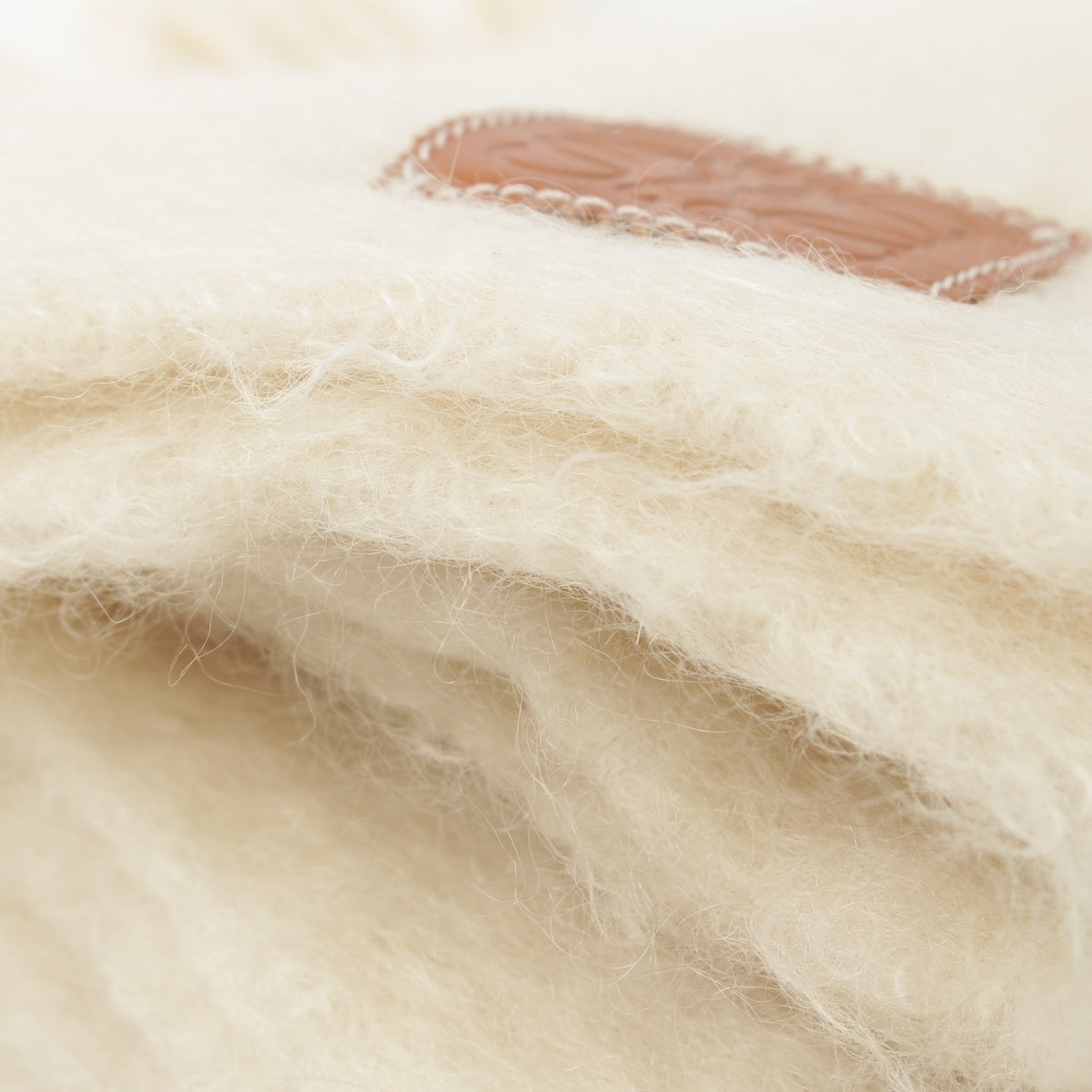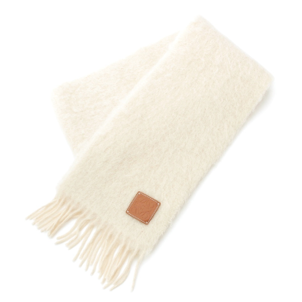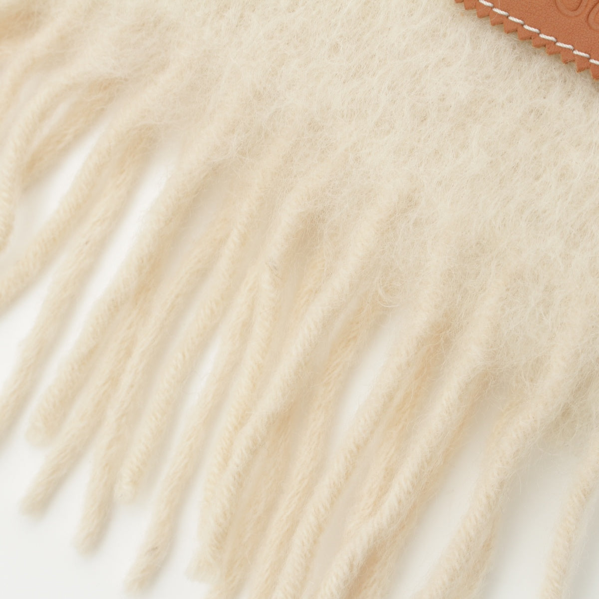 LOEWE Mohair x Wool x Nylon Anagram fringe Scarf Ivory