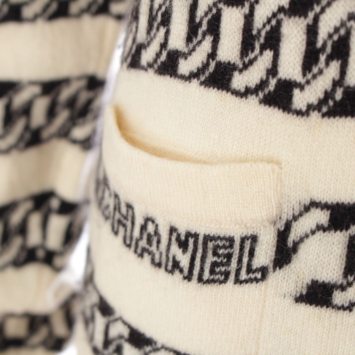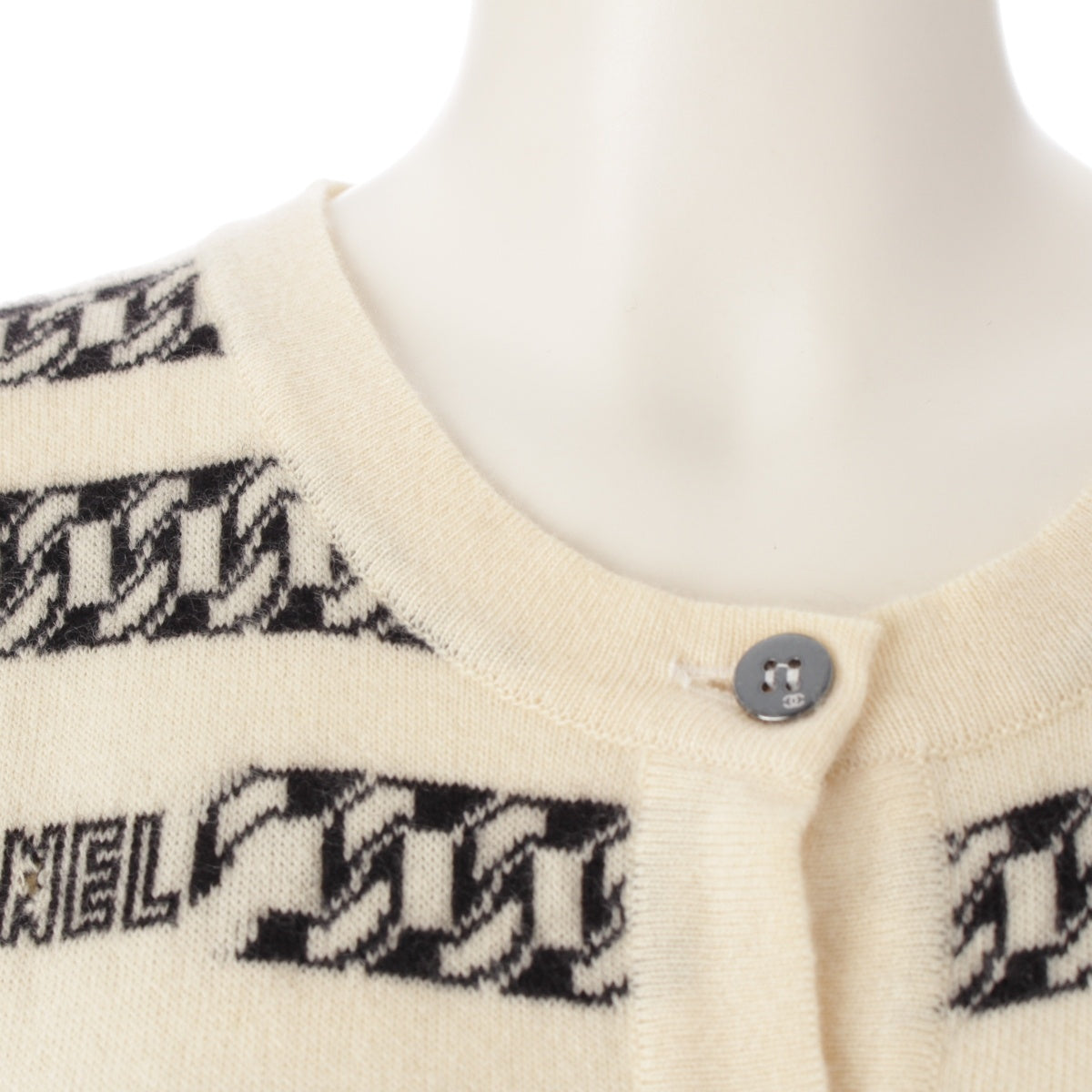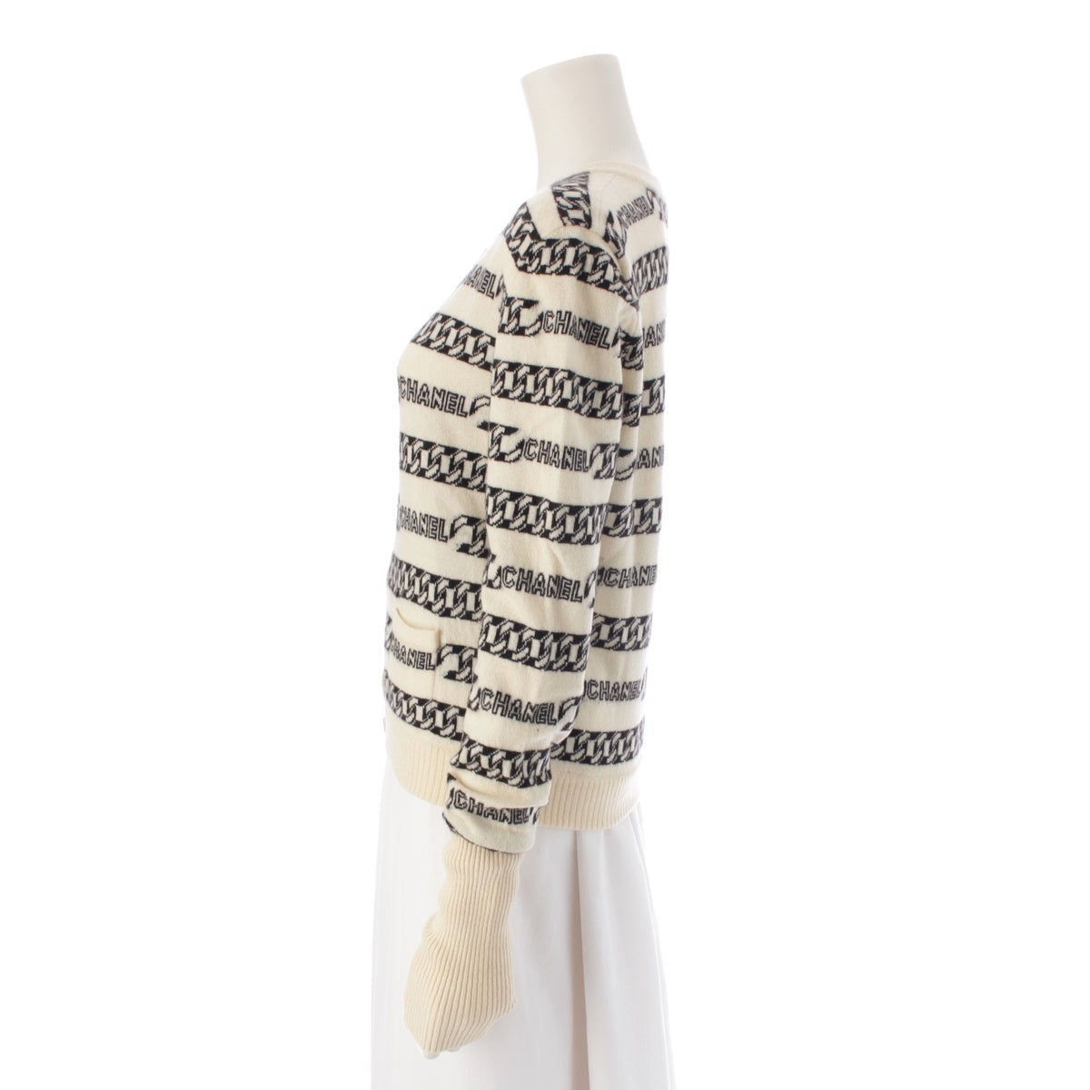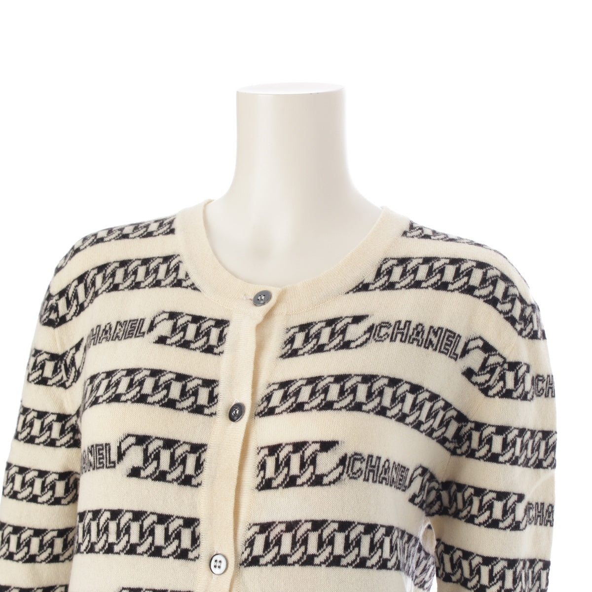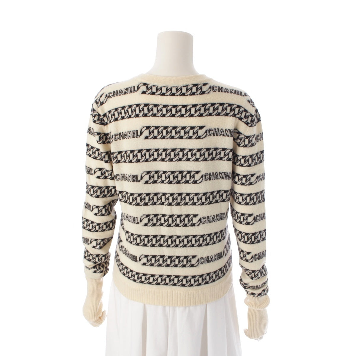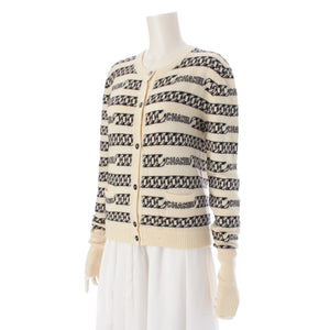 CHANEL cashmere Logo ChainPattern Knit cardigan tops P18436 white 40