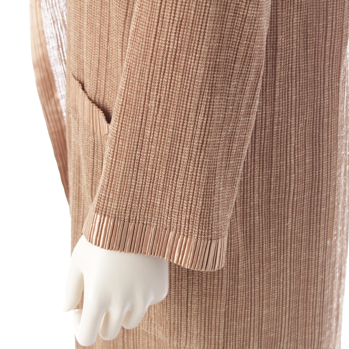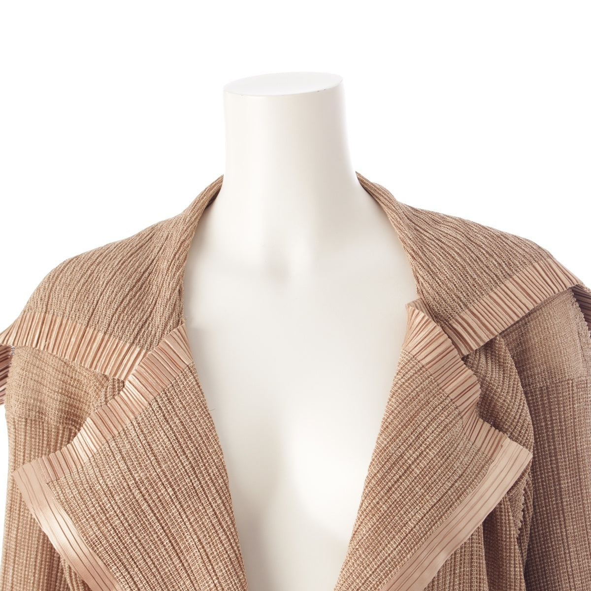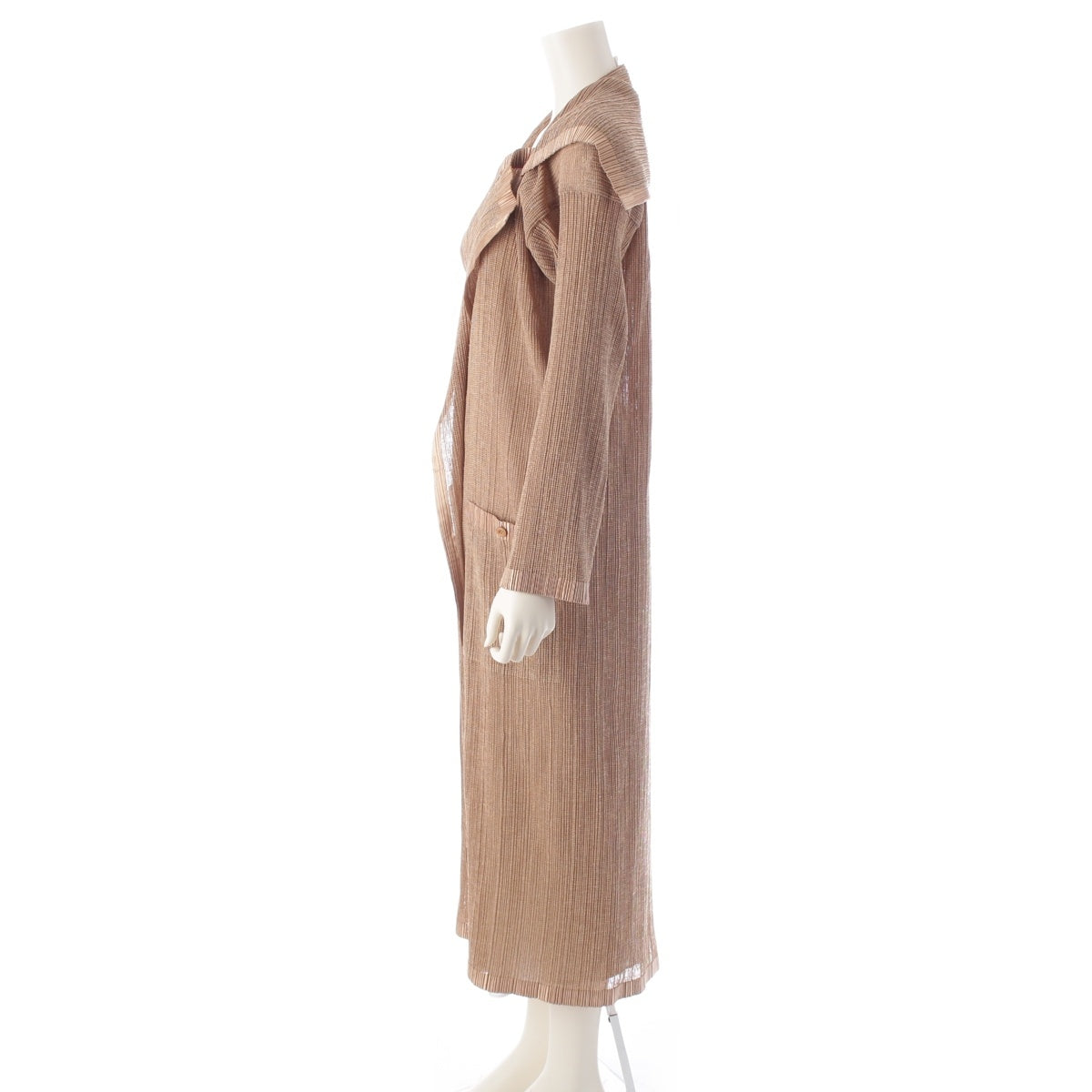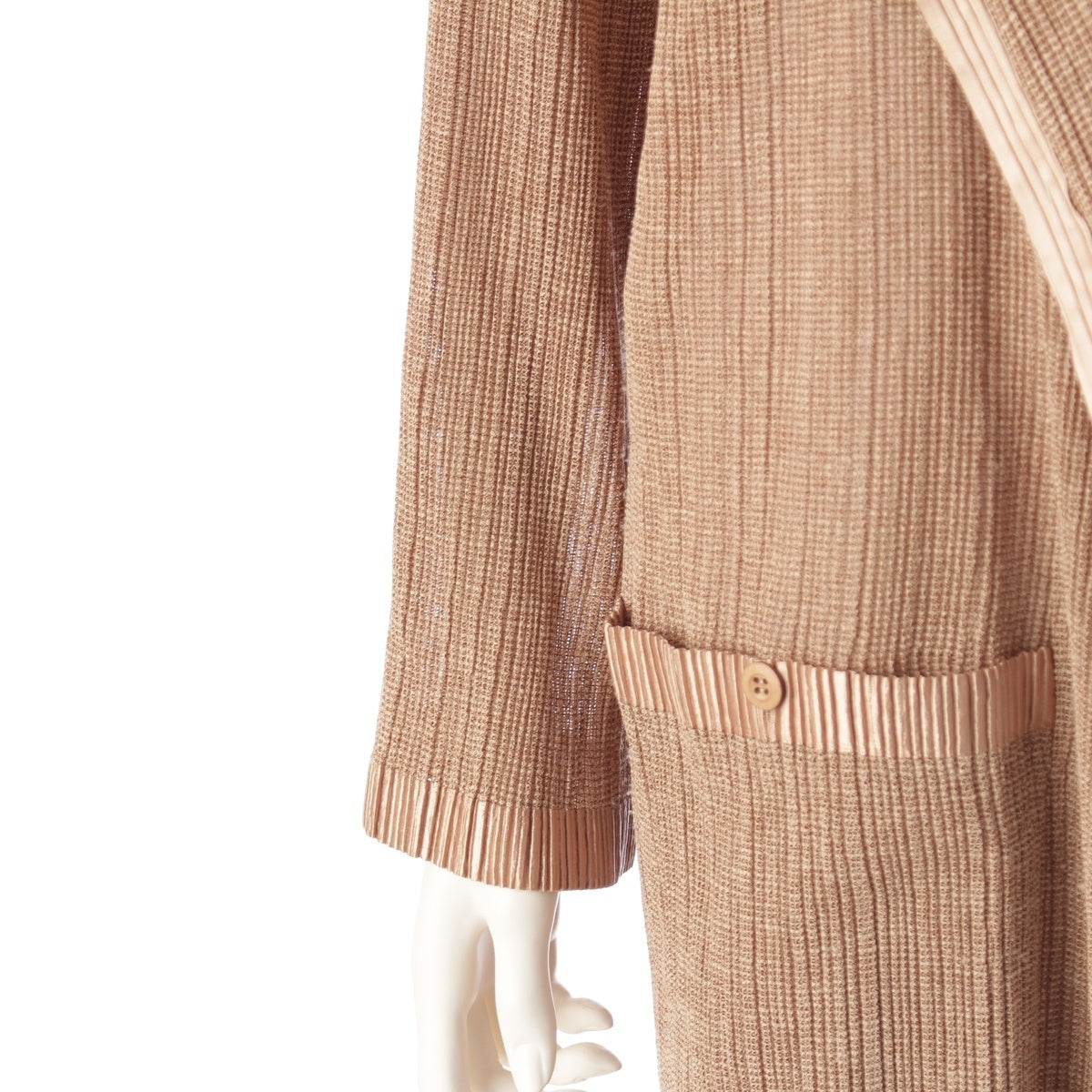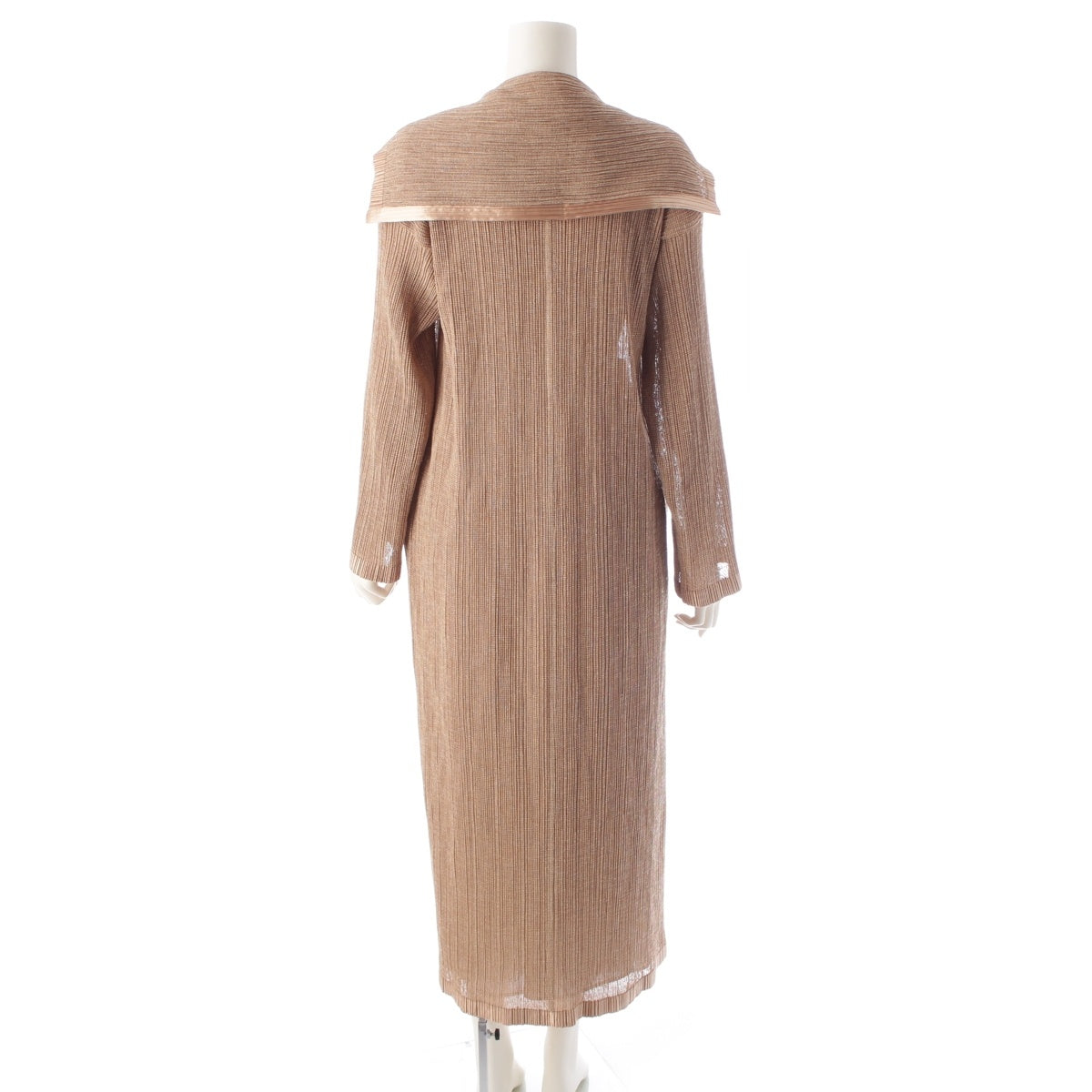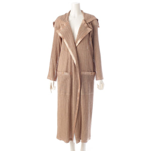ISSEY MIYAKE Pleated design long trim cardigan coat IM61-FA906 Beige Gold M