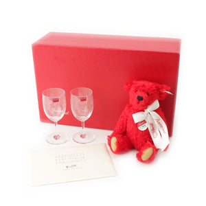Steiff Baccarat White Tag Millennium Commemorative Glass Set of 2 Teddy Bears Toys 675362 Red