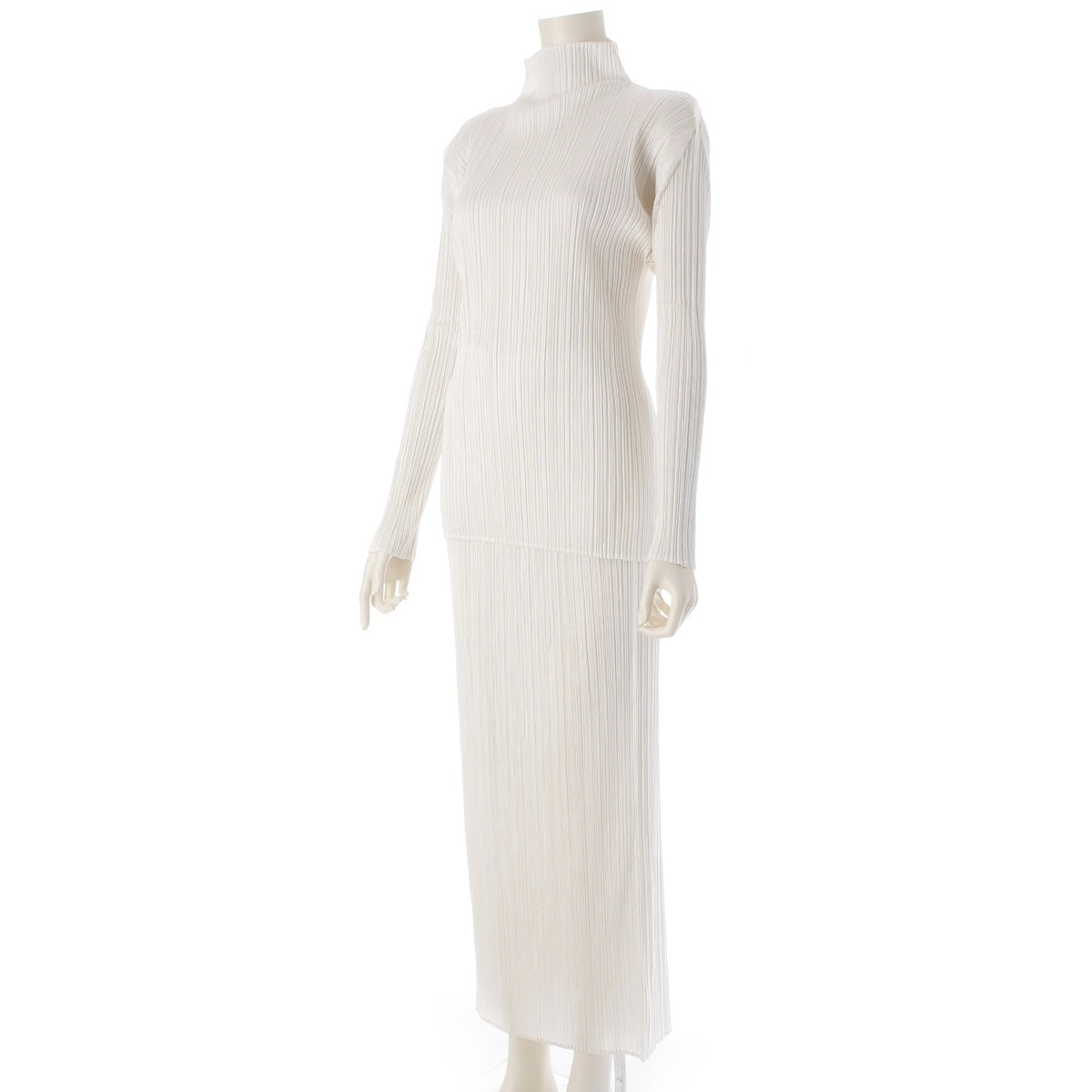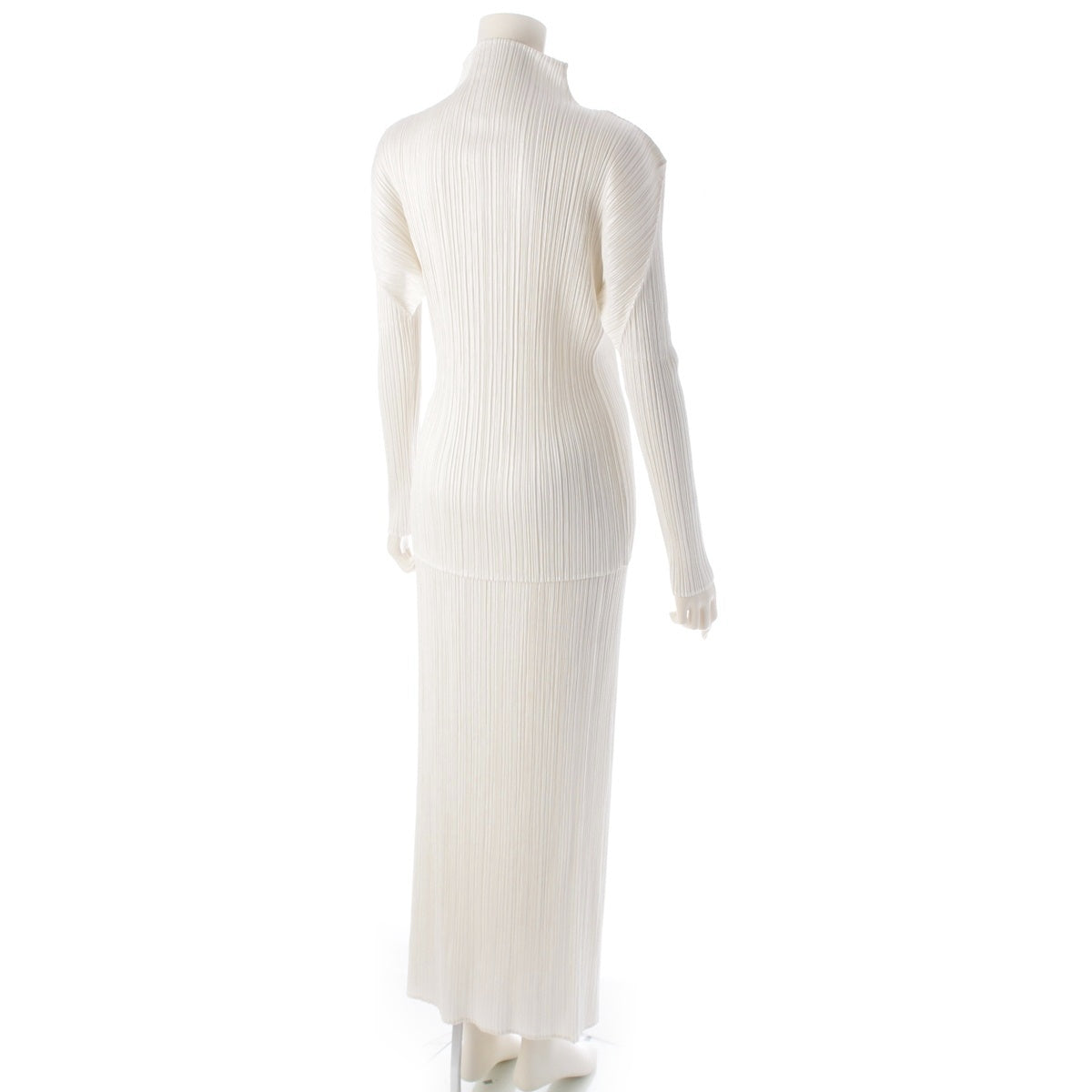 PLEATS PLEASE ISSEY Long cardigan, bottle neck cut and sew, skirt 3 piece setup white 3