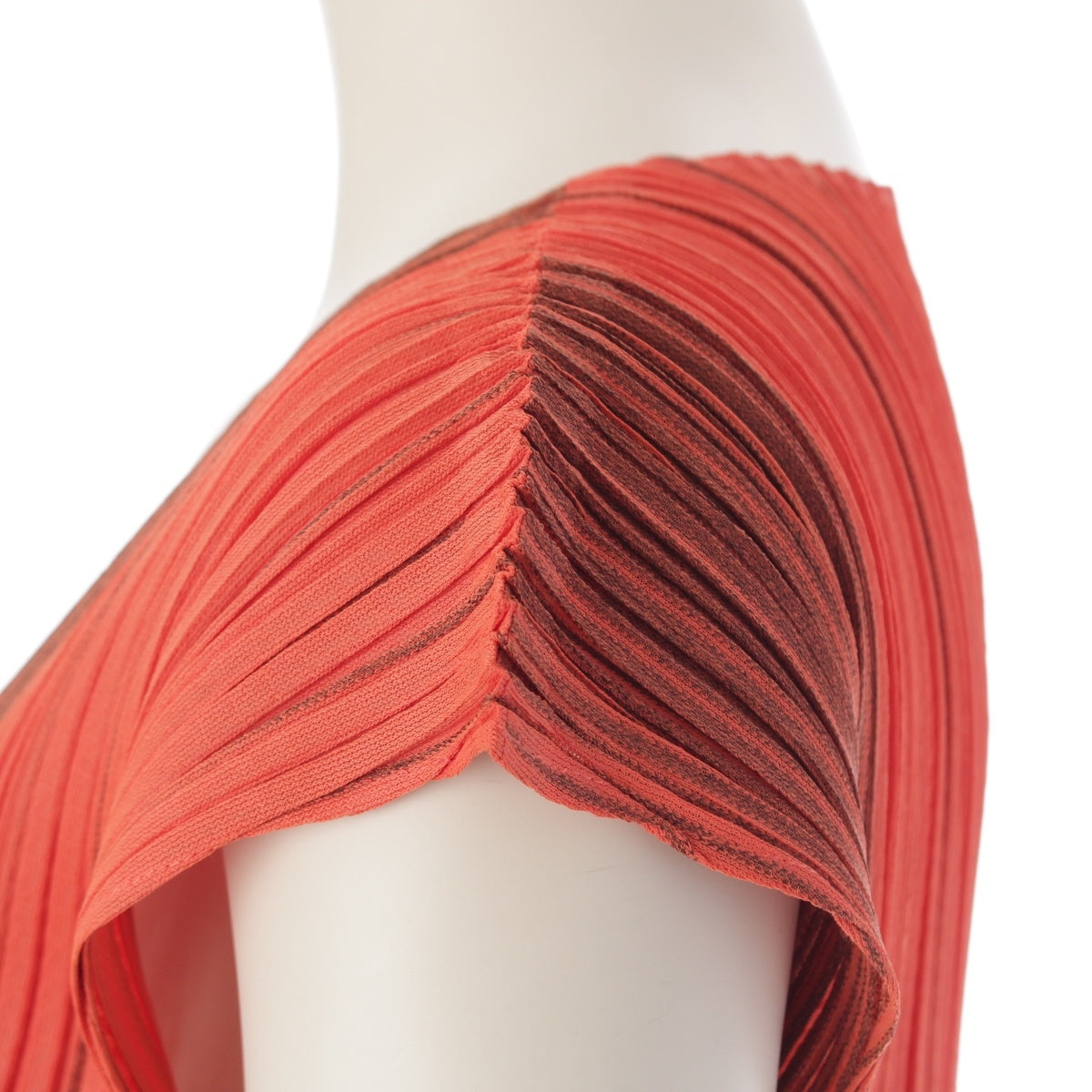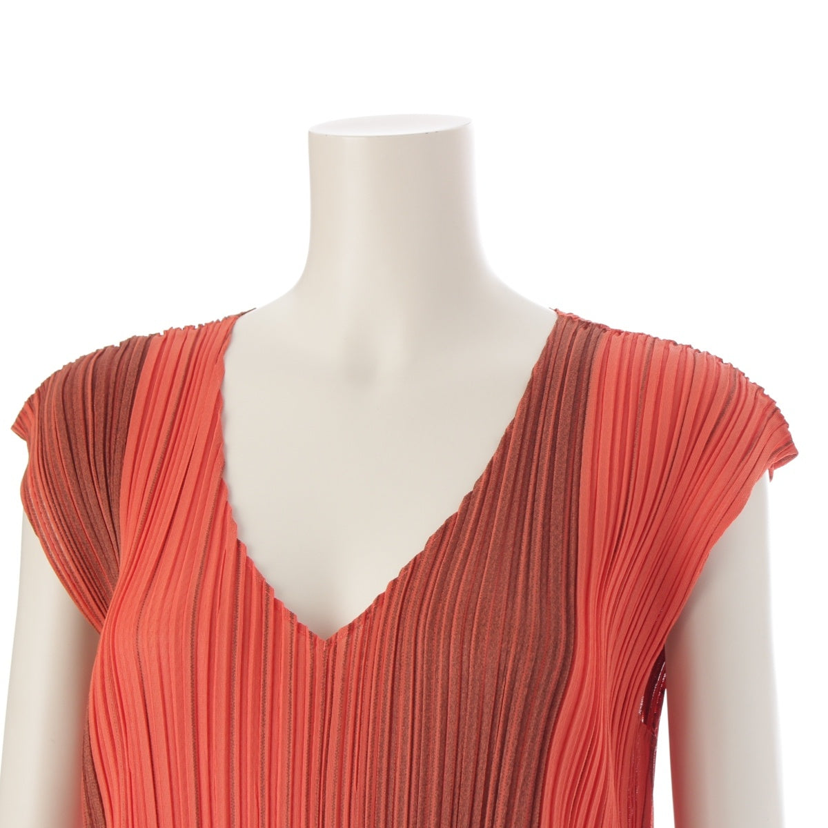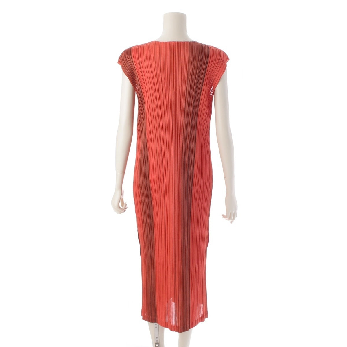 PLEATS PLEASE Pleated stripe sleeveless one piece dress PP83-JH676 Orange 5
