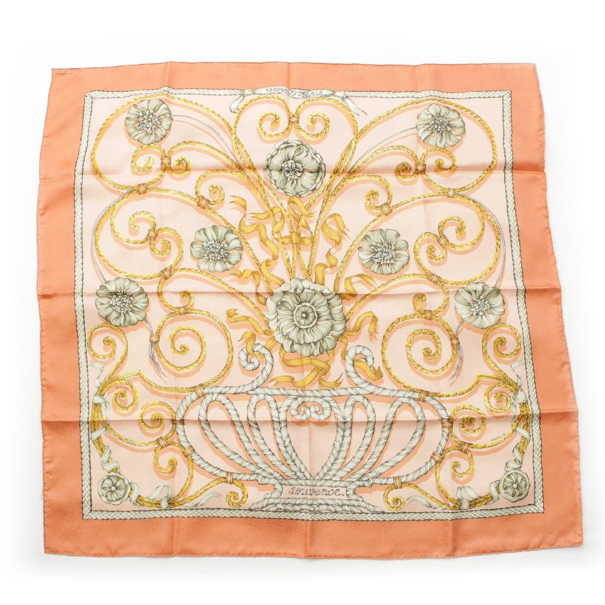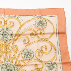 HERMES silk Carre90 JOUVENCE Youth scarf pink beige