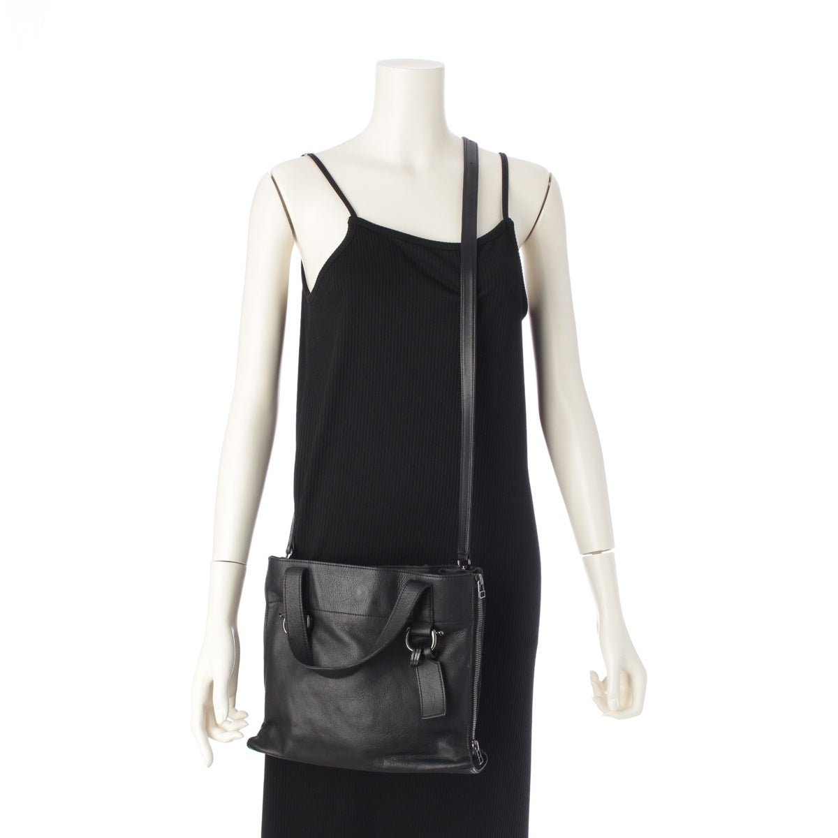 Yohji Yamamoto discord leather Zipper shoulder Zipper 2WAY Shoulder Handbag black