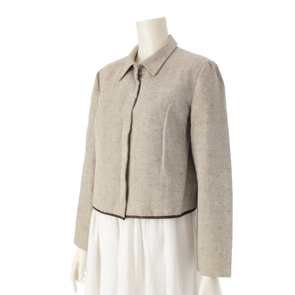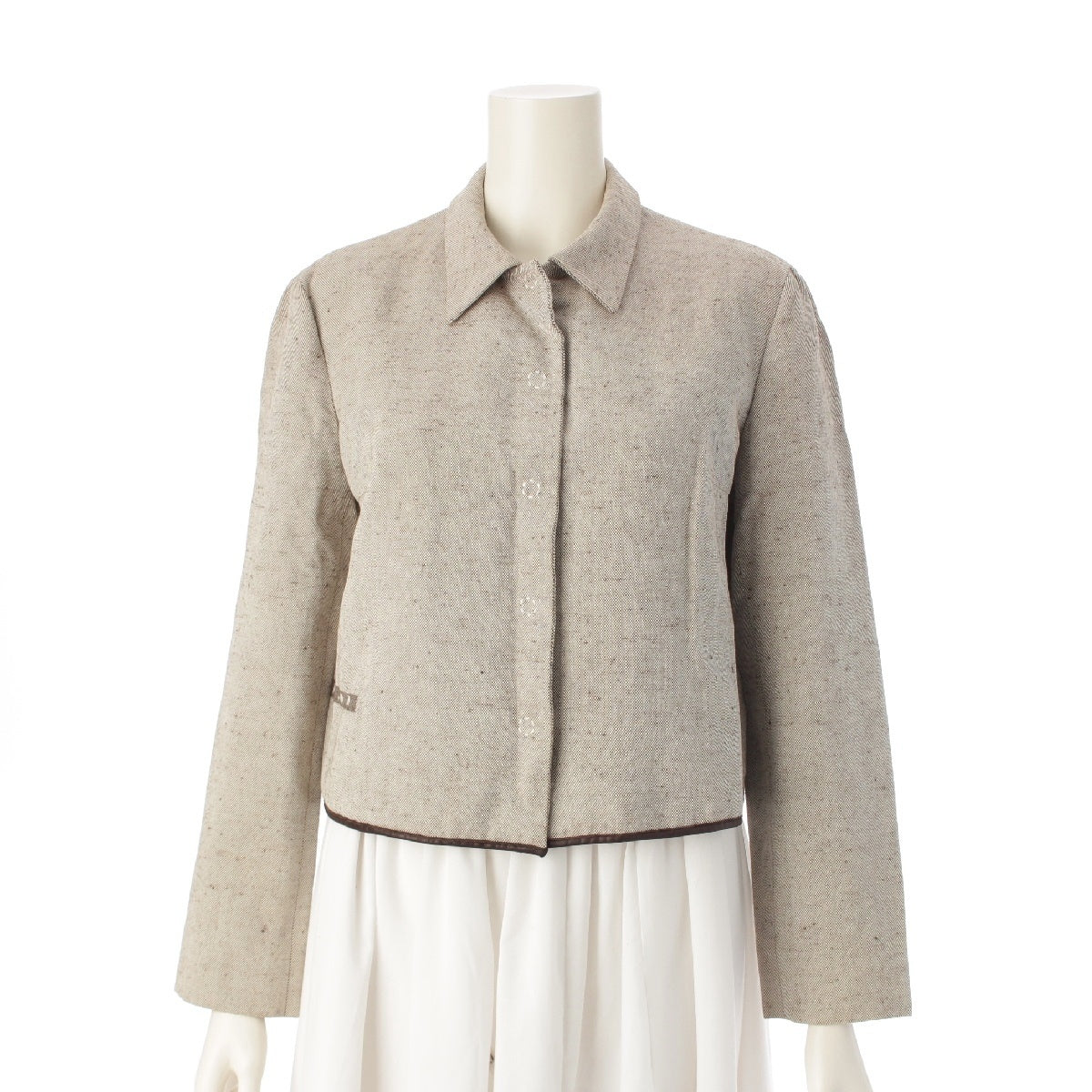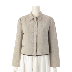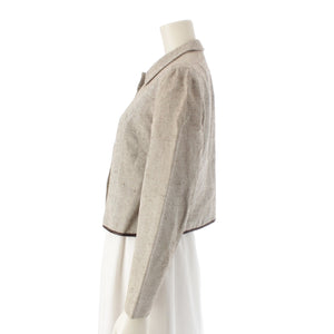 PRADA 99Stainless Steel cotton Canvas Logo Cropped tailored jacket beige 42