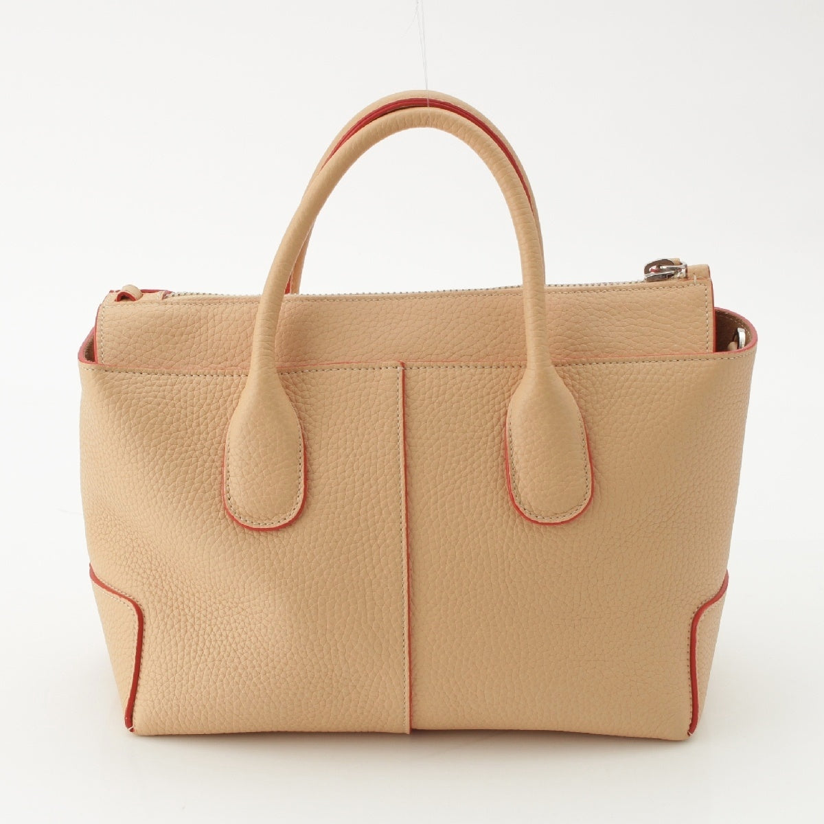 TOD’S DI leather 2way Shoulder Handbag Beige red